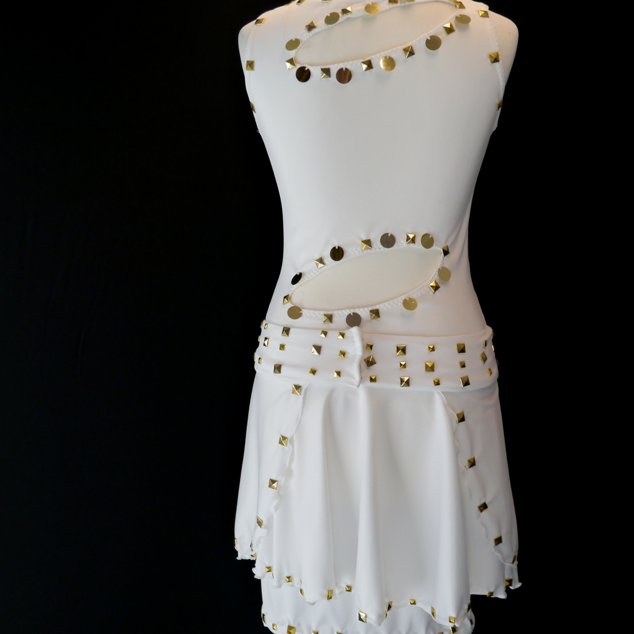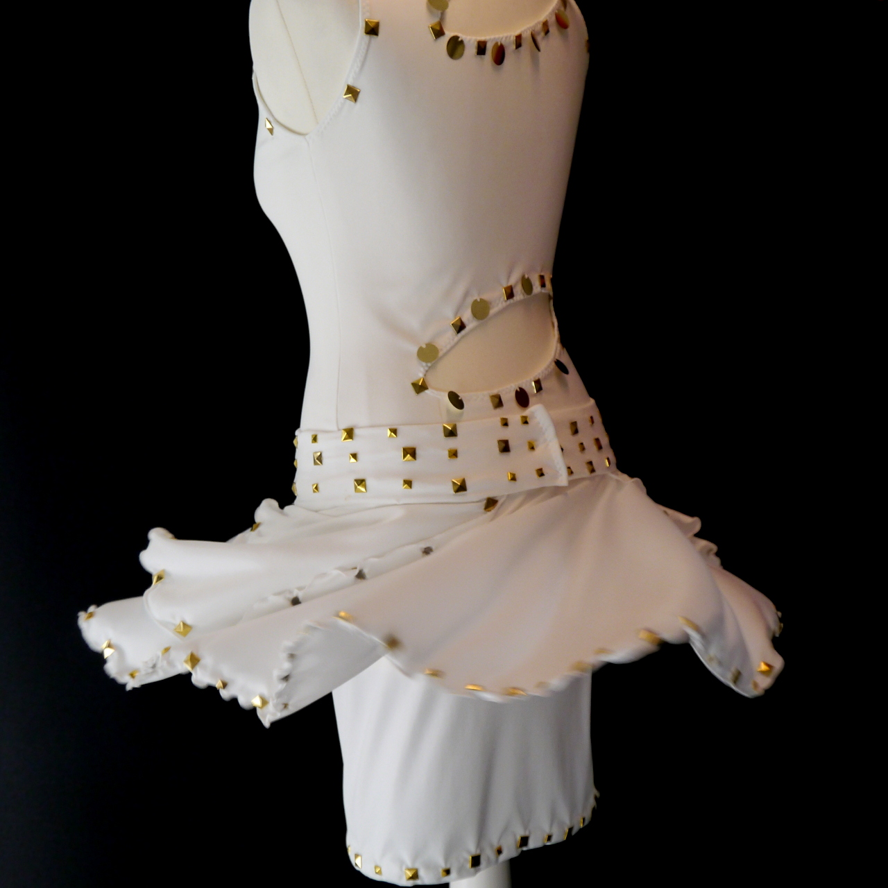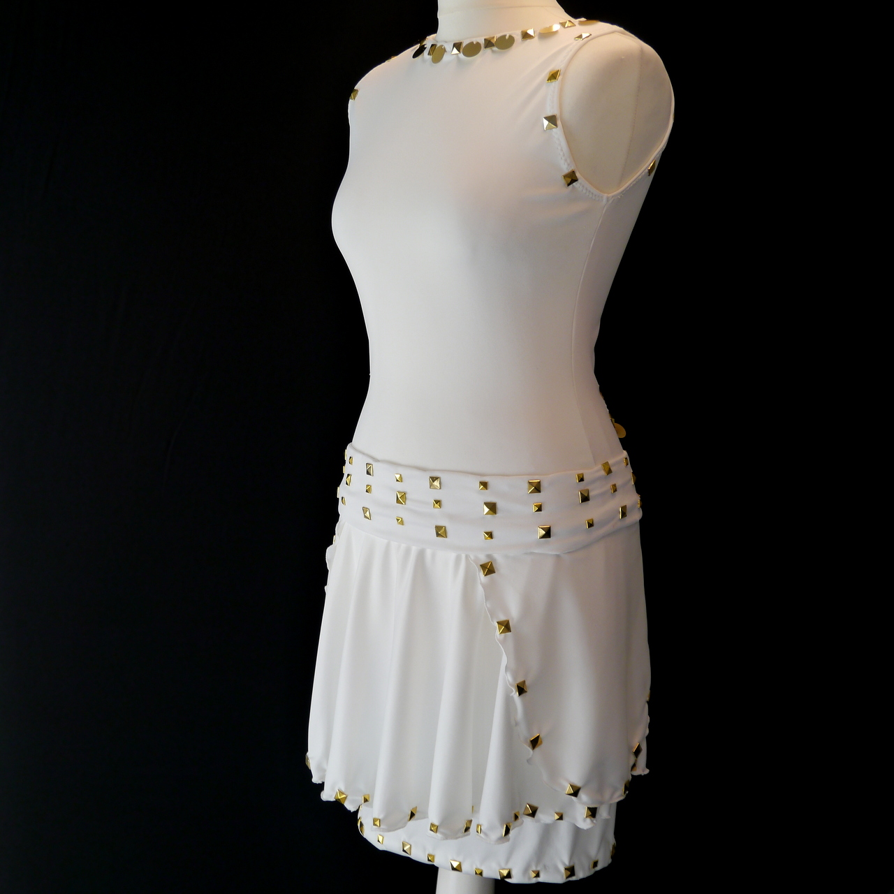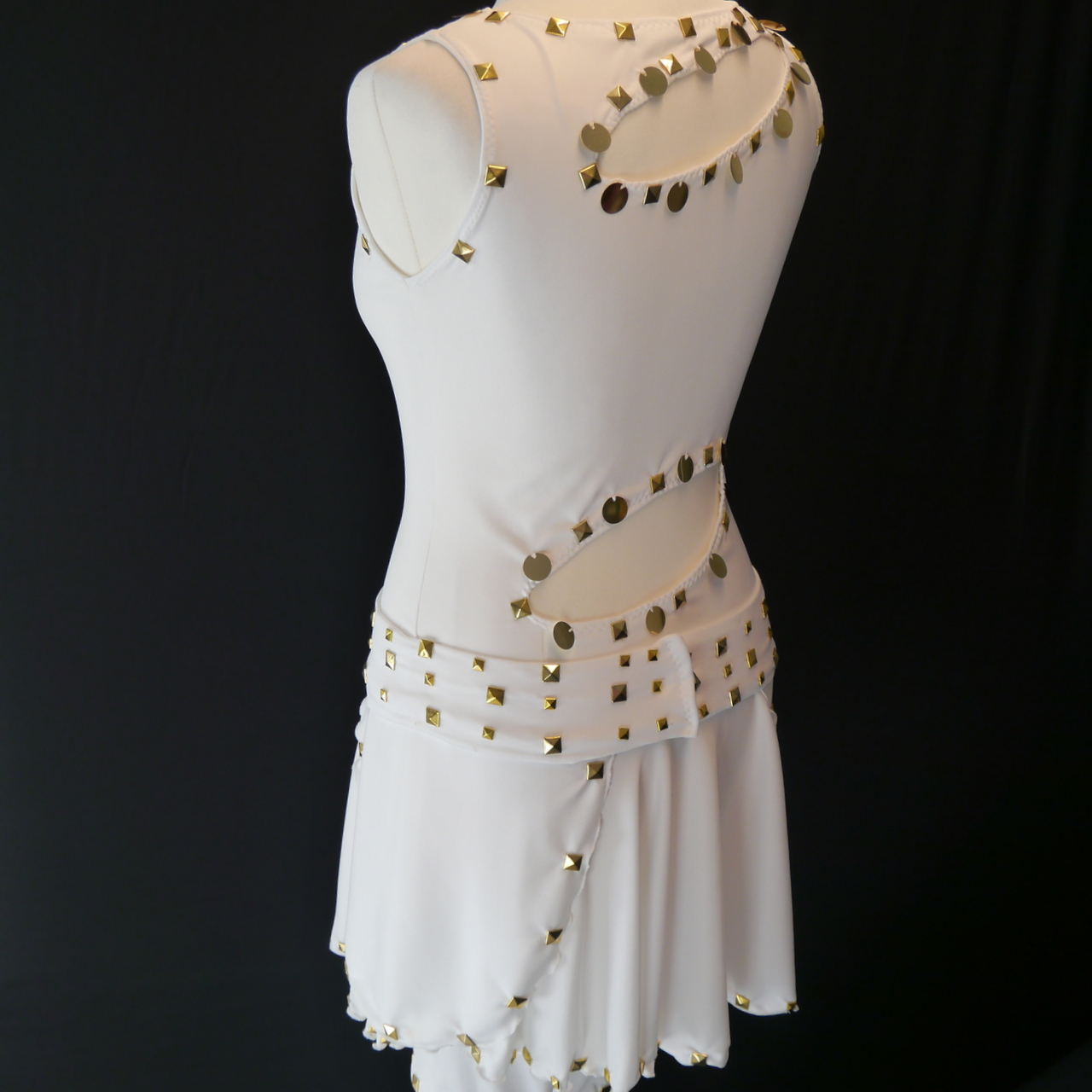 Kleid aus Microfaser-Lycra Stoff mit goldenen Pailletten und Nieten
