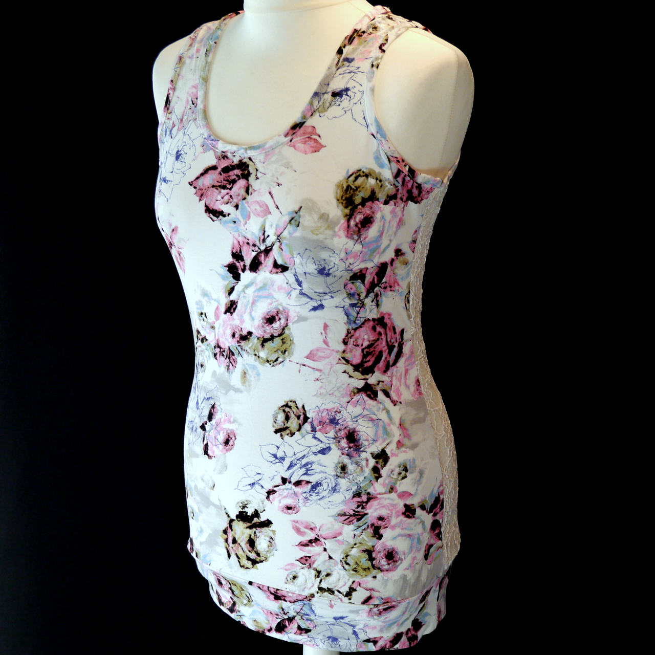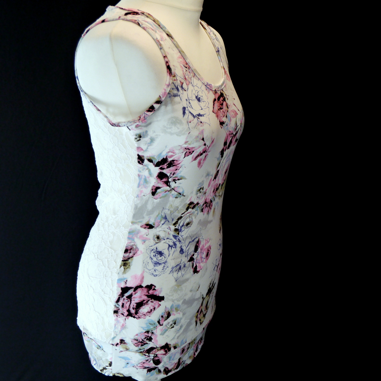 Top aus Viskose-Elastan Stoff kombiniert mit weisse Spitze