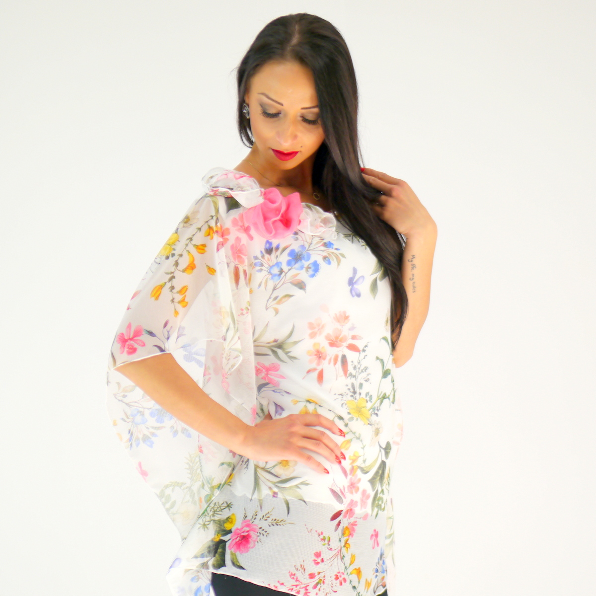 Produktinformationen "Geblümtes Oberteil aus Chiffon mit Top aus Baumwolle /Tunika/"