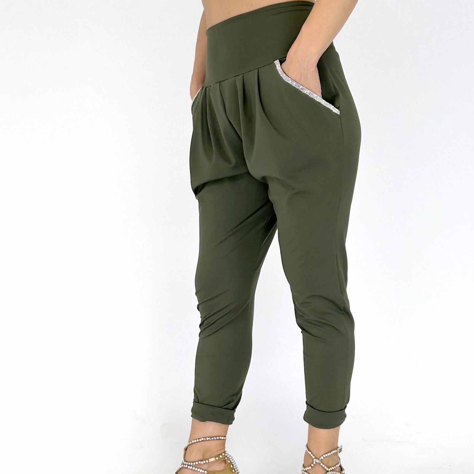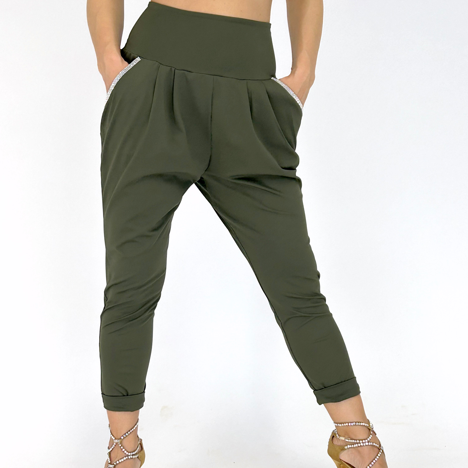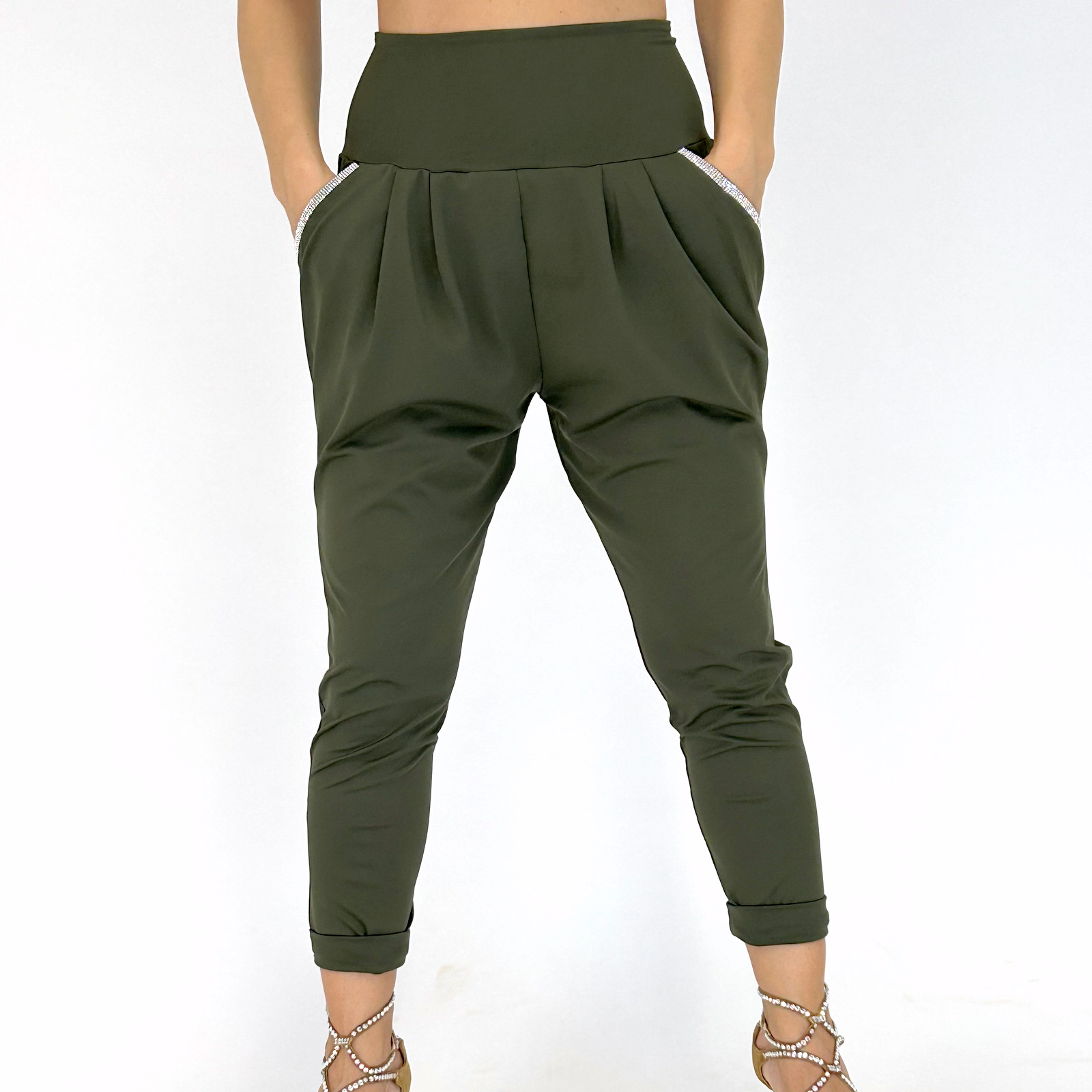 Hose aus Microfaser Stoff / 7/8 Hose in der Farbe Olive