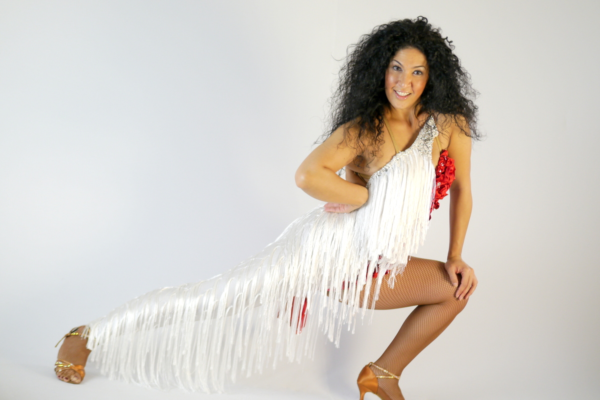Tanzkleid aus Lycra, Samt,Fransen und Swarovski Strass. Ist komplett Handgemacht!!! BH Größe 70-75-80 B