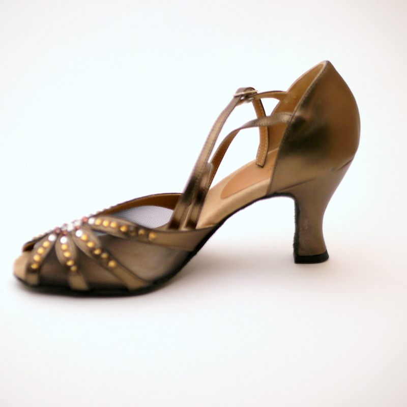 Produktinformationen "Kupfer-Farbene Latein Tanzschuhe, handverziert mit Strass"