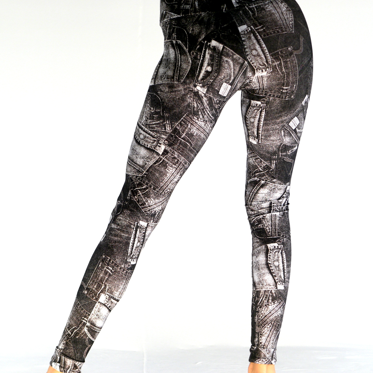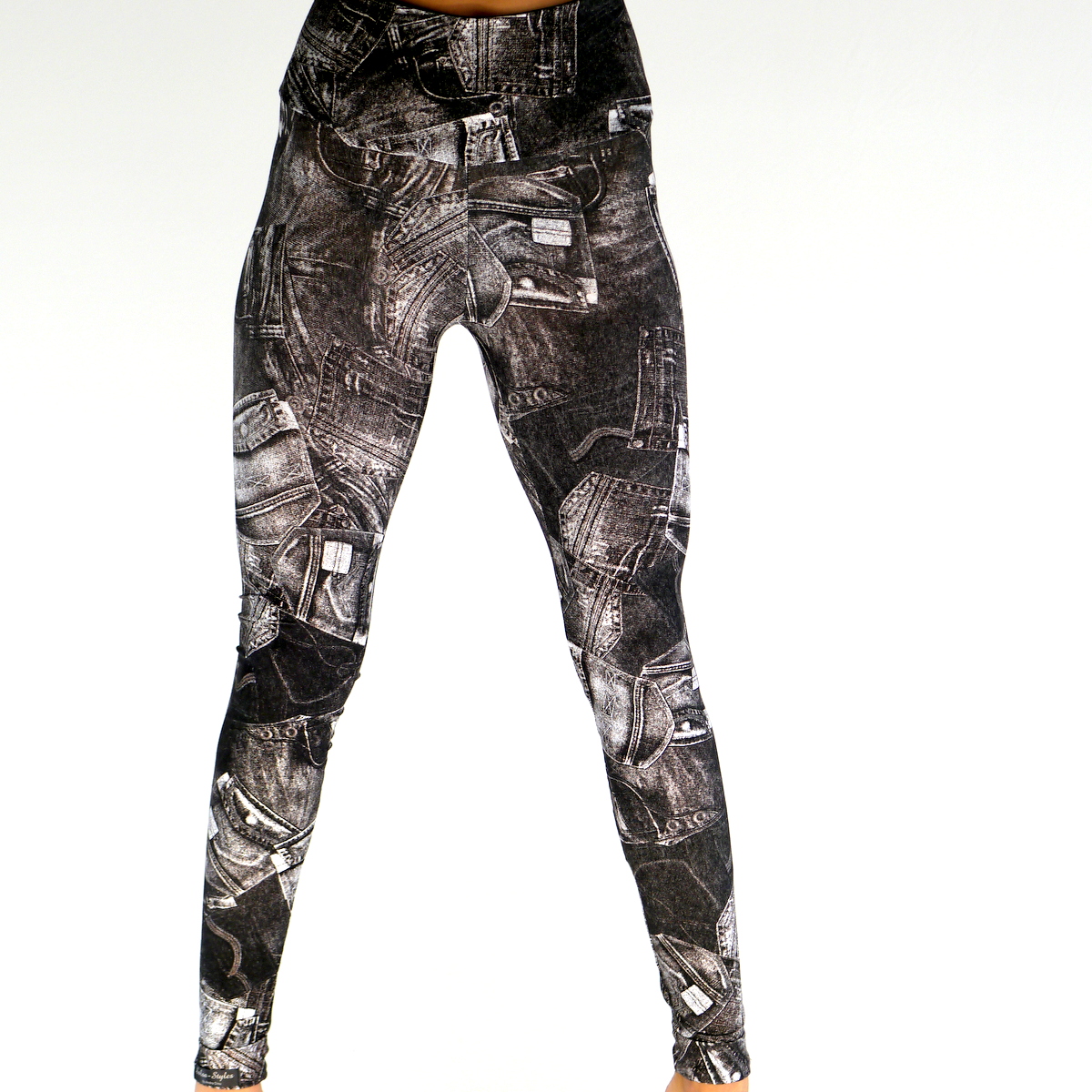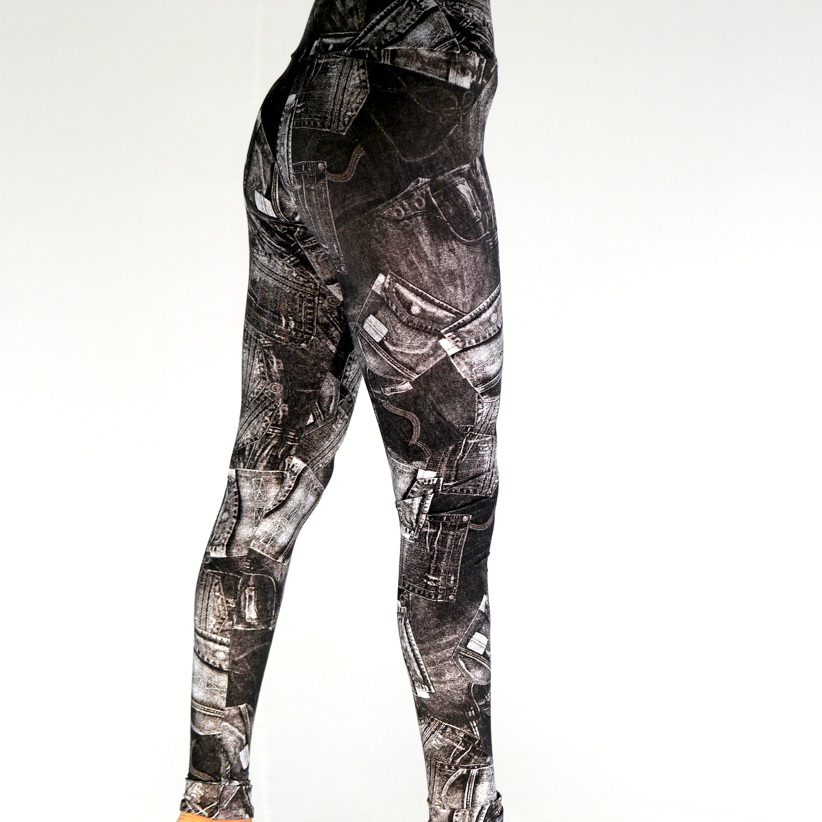 Leggings aus Baumwoll-Elastan Stoff in Jeans Look. Die Leggings ist hochelastisch und blickdicht.