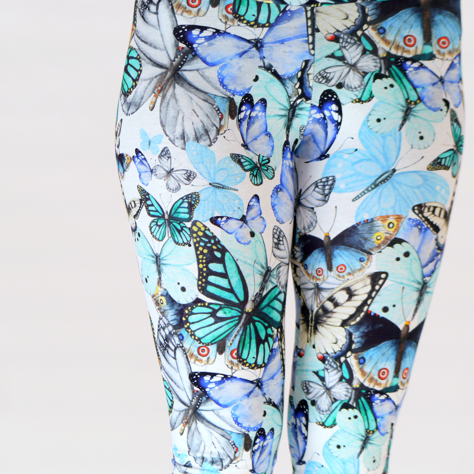 Leggings aus Baumwolljersey in hellblau mit Schmetterling-Motiv