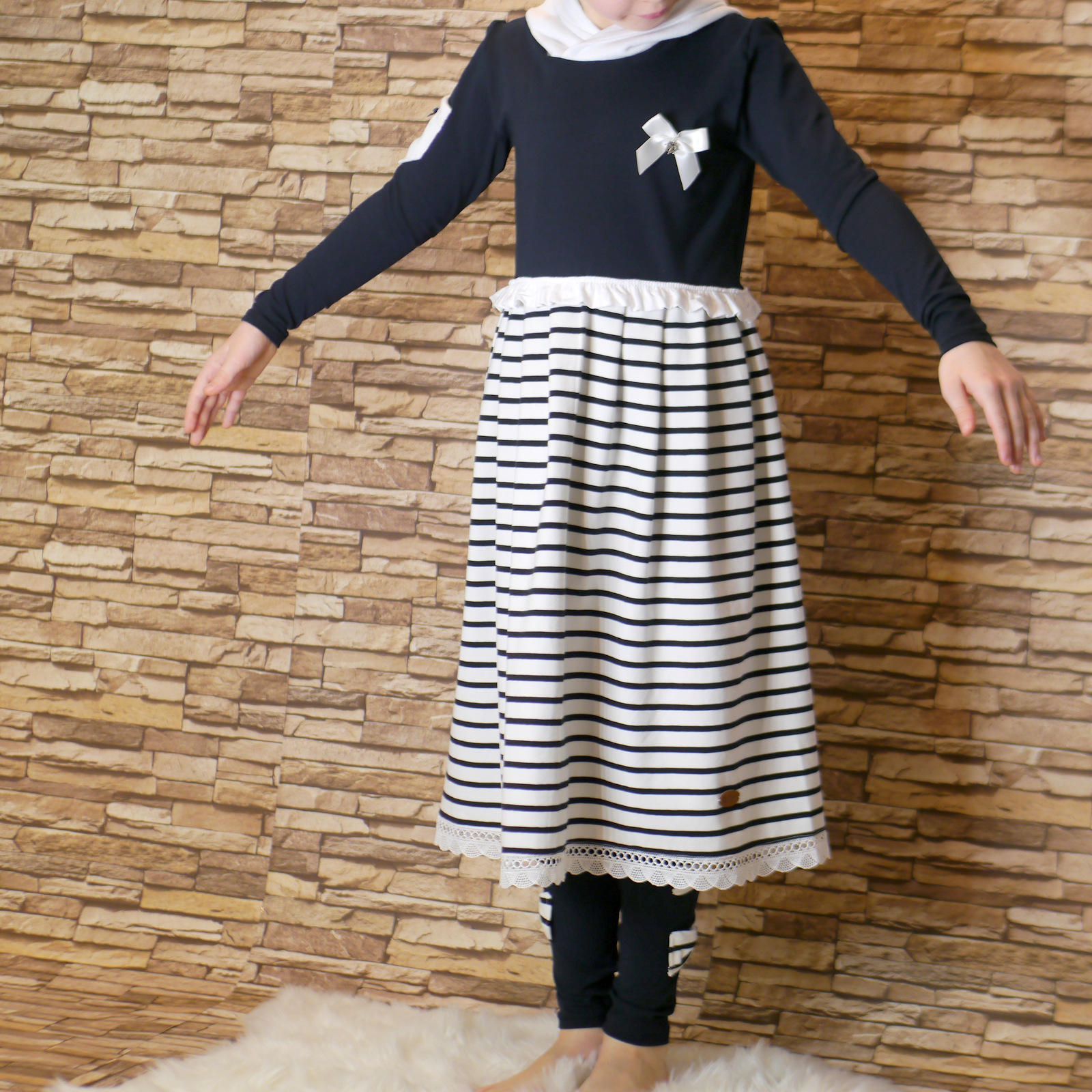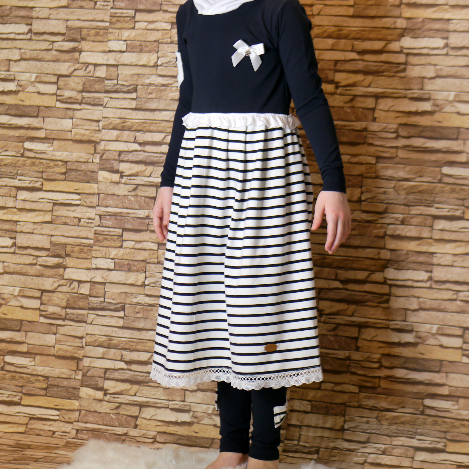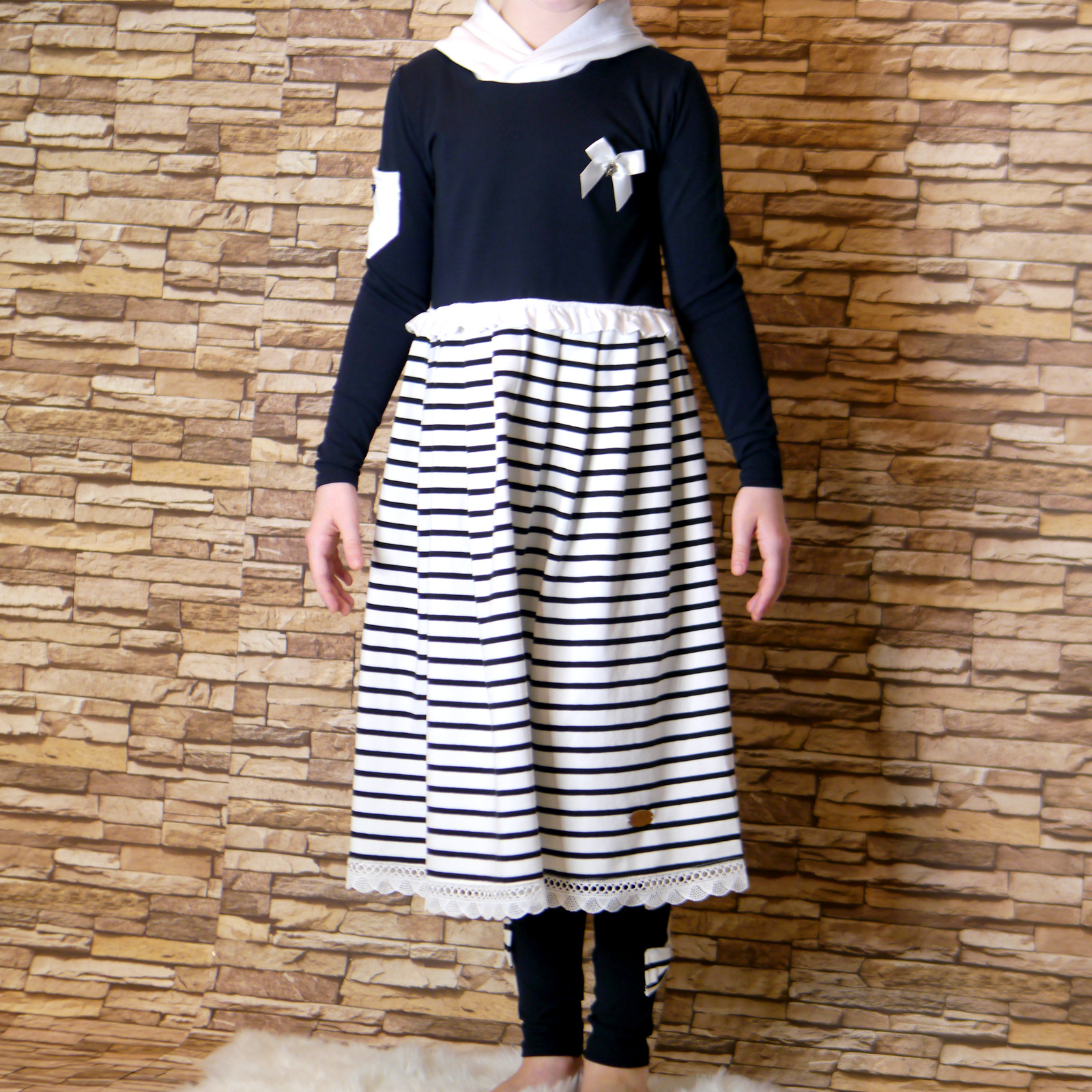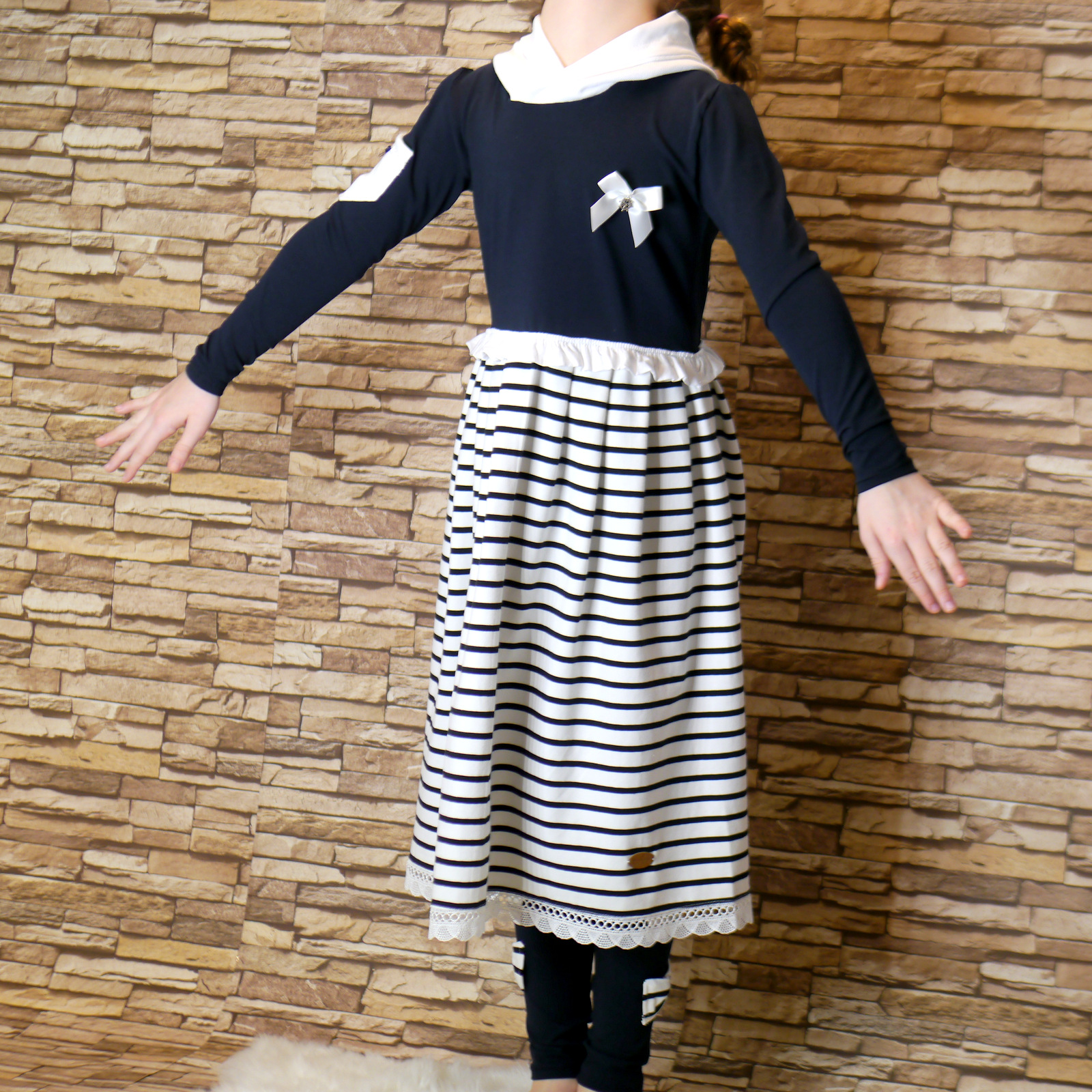 Süßes Kleid für Mädchen Handgemacht aus Baumwolljersey und Feinstrickstoff. Auf Anfrage gibt es das Kleid auch in anderen Größen und andere Farben.