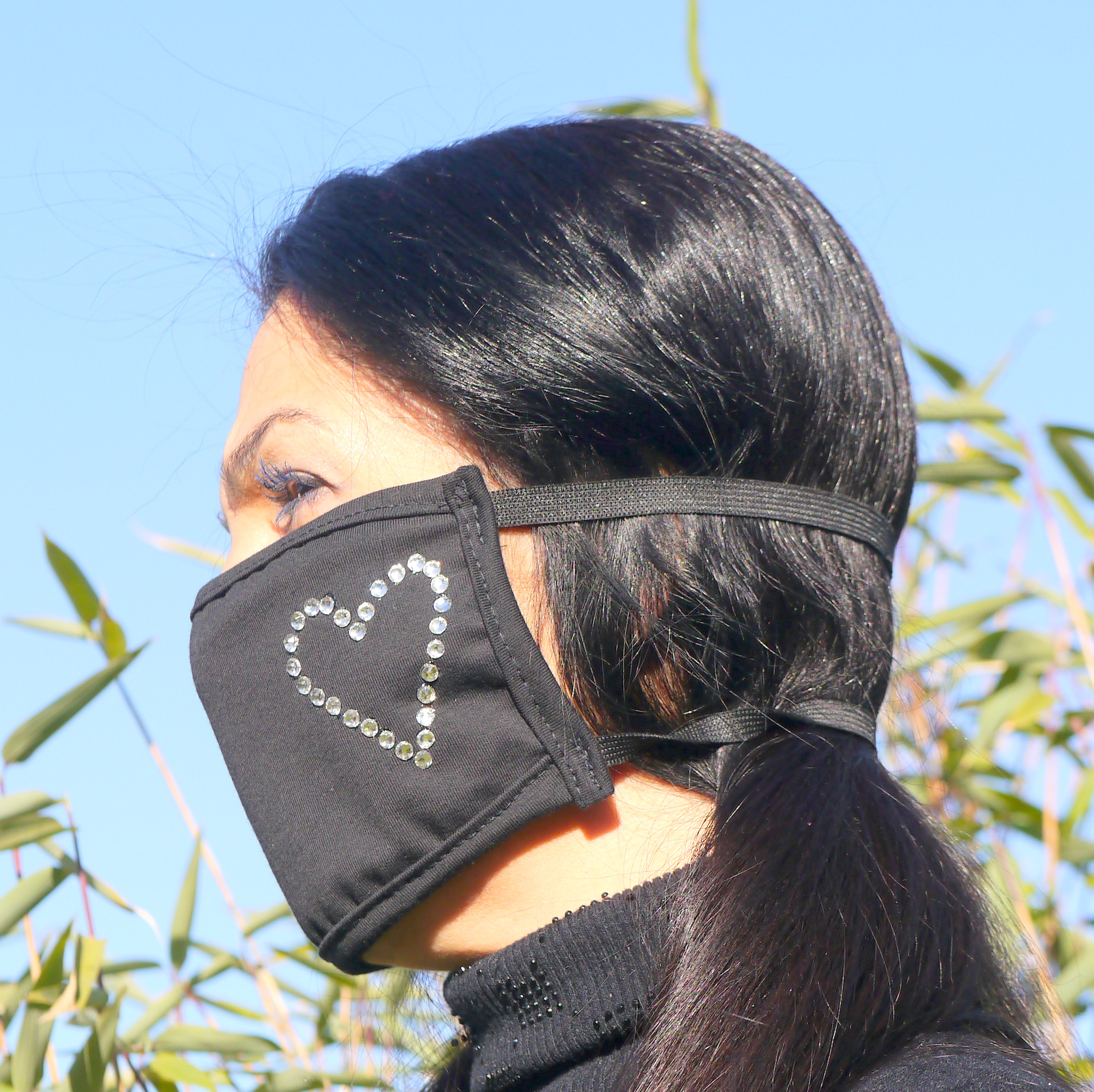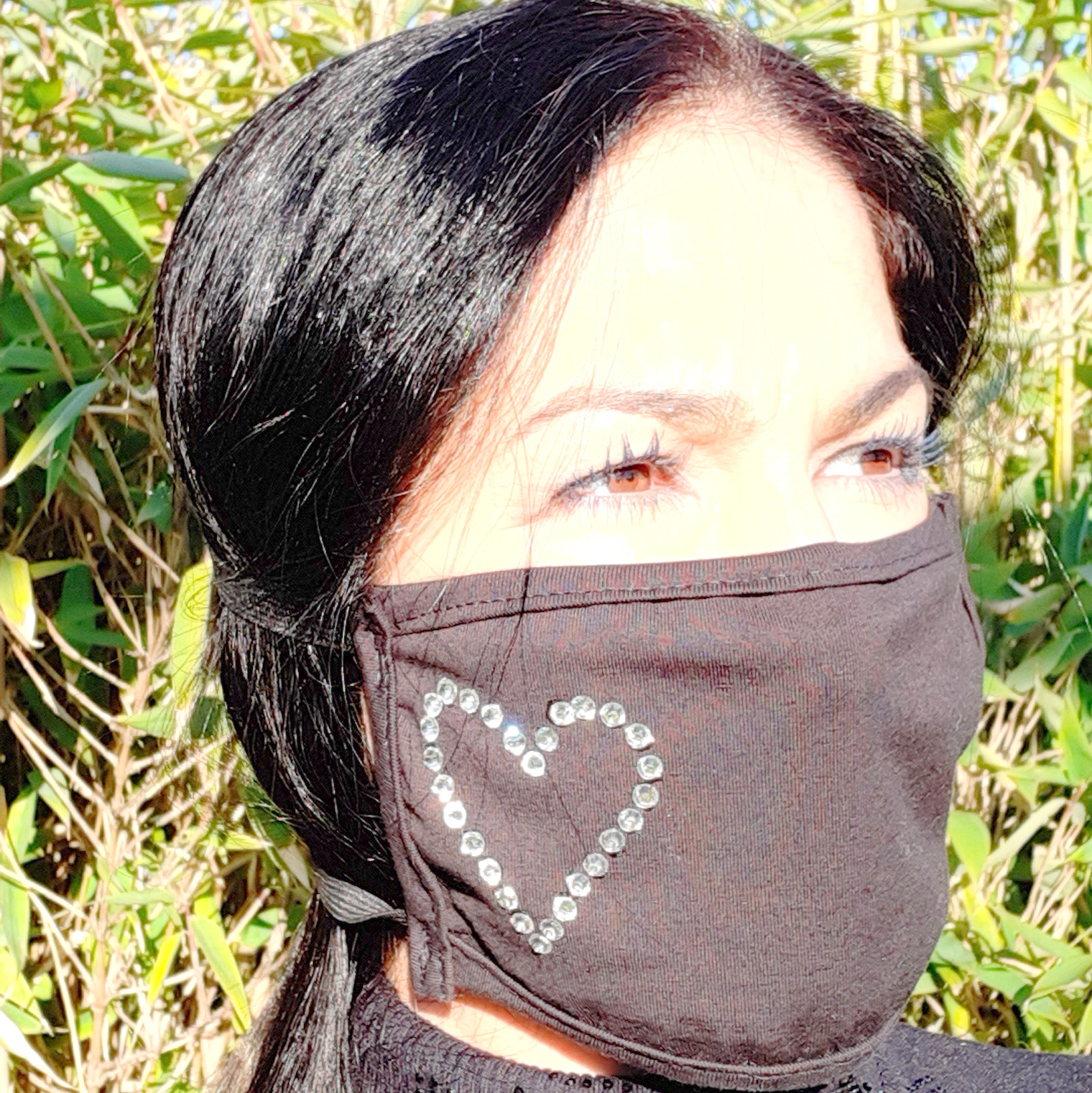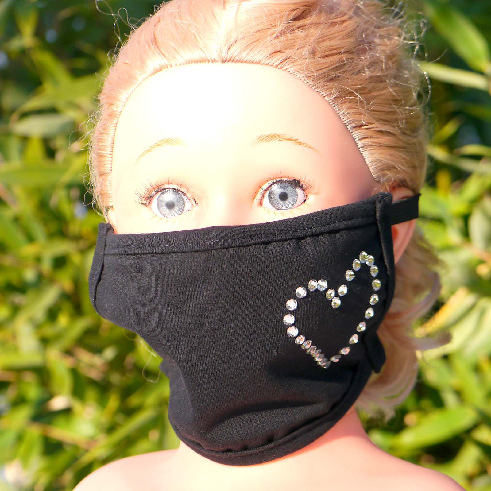 Mund und Nasen Maske dreilagig aus 95% Baumwolle+5%Elasthan mit Strass Steine
