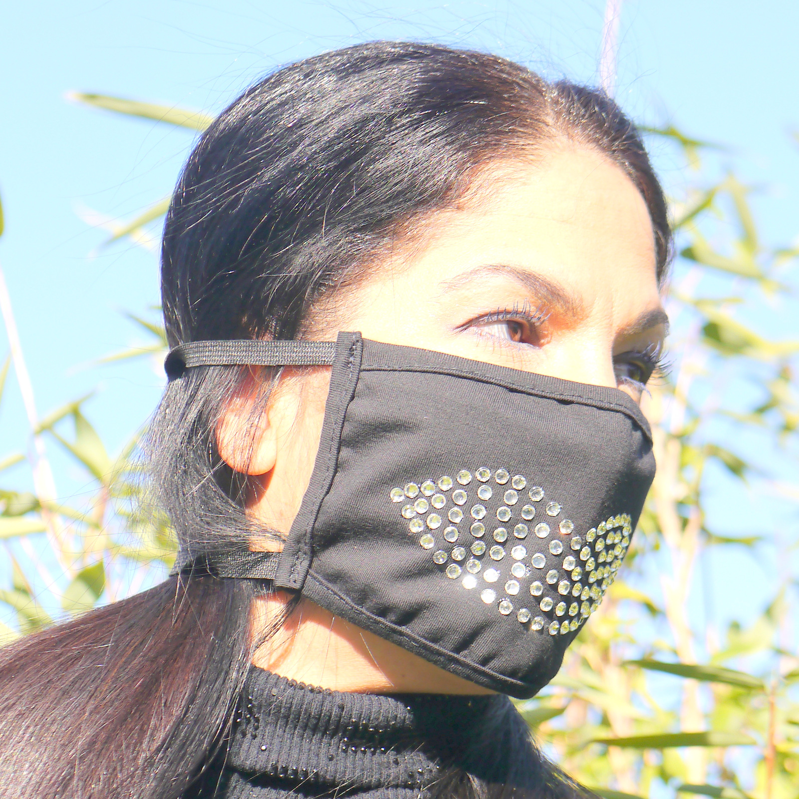 Mund und Nasen Maske dreilagig aus 95% Baumwolle+5%Elasthan mit Strass Steine