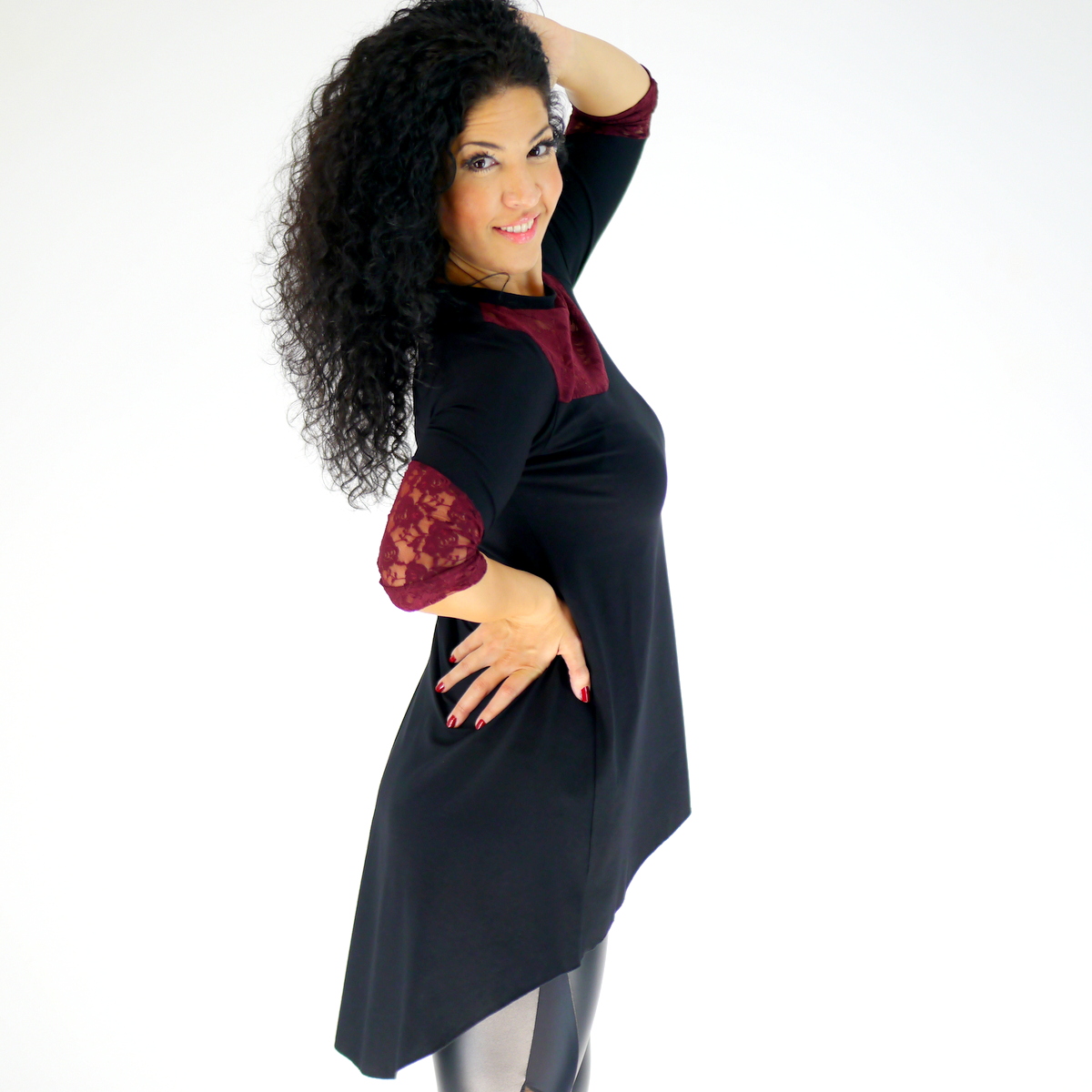 Schönes Kleid-Oberteil aus 95%Baumwolle+5%Elasthan mit blumige Spitze.