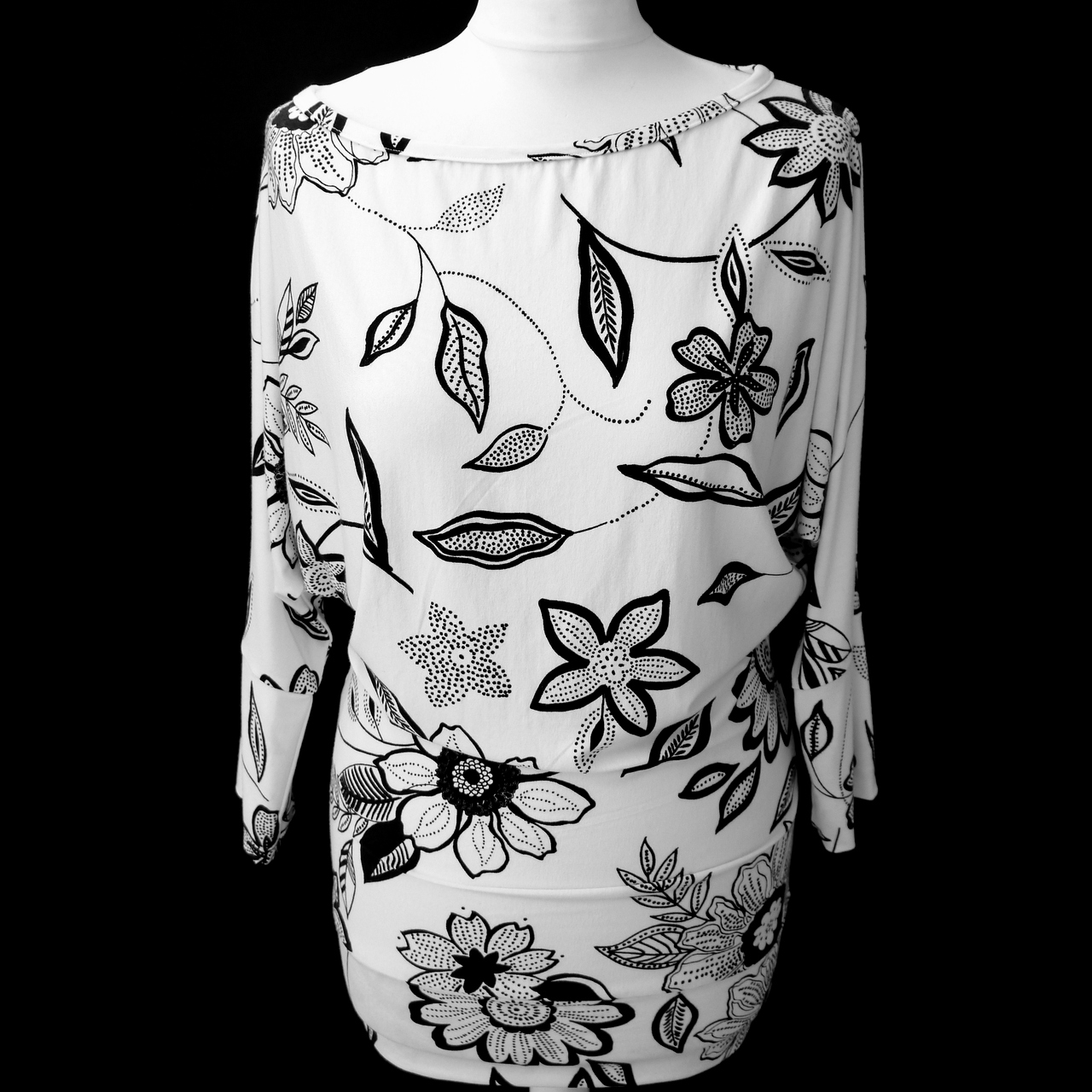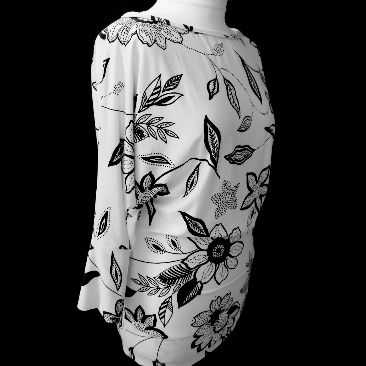 Top aus Baumwoll - Elasthanstoff in weiss-schwarz
