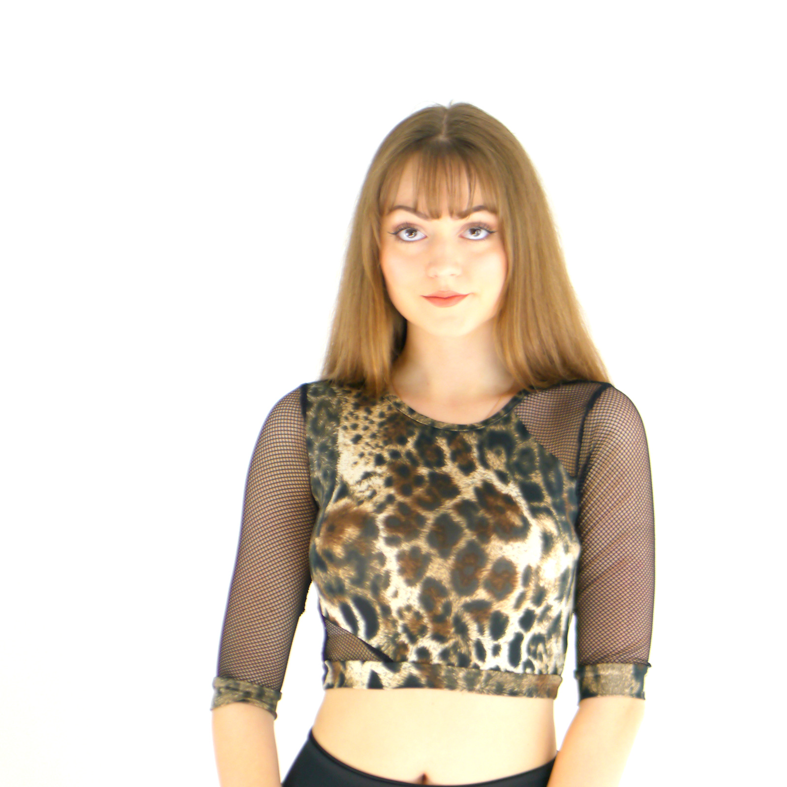 Das Oberteil Marli ist ein bauchfrei geschnittenes Oberteil aus einem Leopardenprintstoff. An den halblangen Armen und dem Cutout ist es kombiniert mit einem elastischem Netzstoff. Durch seinen dünnen, elastischen Stoff ist es perfekt für einen warmen Tag oder Salsa Abend.