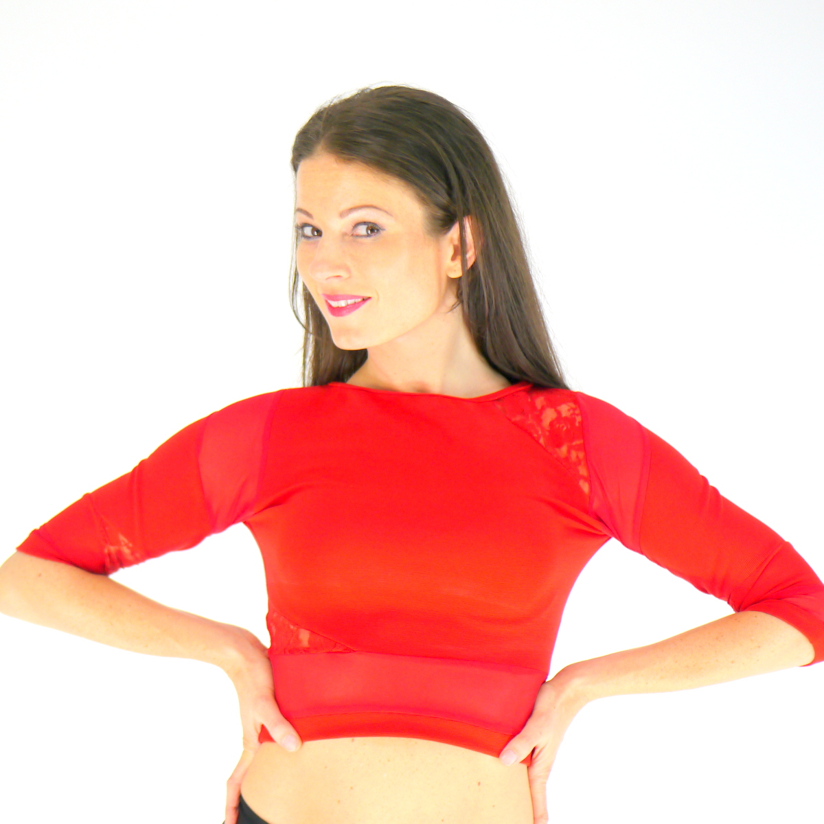 Kurzes Top aus Baumwolle kombiniert mit Spitze und Netz.