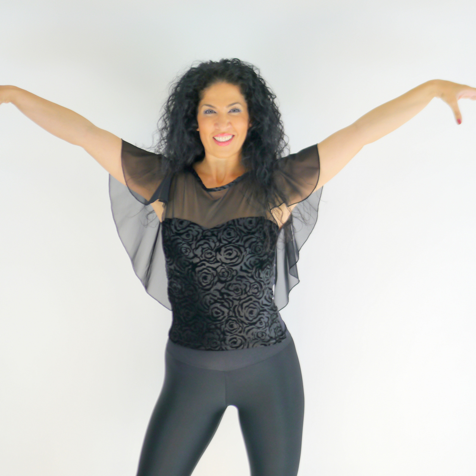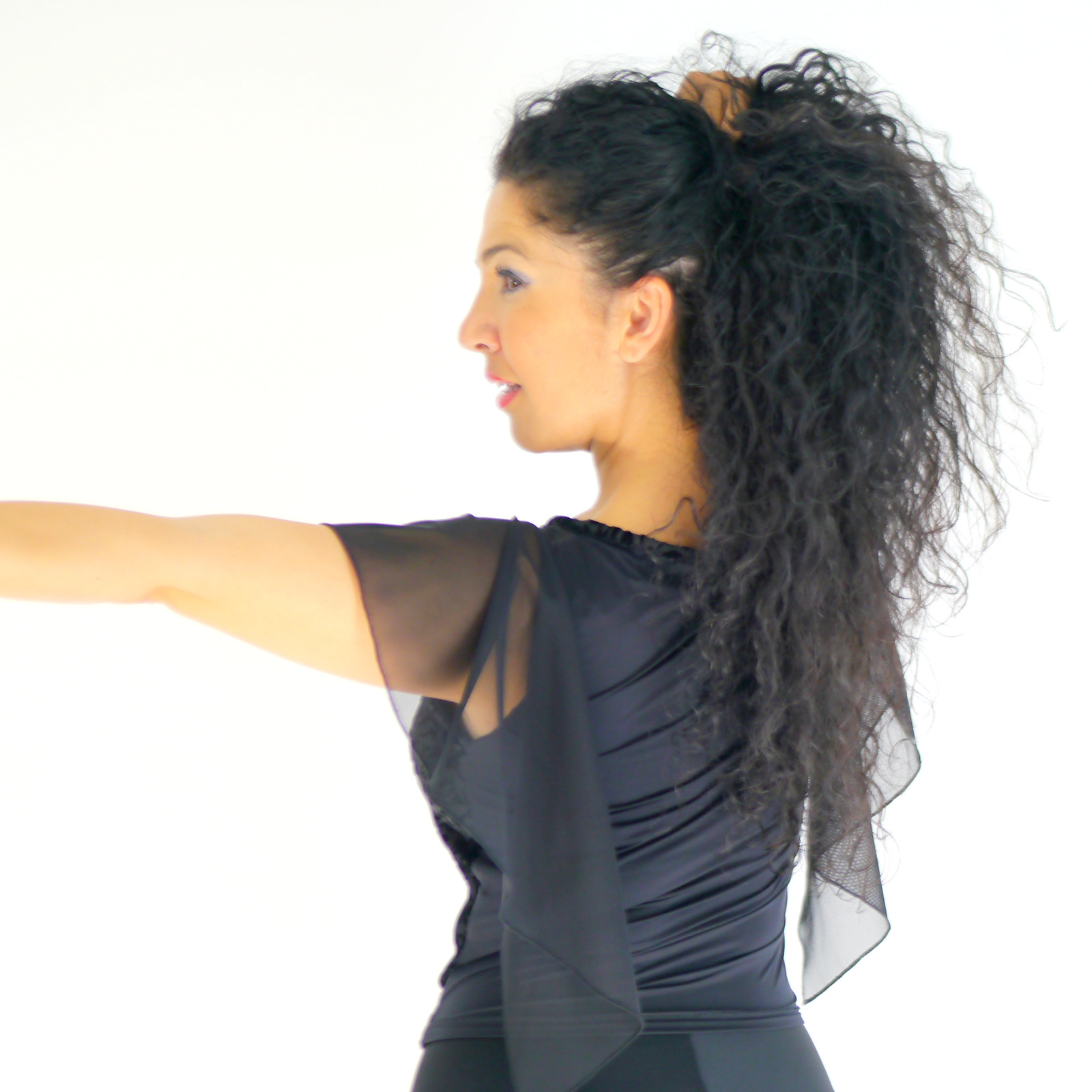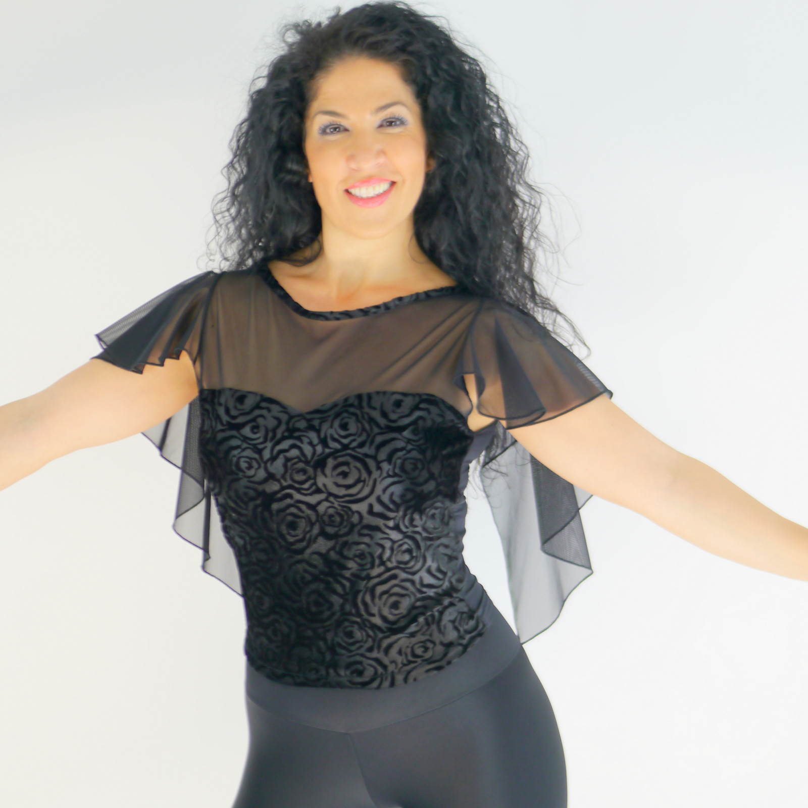 Die figurnahe, hüftbedeckende Schnittform und der feine Samt Stoff verleihen diesem Top mit Netz von Salsa-Styles eine raffinierte Ausstrahlung. Besonderer Blickfang ist der Netz Stoff der auf der Brust und Schultern zu sehen ist. Auf der Rückseite hat das Oberteil einen feinen und elastischen Lycra Stoff.