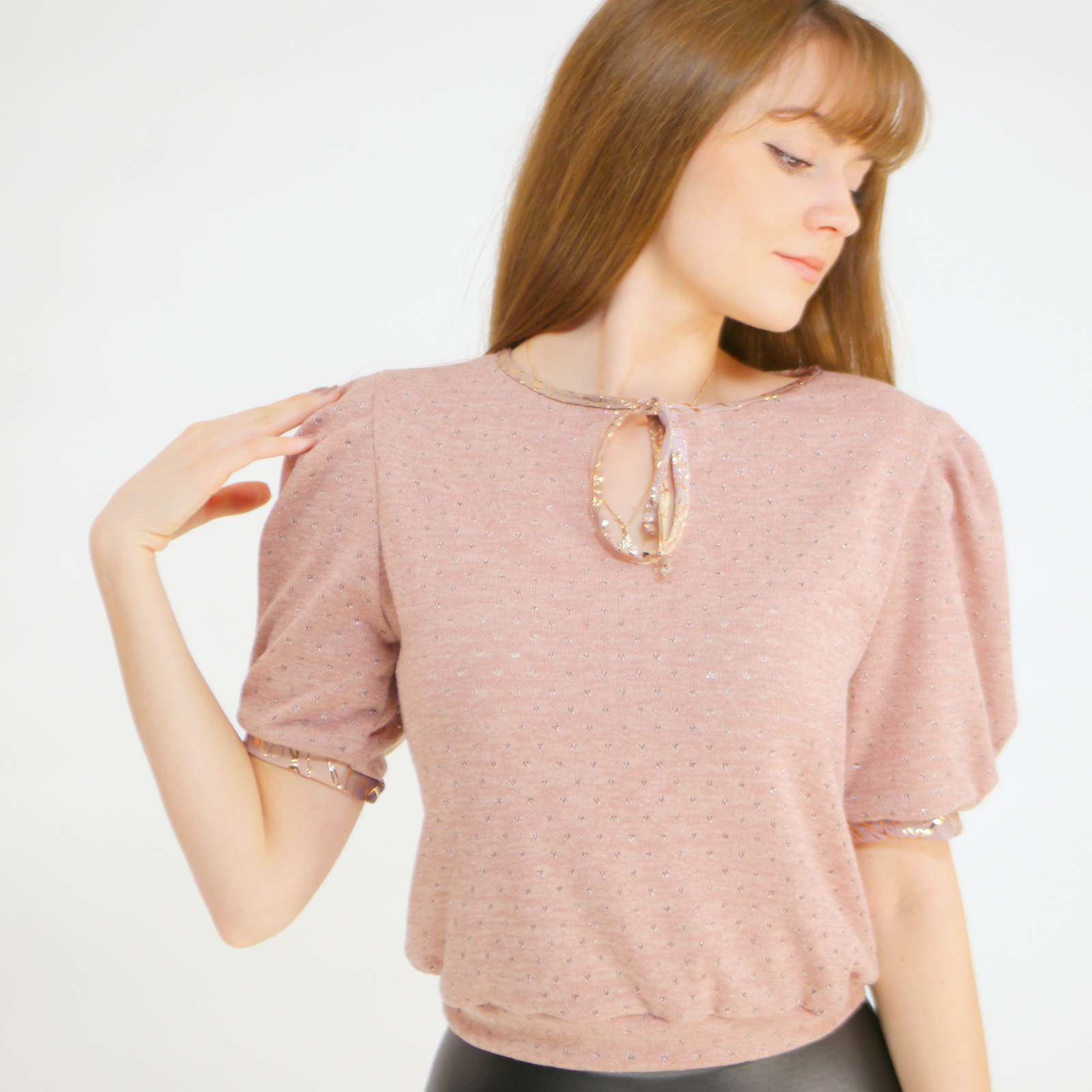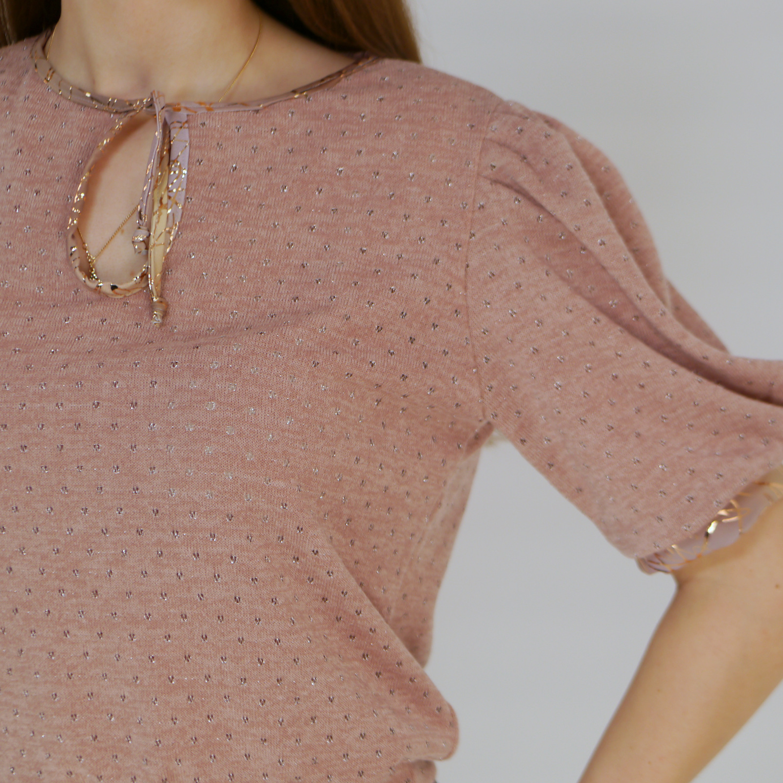 Produktinformationen "Oberteil aus Stickstoff mit Lurexfaden und goldenen Saum"