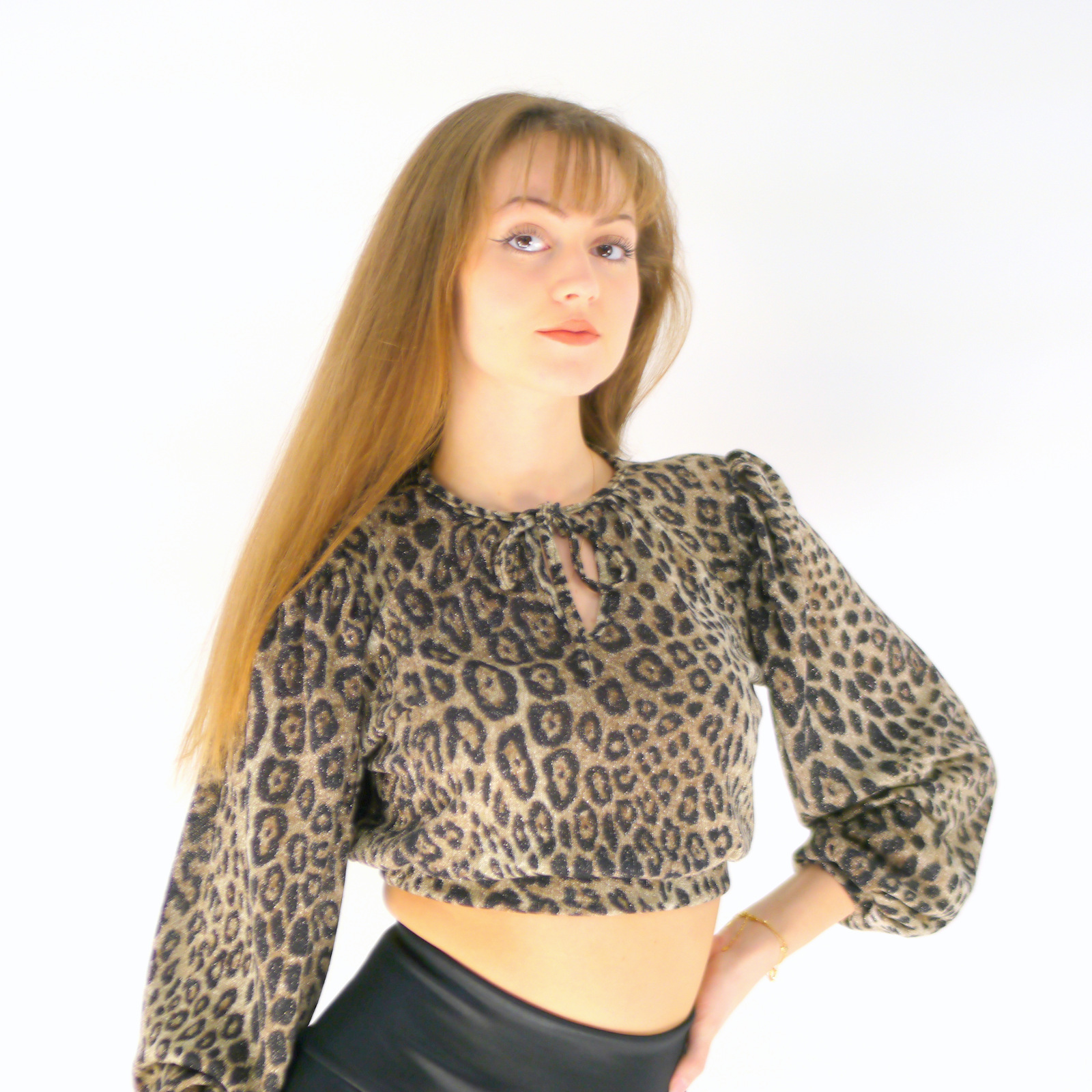 Oberteil aus Strickjersey Stoff mit Leopardenmuster