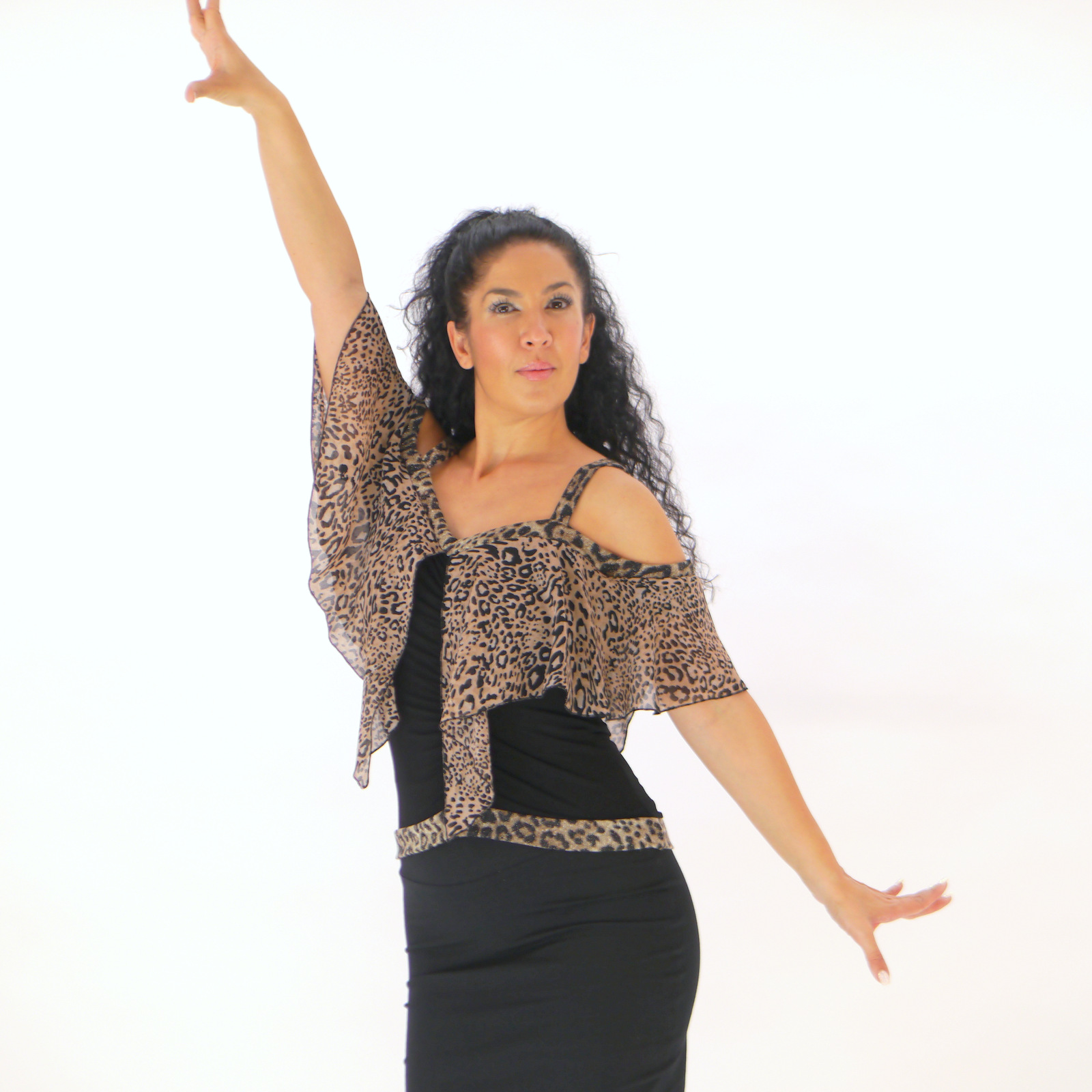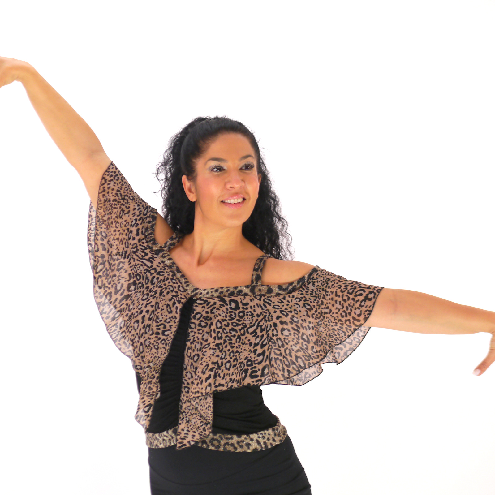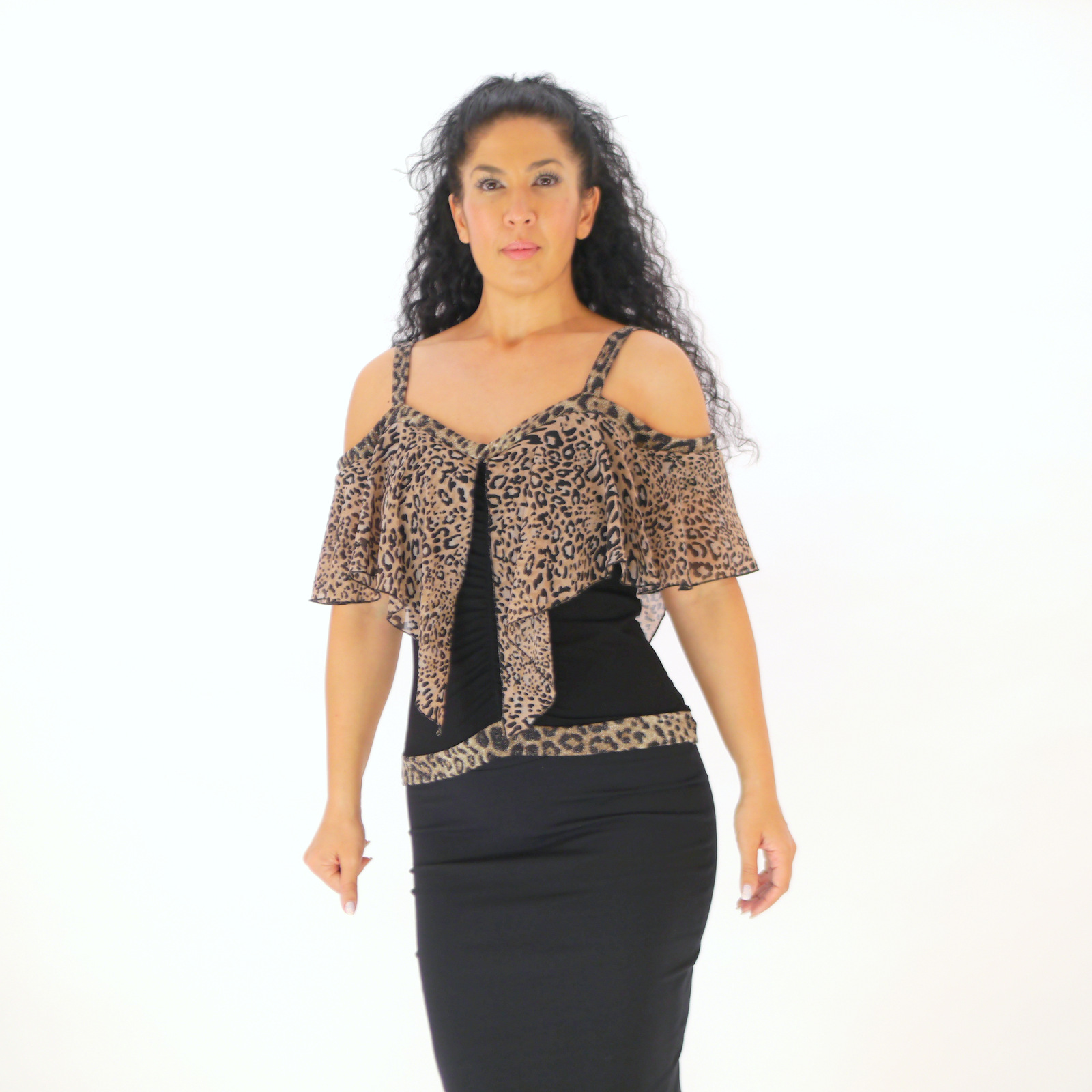 Oberteil in schwarz-braun mit Tüll Ärmel