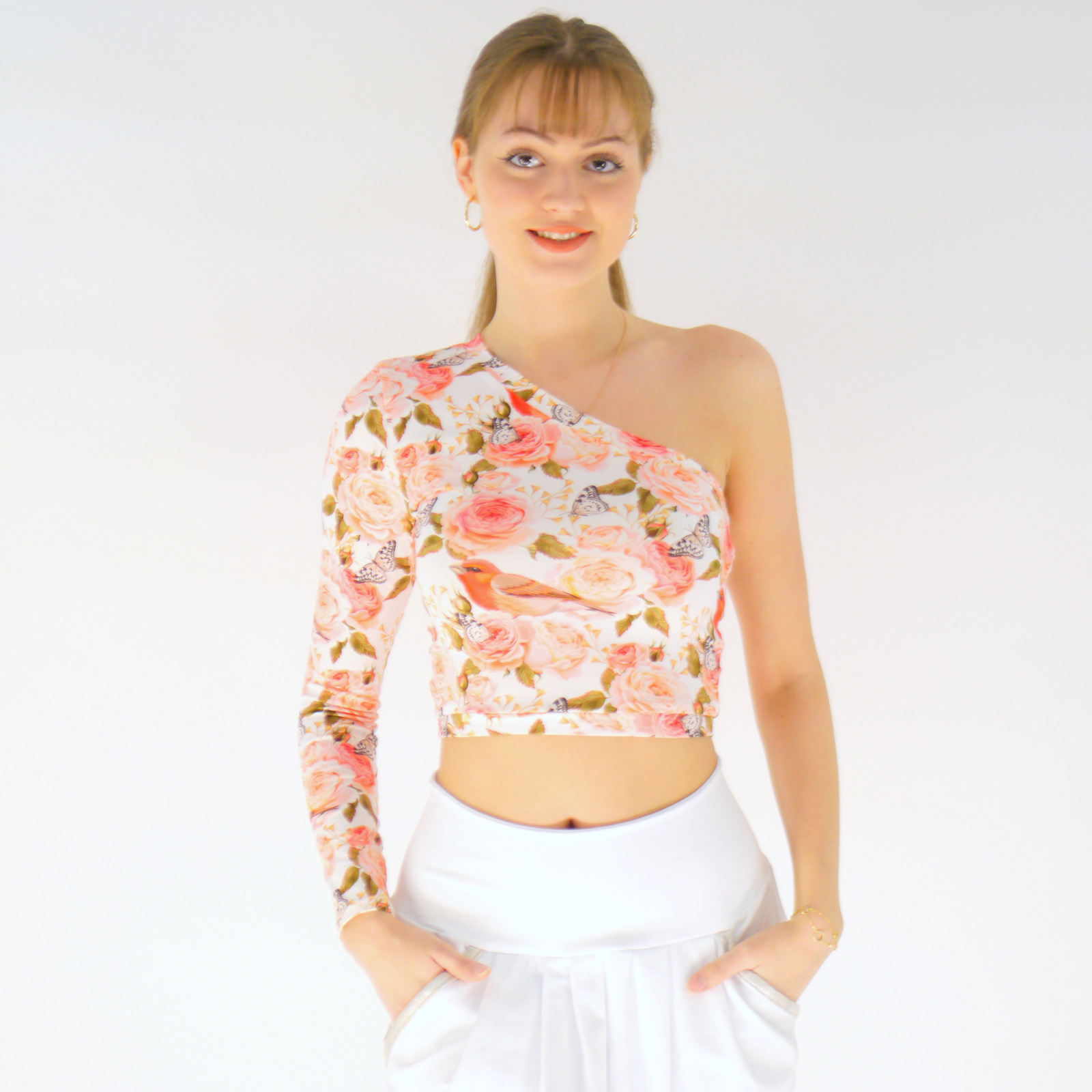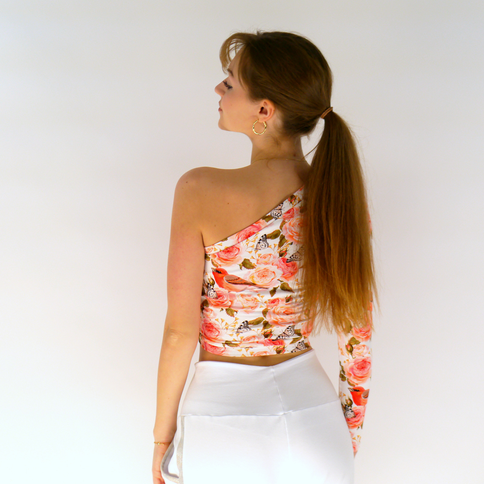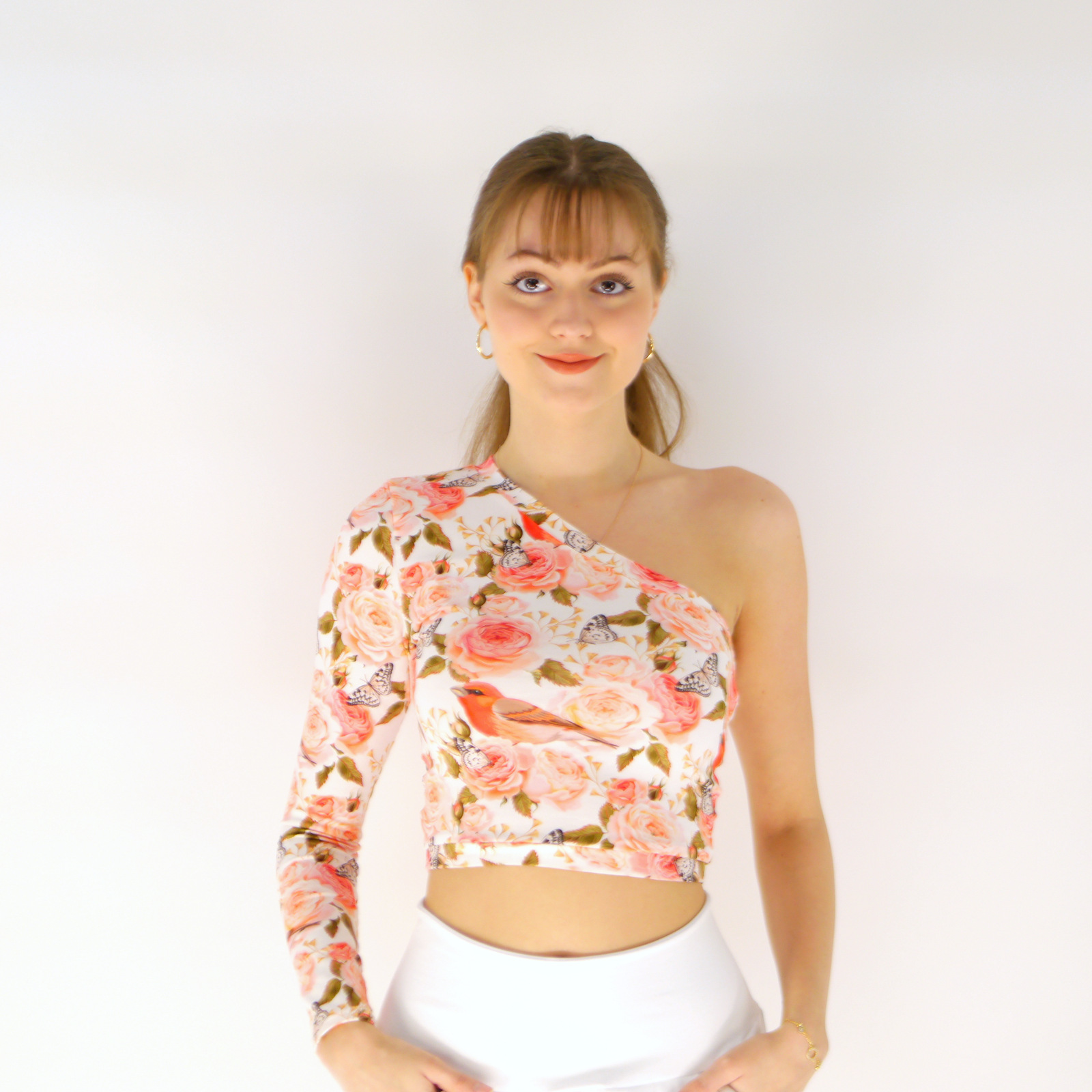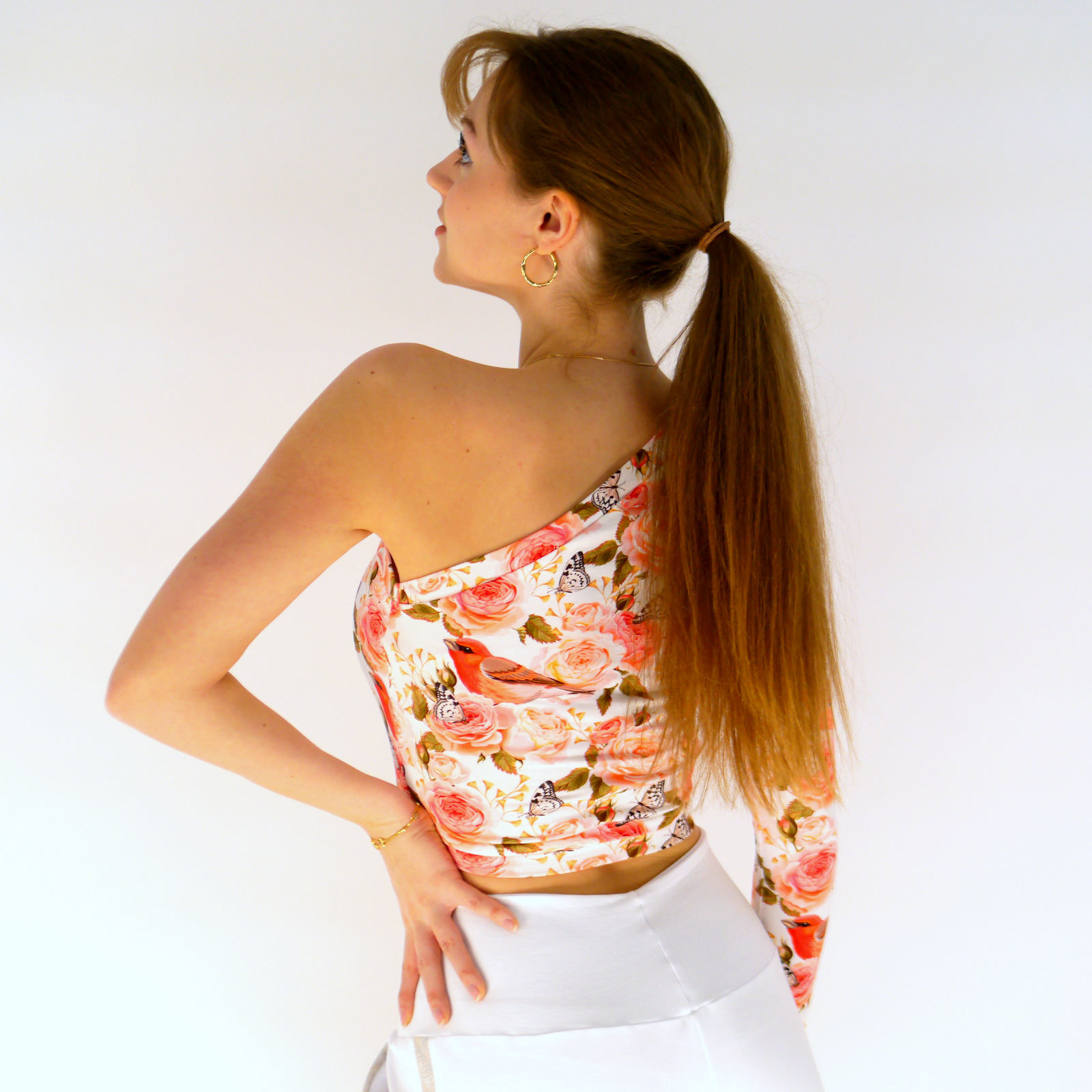 Oberteil mit Blumenmuster und Vögeln