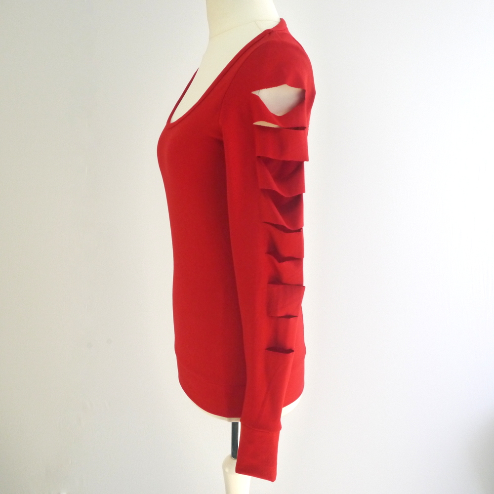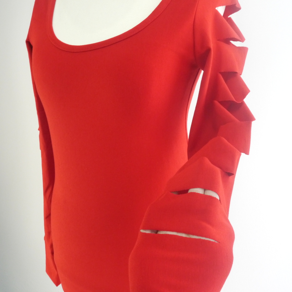 Oberteil aus Baumwolle kombiniert mit rote Spitze.