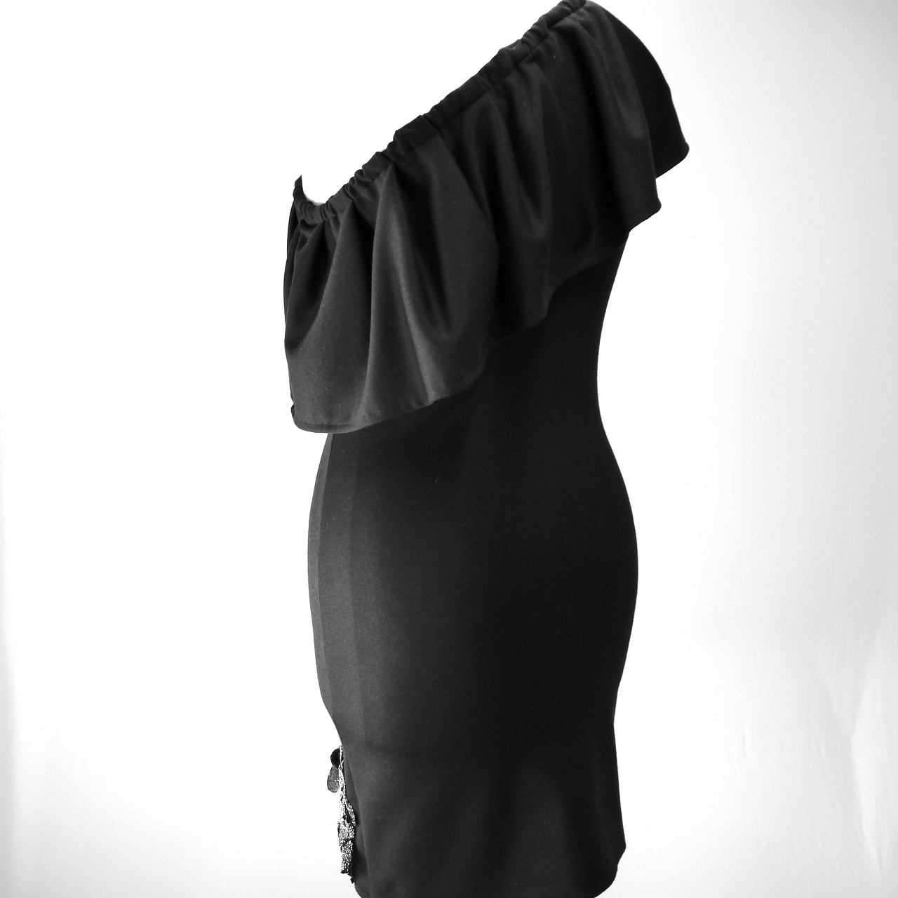 Kleid aus Baumwolle mit handgemachte Blumen und Strass Steine.