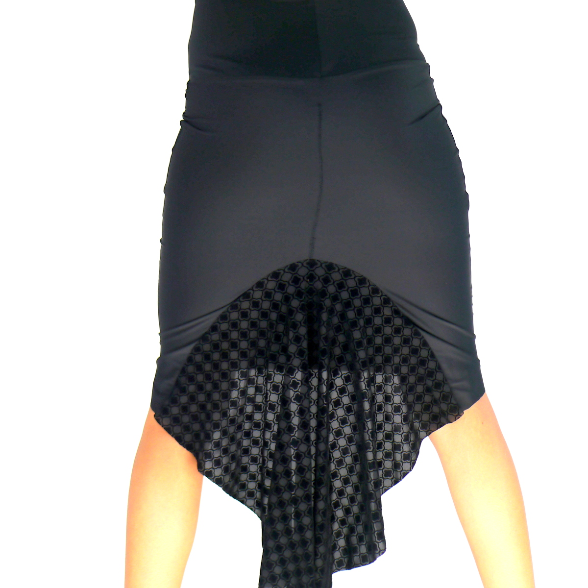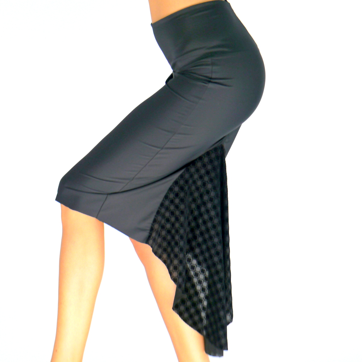 Ein wunderschöner Tangorock in schwarz angefertigt aus elastischen Stoff sehr bequem beim Tanzen.