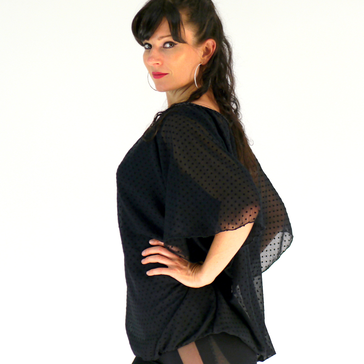 Produktinformationen "Schwarzes Oberteil aus Chiffon beflockt mit Punkte"