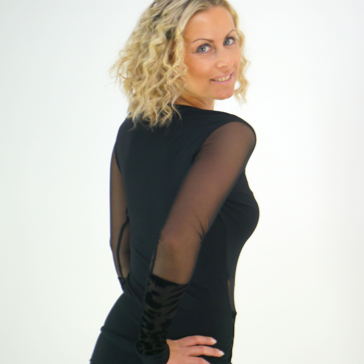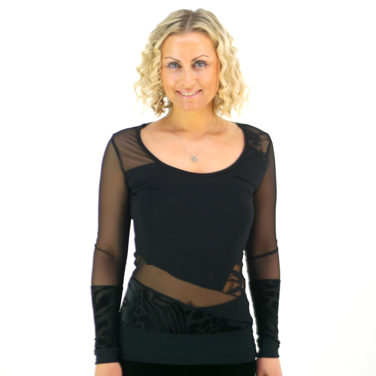 Produktinformationen "Schwarzes Oberteil für Frauen mit Netz Halbtransparent"