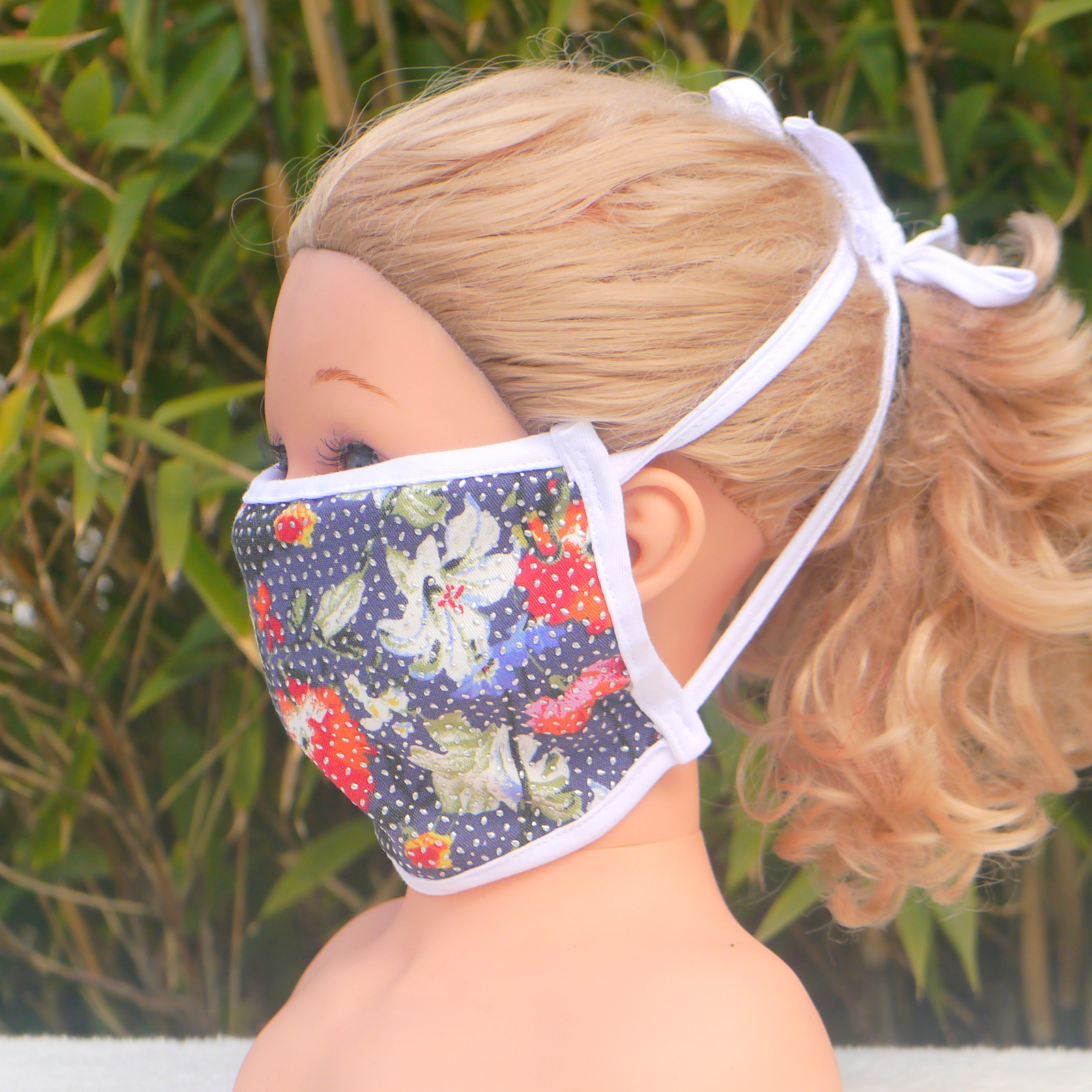 Mund und Nasen Maske aus Baumwolle für Kinder und Erwachsene. Die Maske ist waschbar und mehrfach verwendbar, ist dreilagig: vorne Baumwolle, in der Mitte dünnen Einlage aus Viskose und am Mund wieder Baumwolle.