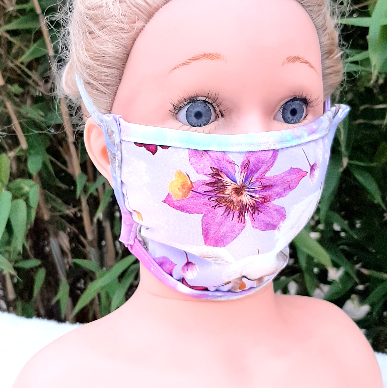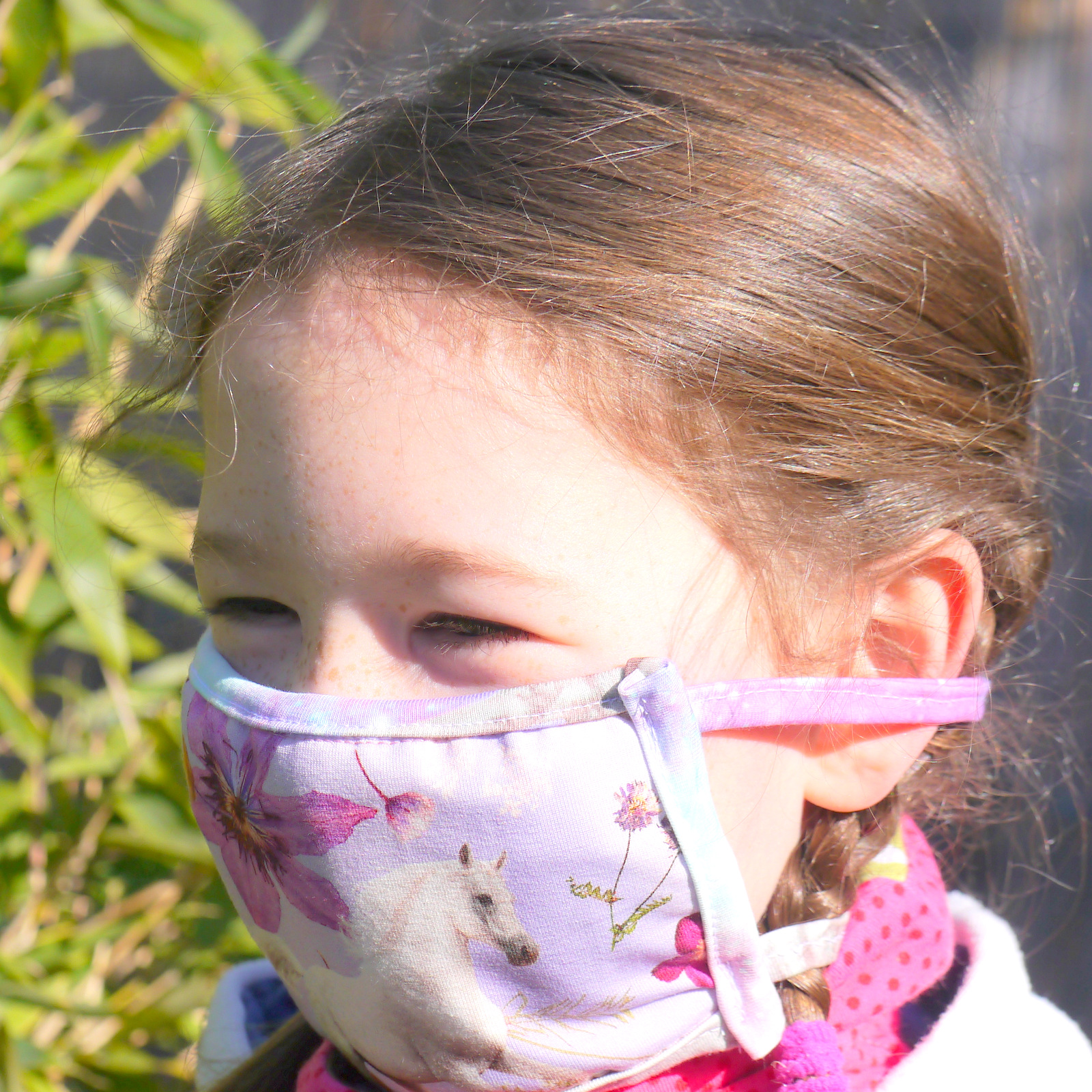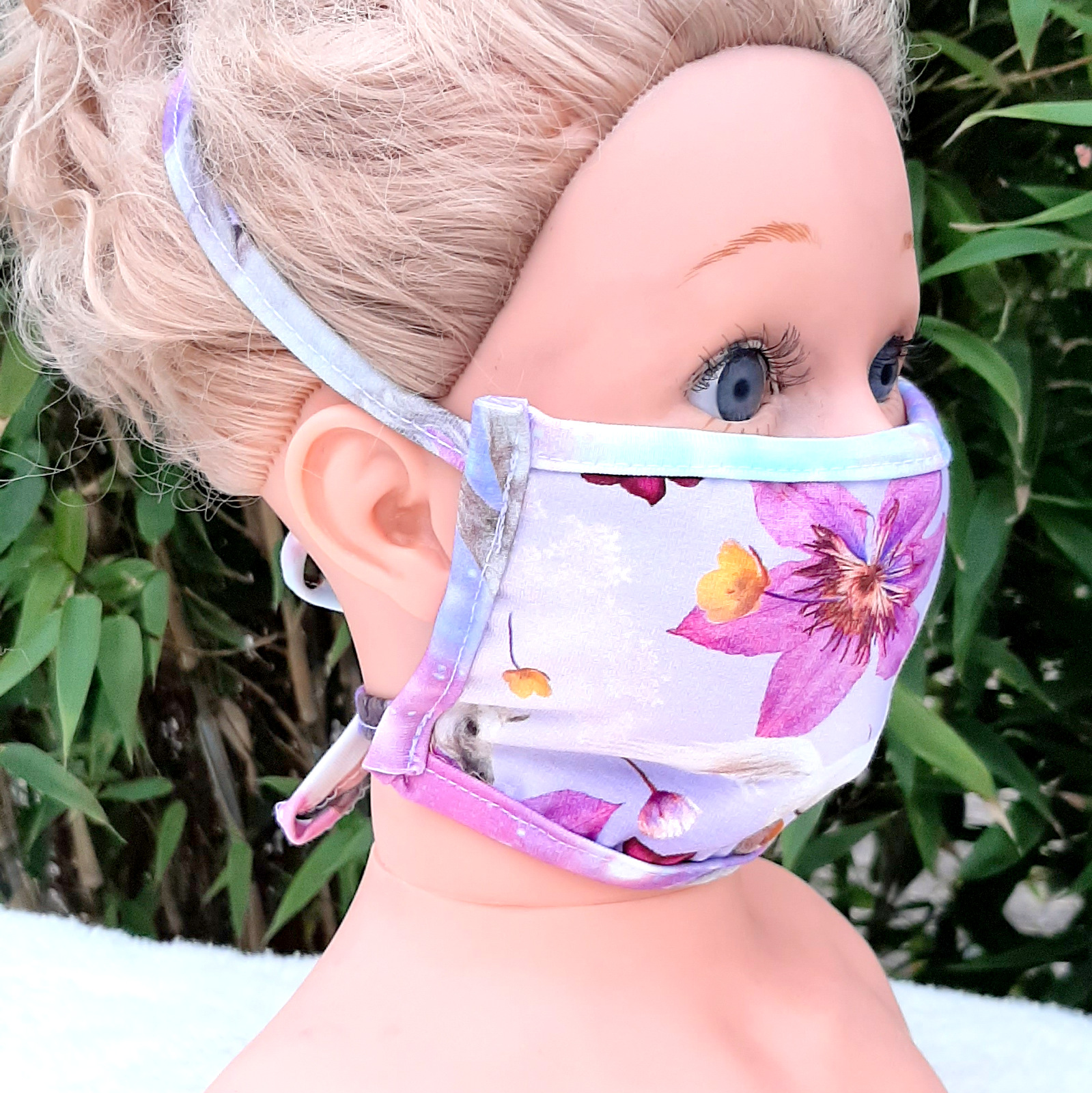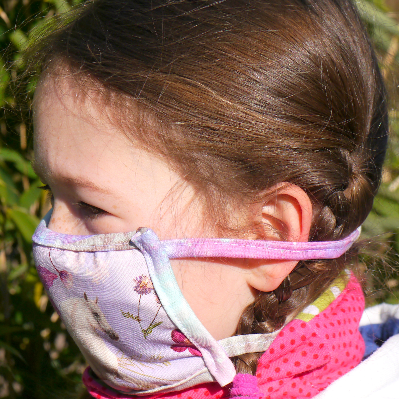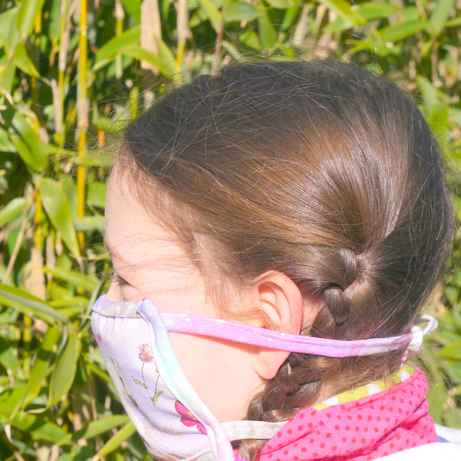Mund und Nasen Maske aus 95%Baumwolle+5%Elasthan für Kinder und Erwachsene. Die Maske ist waschbar und mehrfach verwendbar. Die Maske ist dreilagig: vorne Baumwolle, in der Mitte dünnen Einlage aus Viskose und am Mund wieder Baumwolle.