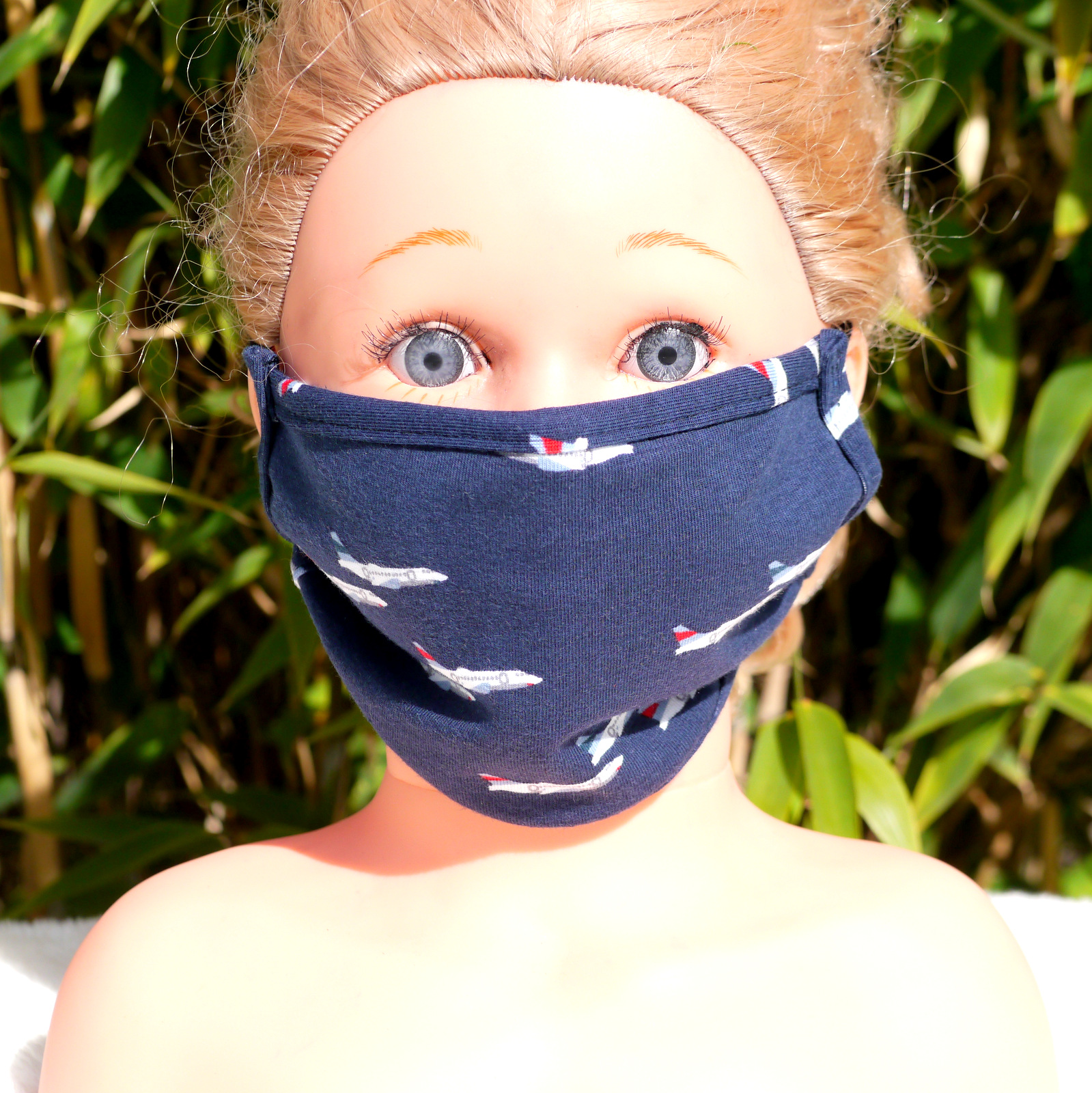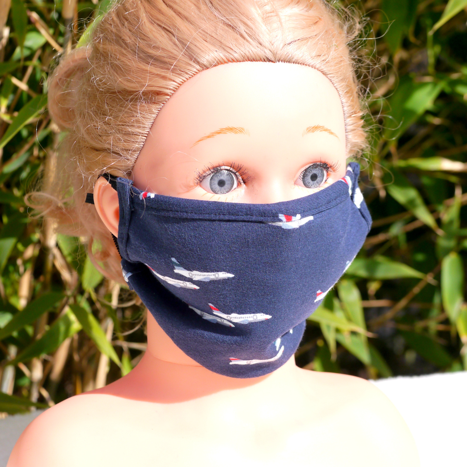 Mund und Nasen Maske aus 95%Baumwolle + 5% Elasthan. Die Maske ist waschbar und mehrfach verwendbar und ist dreilagig.