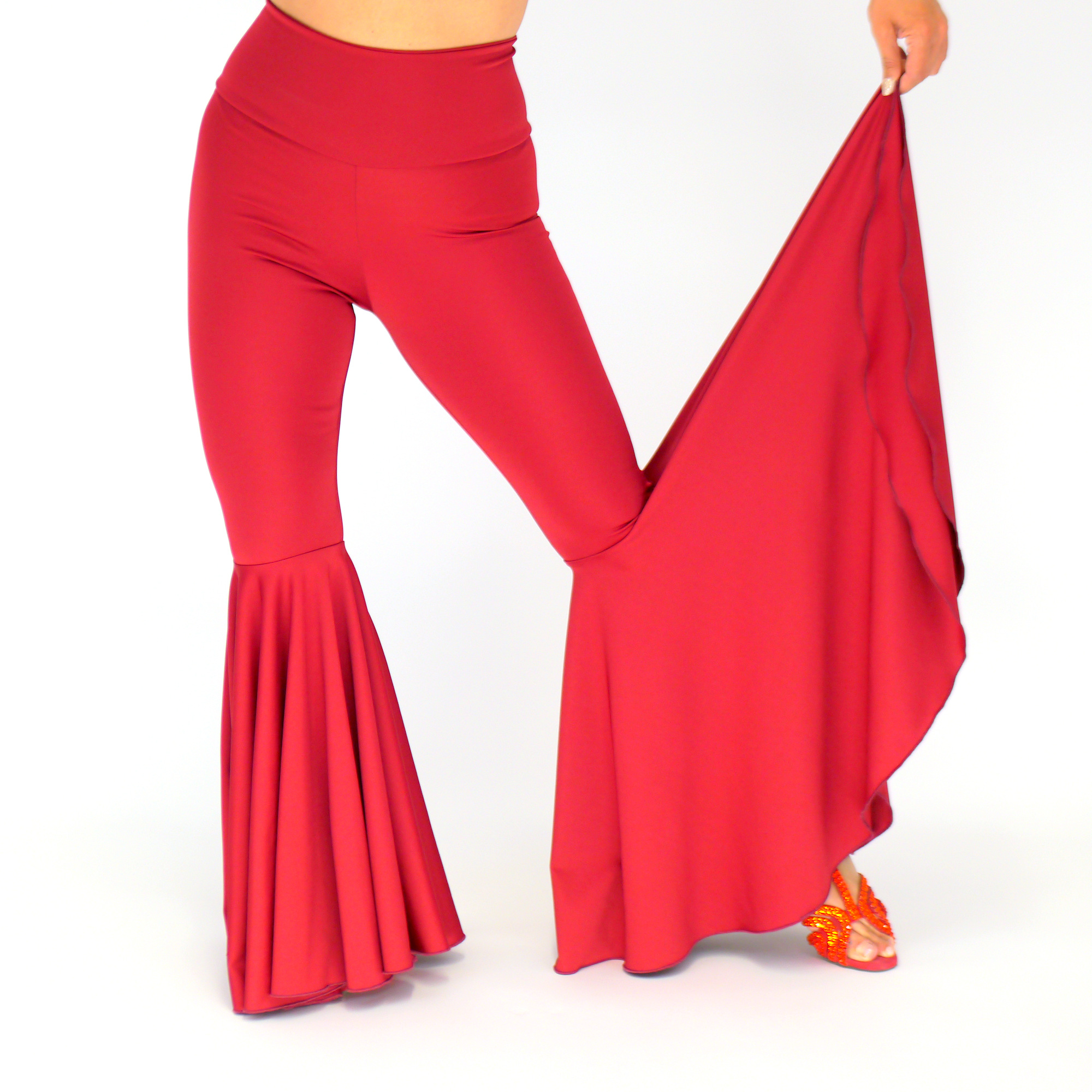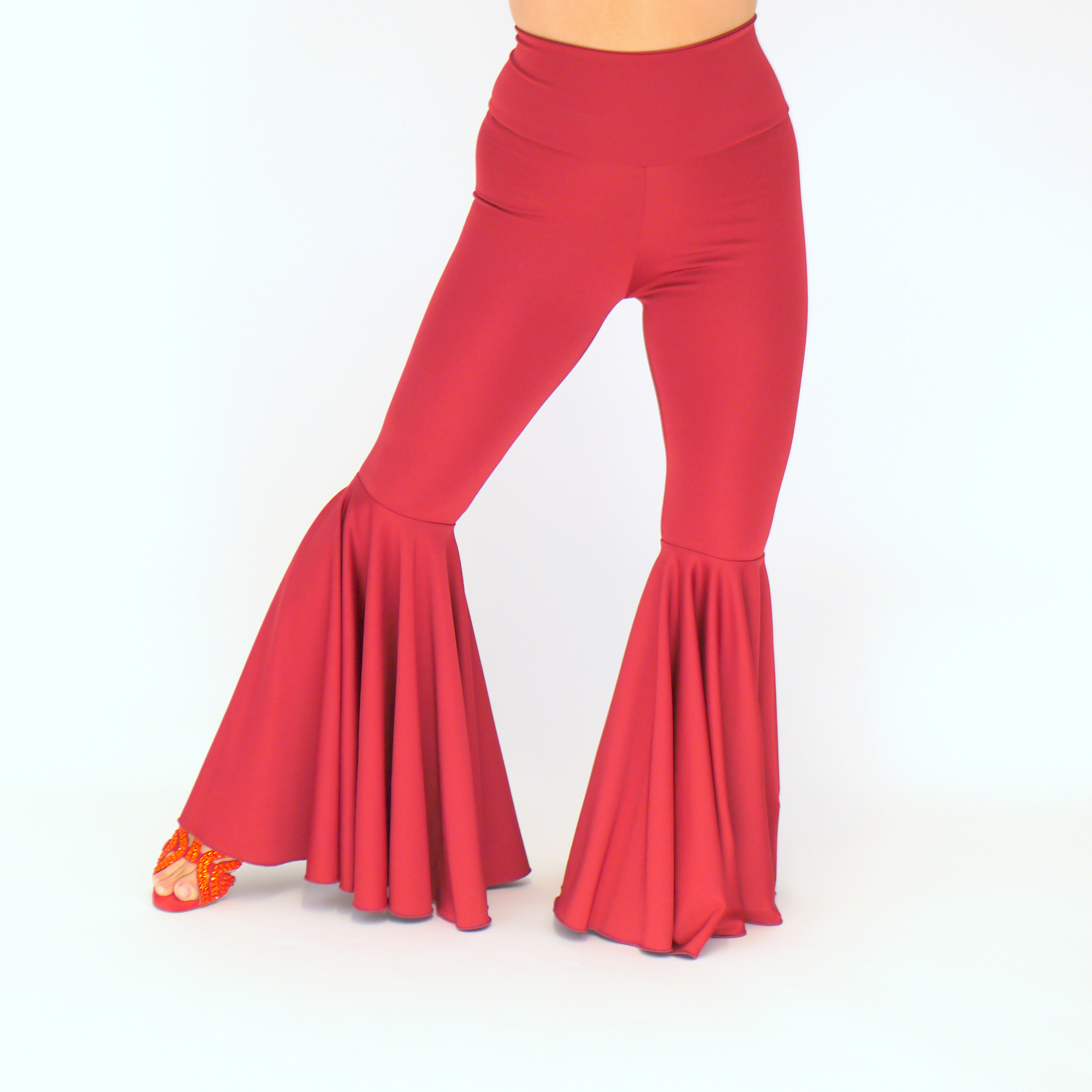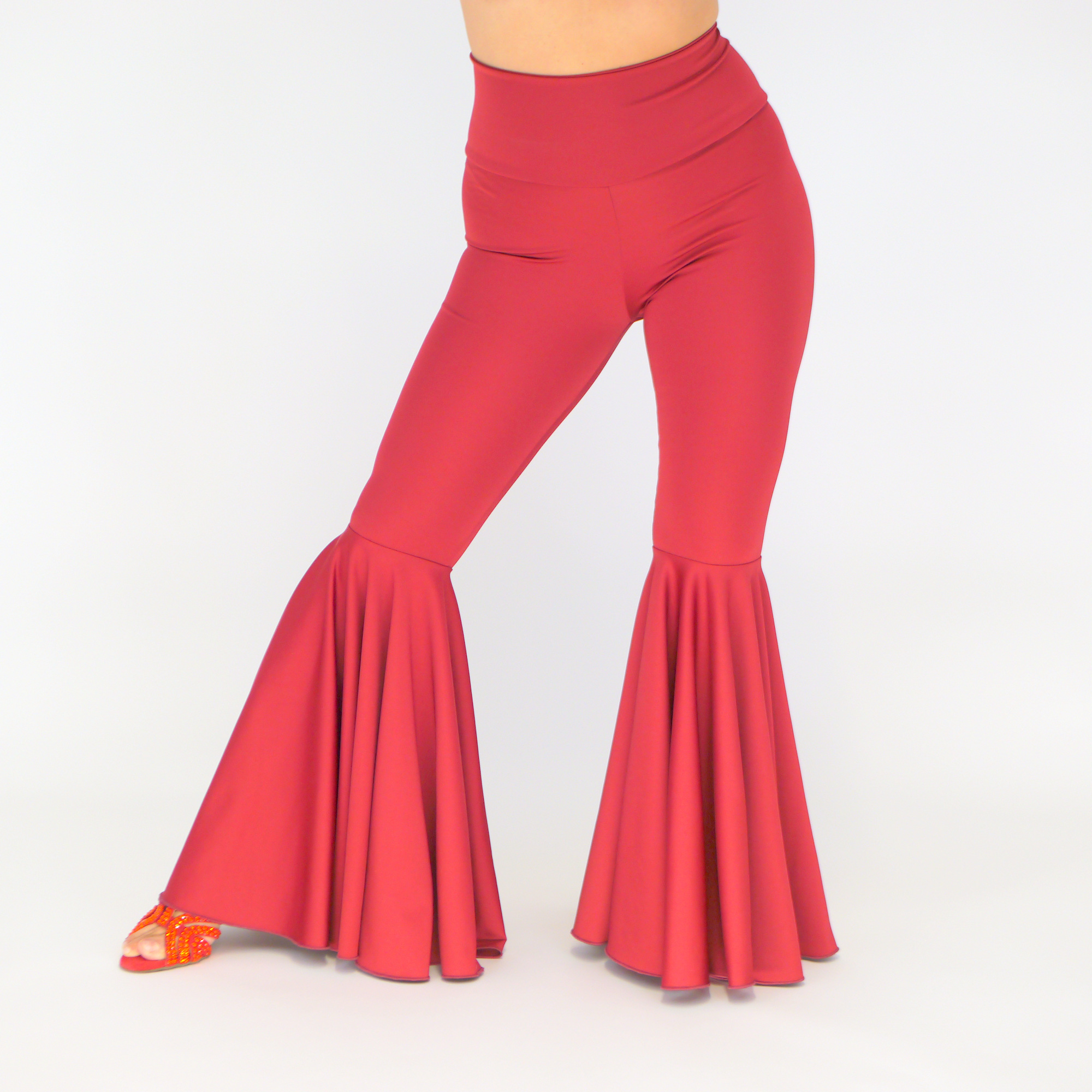 Produktinformationen "Hoch taillierte Glockenhose Damen - Schlaghose Farbe Weinrot"