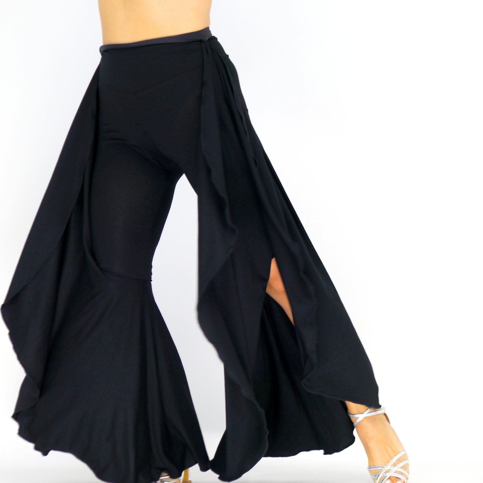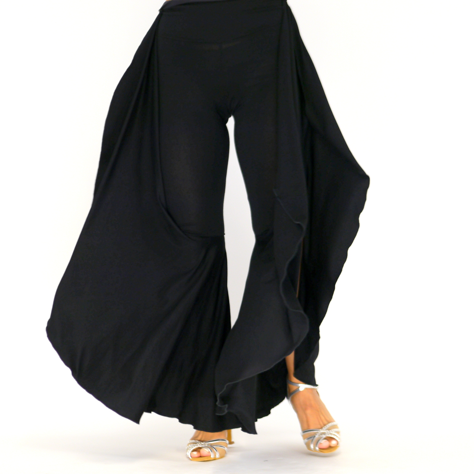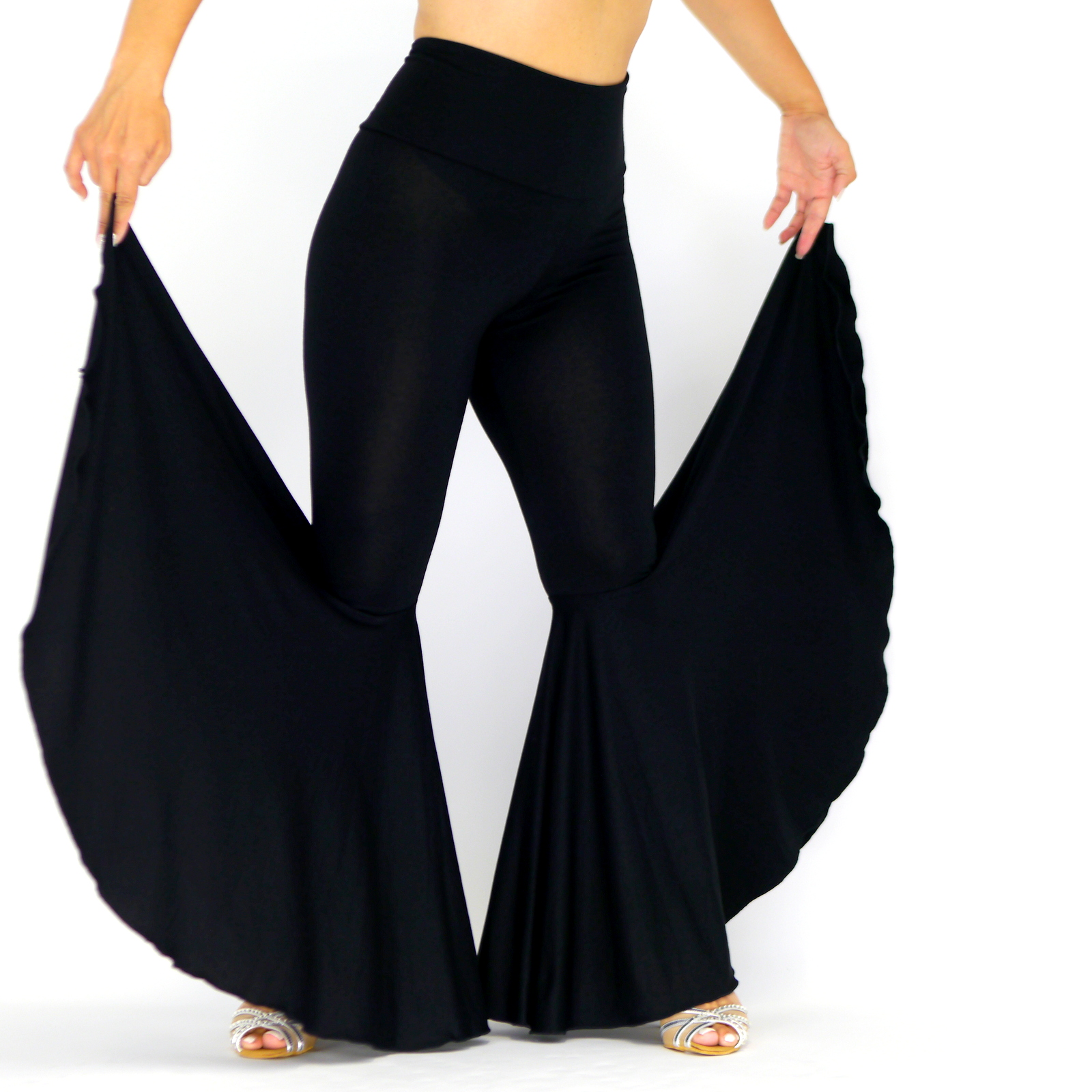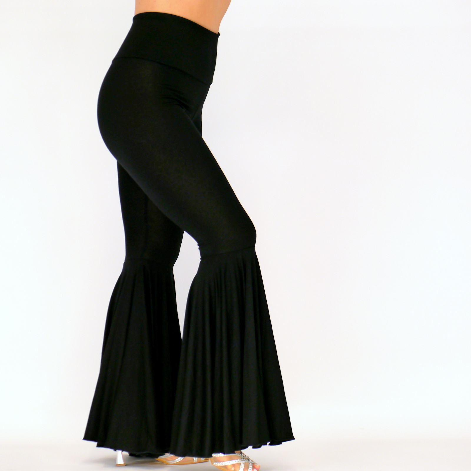 Entdecke unsere elegante Damen Glockenhose in klassischem Schwarz, gefertigt aus hochwertigem, elastischem Viskosejersey. Diese handgemachte Tanzhose besticht durch ihren hohen Taillenschnitt, der für eine schmeichelhafte Passform sorgt und gleichzeitig maximalen Komfort bietet. Das innovative Design verfügt oben am Bund über eingearbeitete Druckknöpfe, mit denen du den unteren Saum nach Wunsch hochfixieren kannst. So erhältst du eine funktionale Hose mit zwei Tragemöglichkeiten: als klassische Glockenhose oder als hochgekrempelte Variante für einen lässigen Look. Perfekt für Tanz, Freizeit oder besondere Anlässe – diese vielseitige Hose vereint Style, Komfort und Funktionalität. Ideal für alle, die eine handgemachte, hochwertige und anpassbare Damenhose suchen