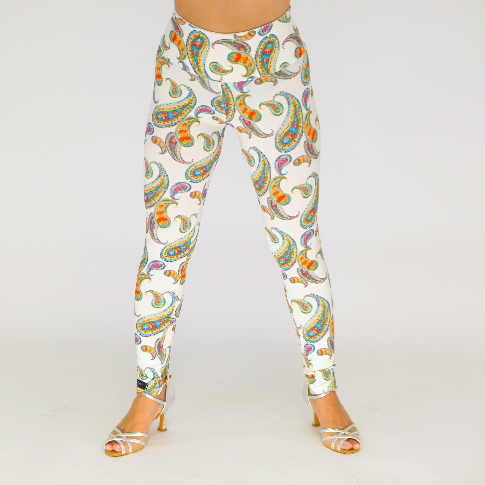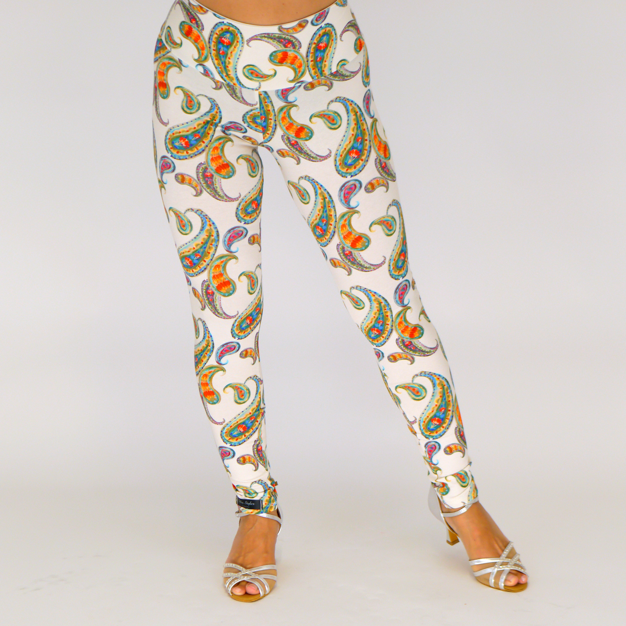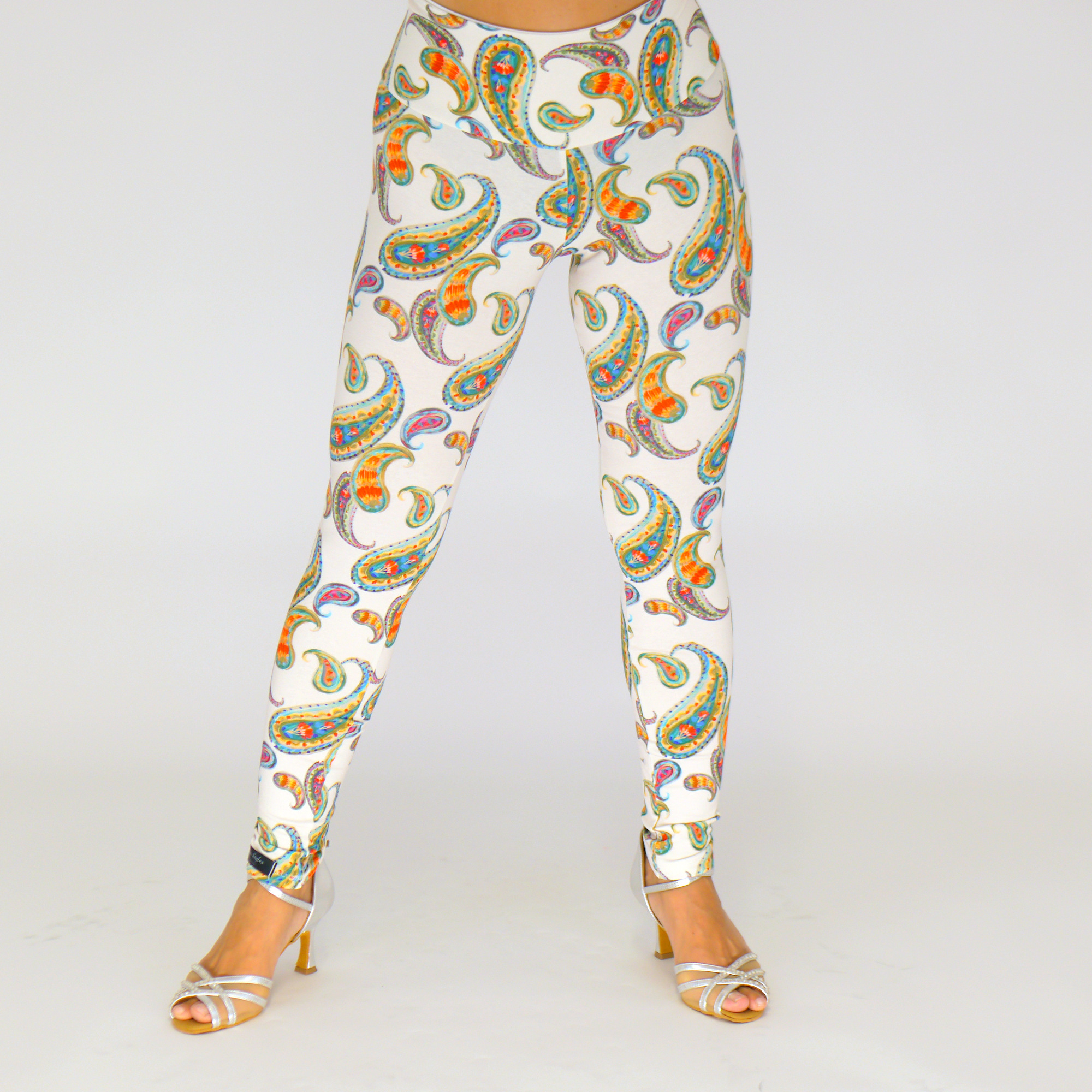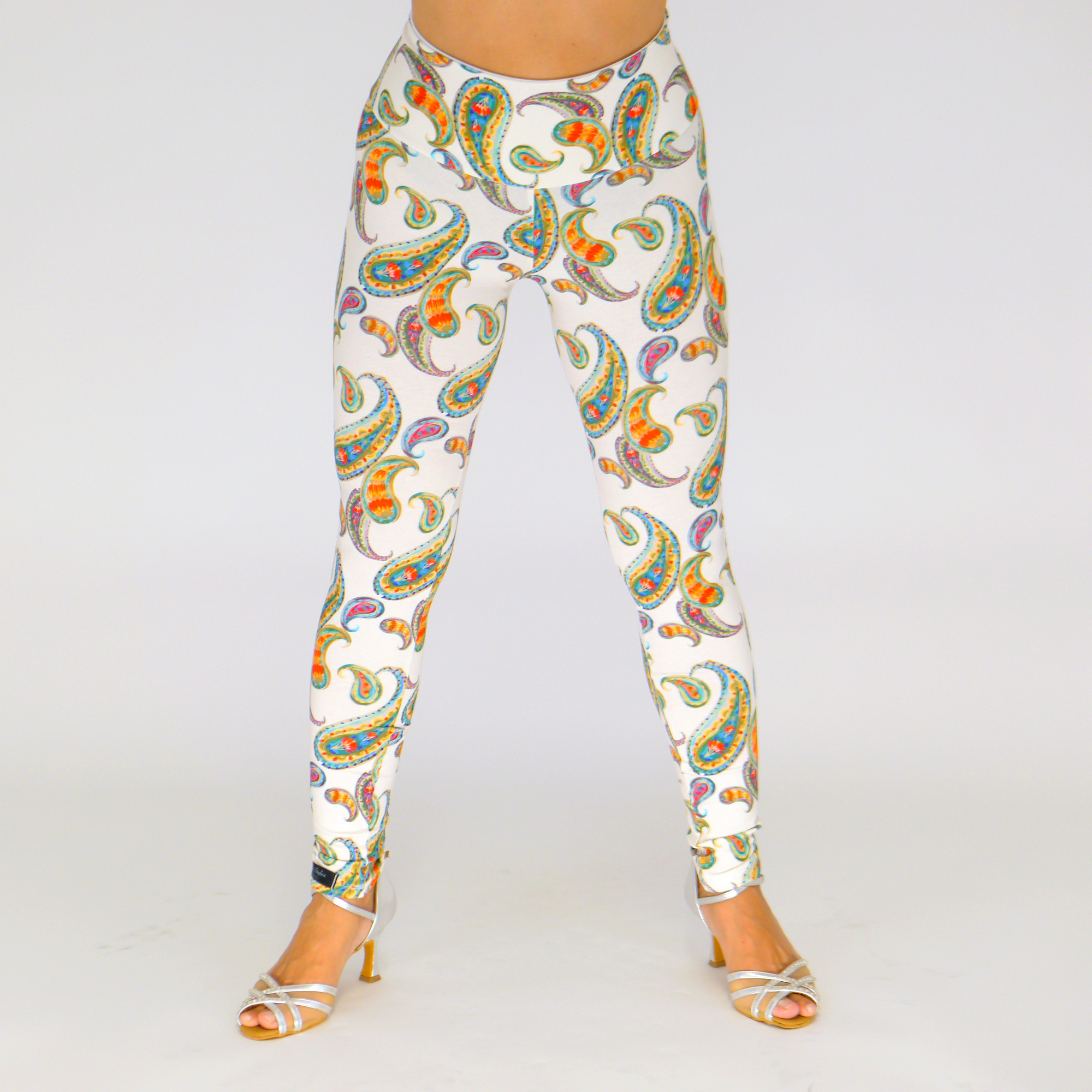 Handgemachte Baumwolljersey-Leggings in der Farbe Wollweiß-blau