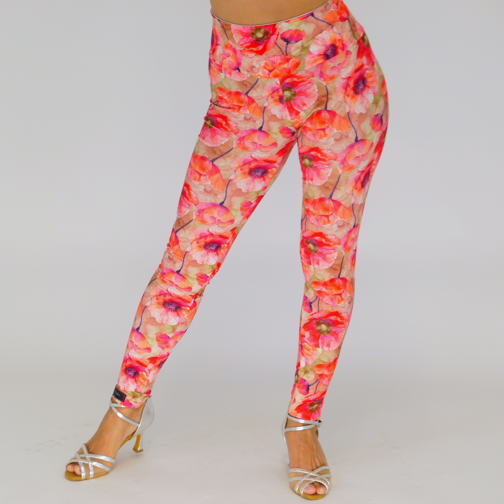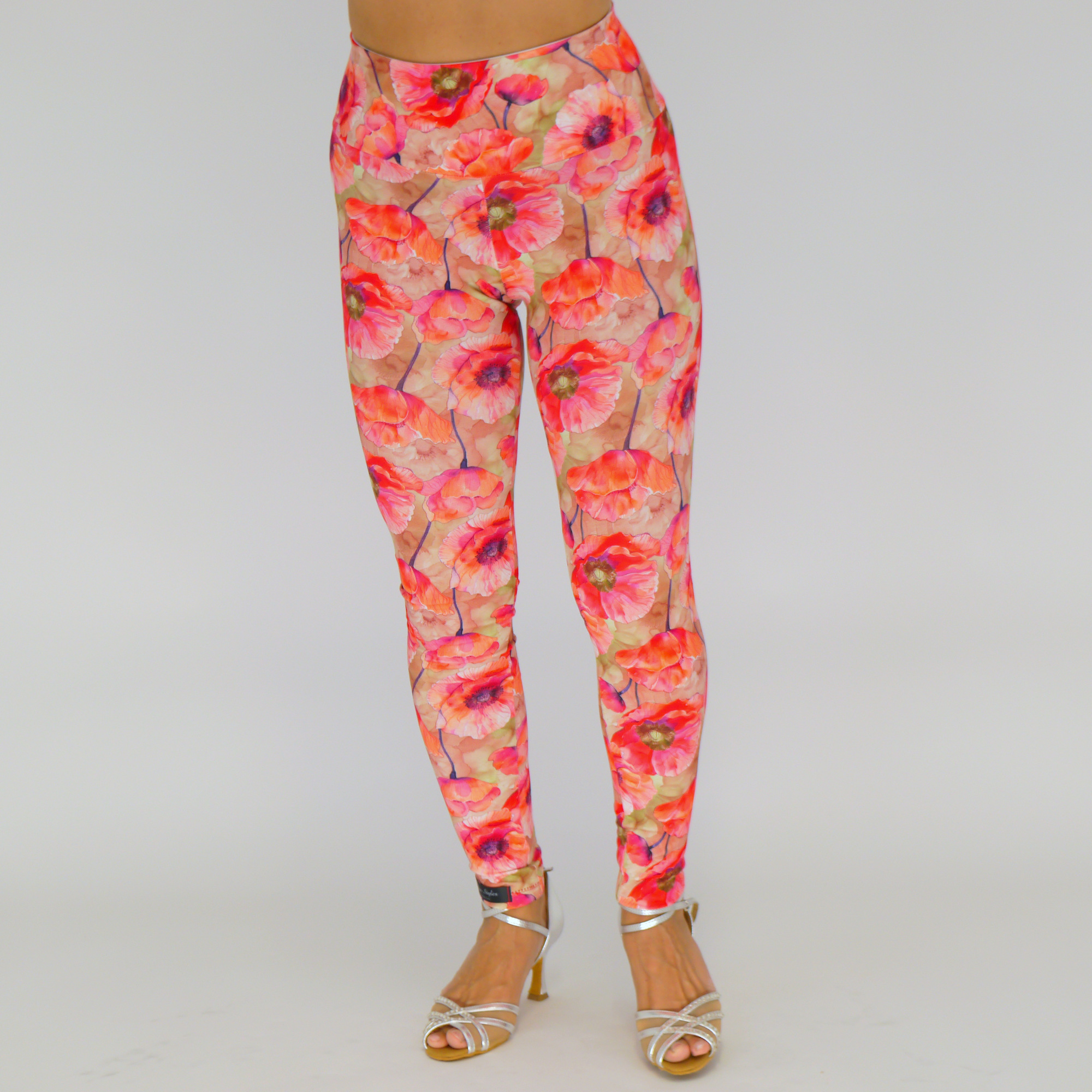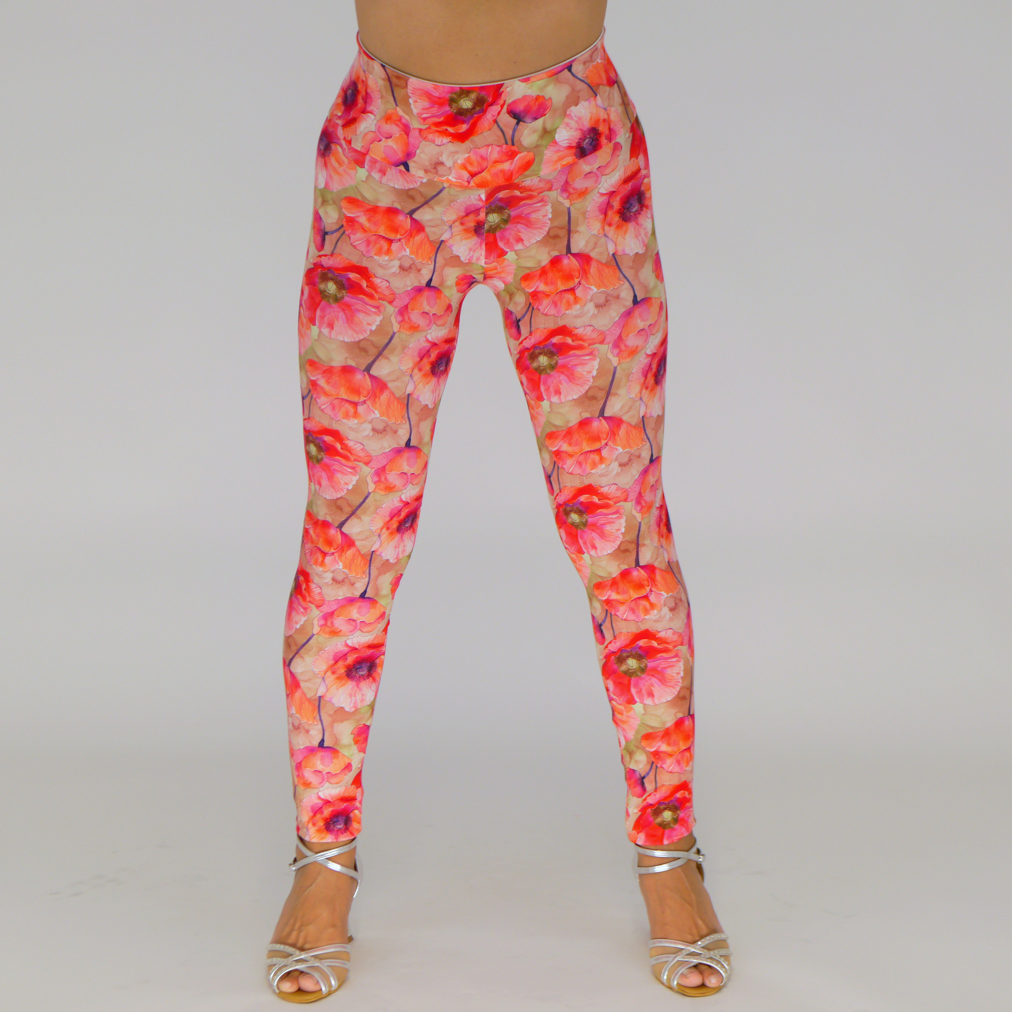 Produktinformationen "Handgemachte Leggings – Elastisch & Bequem mit Hohem Bund / Mohnblume Print"