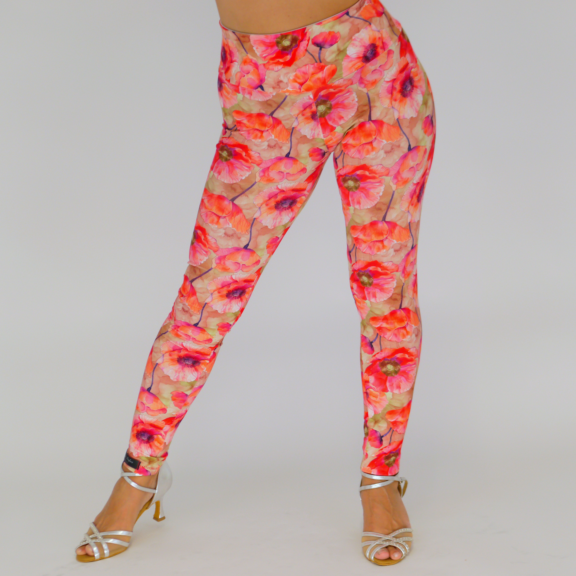 Handgemachte Leggings – Elastisch & Bequem mit Hohem Bund / Mohnblume Print