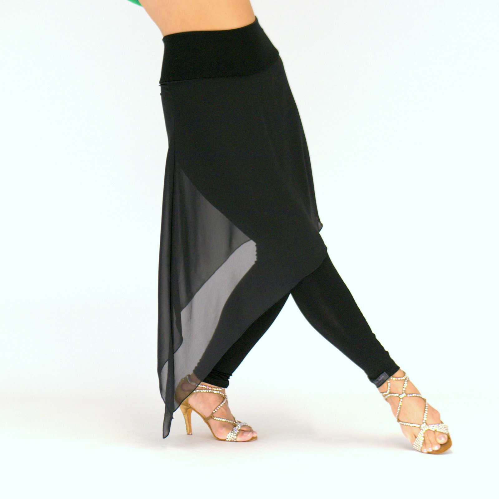 Handgemachte Leggings aus elastischem Viskosejersey mit Chiffon-Rock