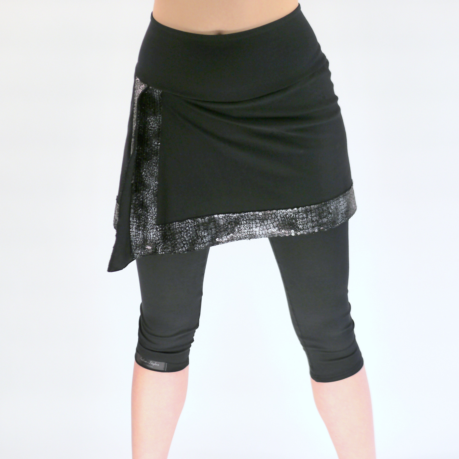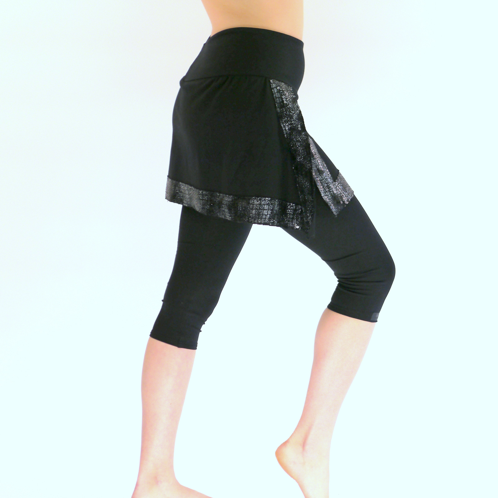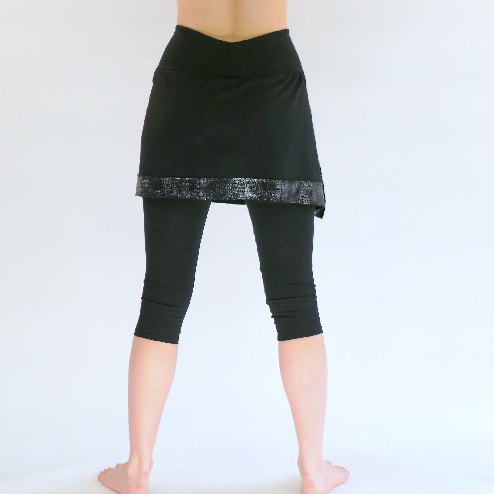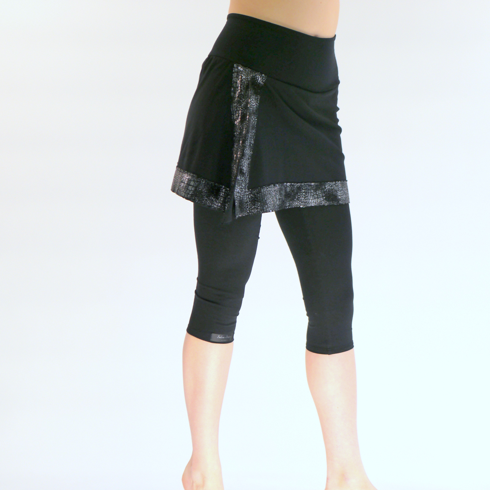 Schwarze Capri Leggings mit Rock aus Baumwolle