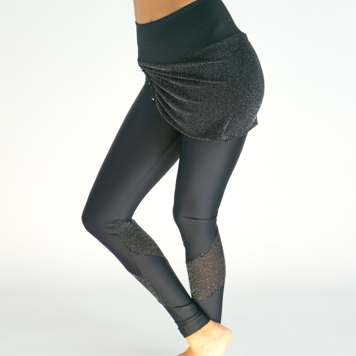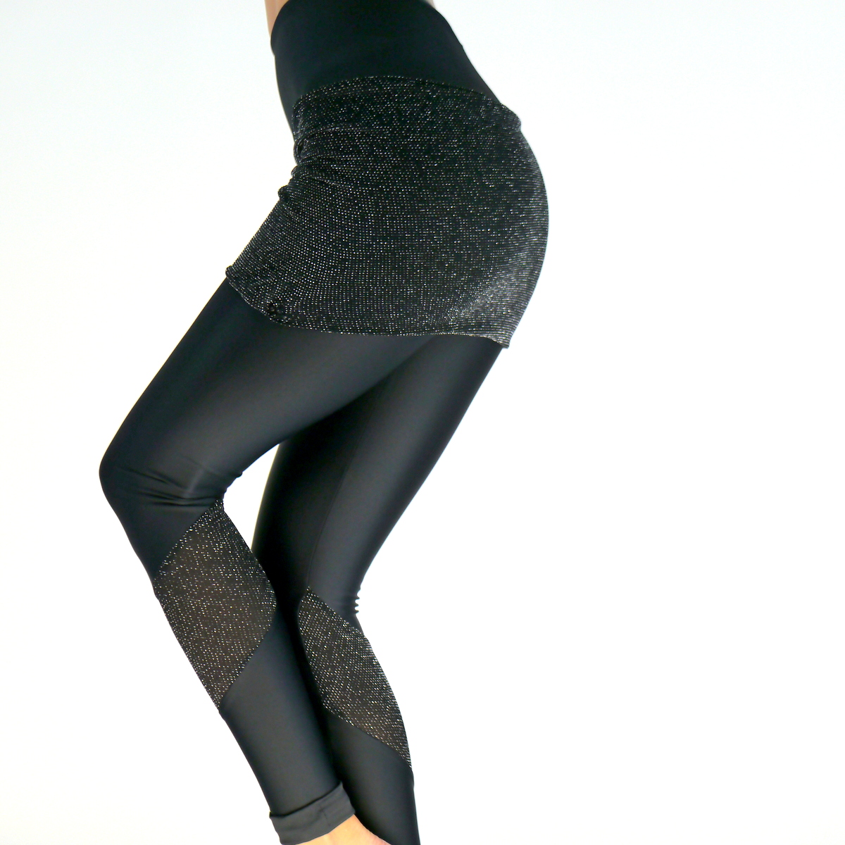Schwarze Leggings mit Röckchen aus Anthrazit-Glitzer Stoff