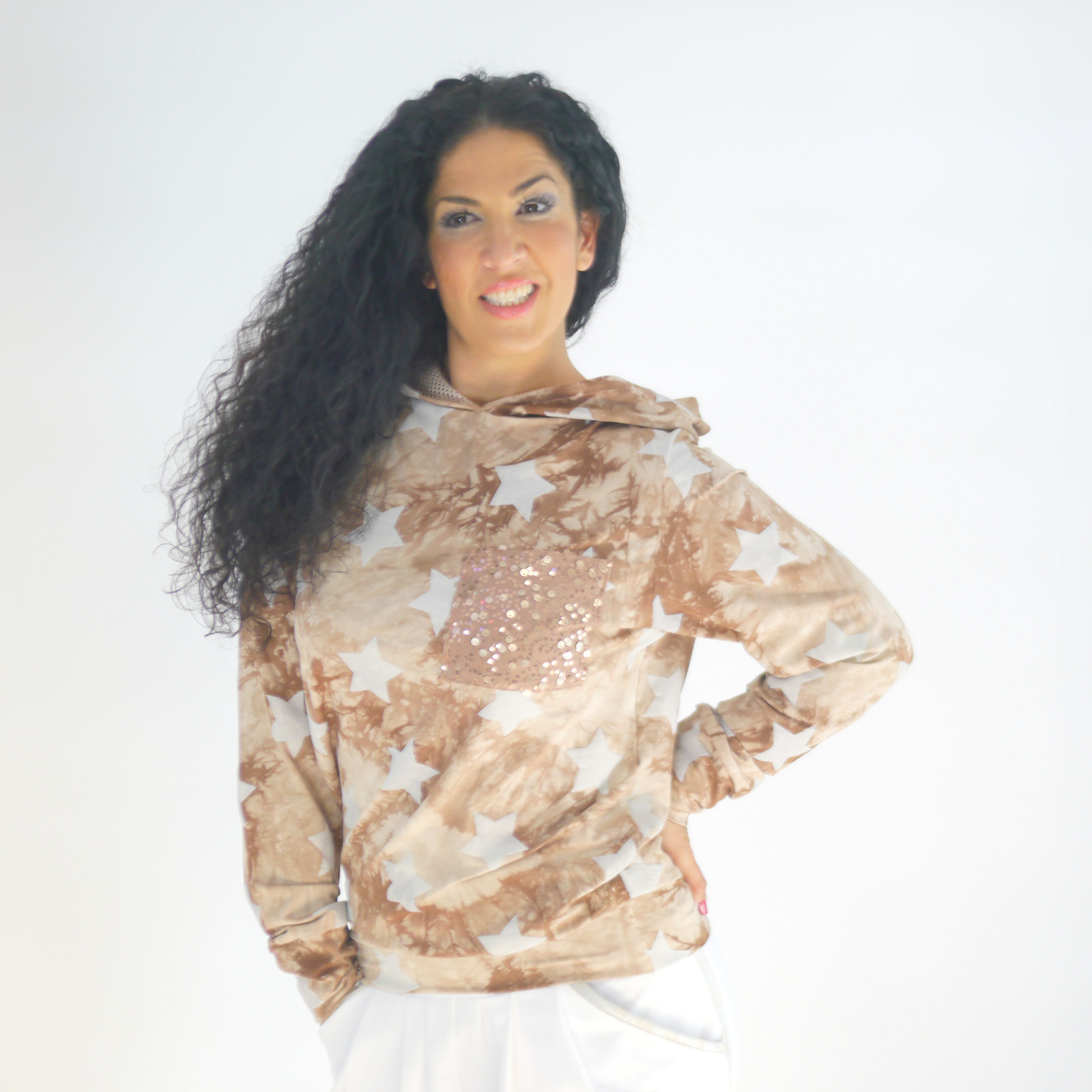 Hergestellt aus Viskosejersey und Paillettenstoff.
