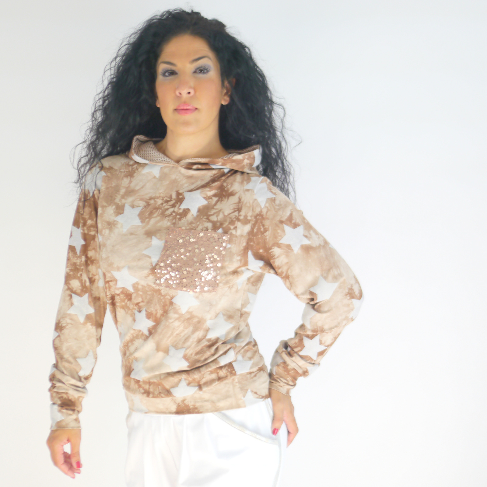 Beigefarbene Kapuzensweatshirt aus Viskosejersey mit Kapuze