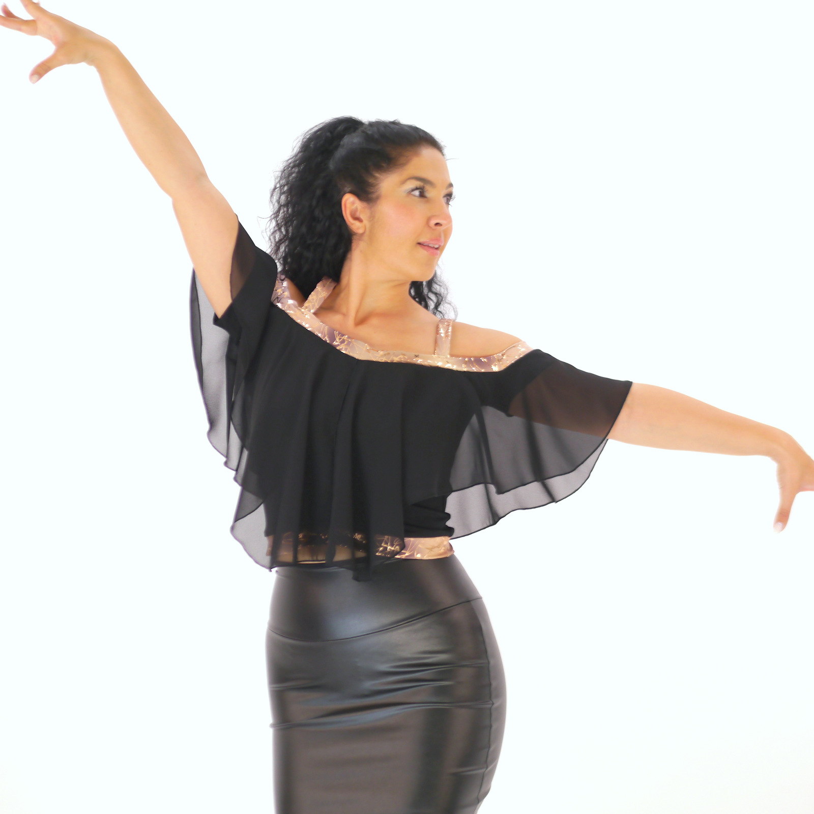 Bluse in schwarz mit Rüschen, Crop Top, Rüschen Crop Top, Schwarz-goldenes Oberteil