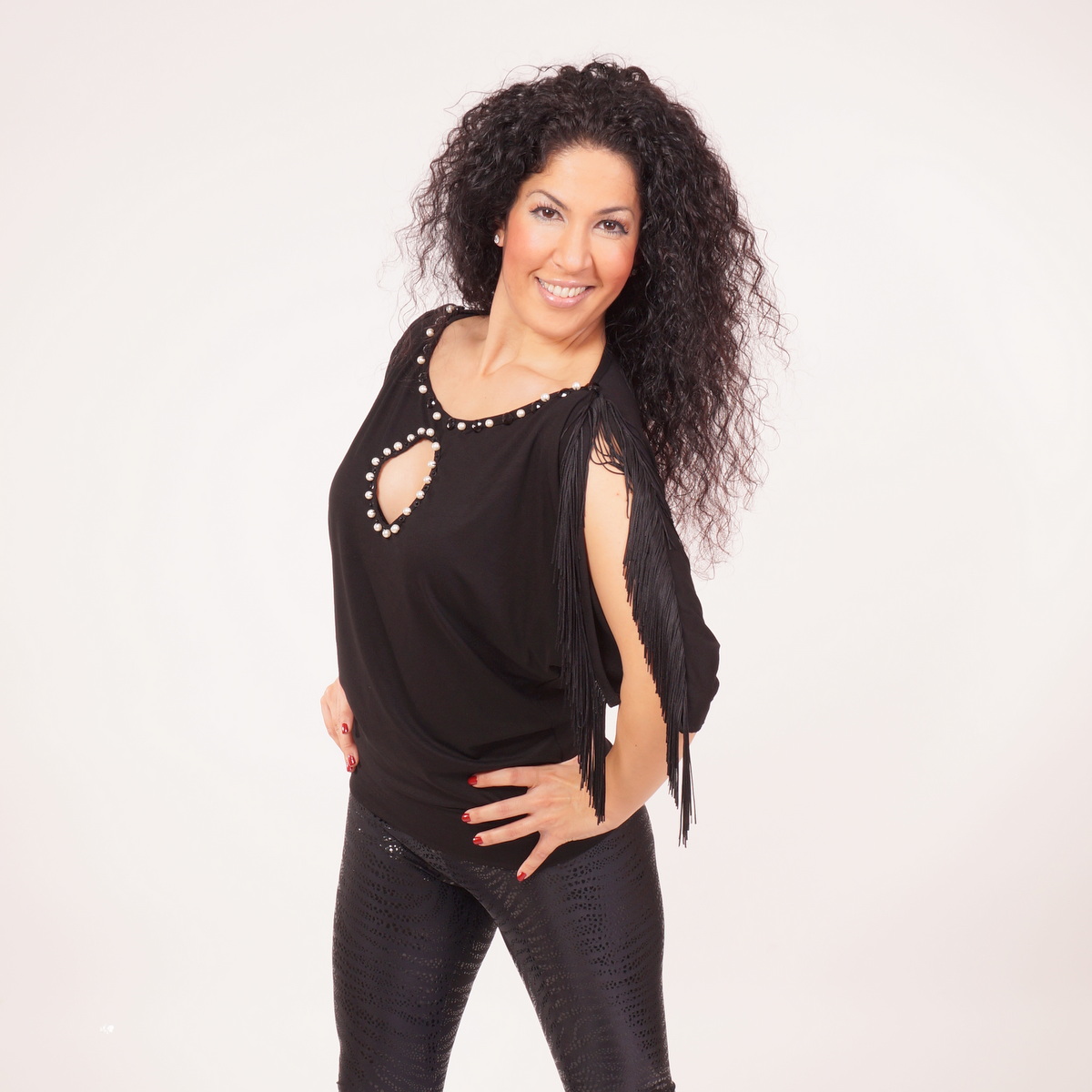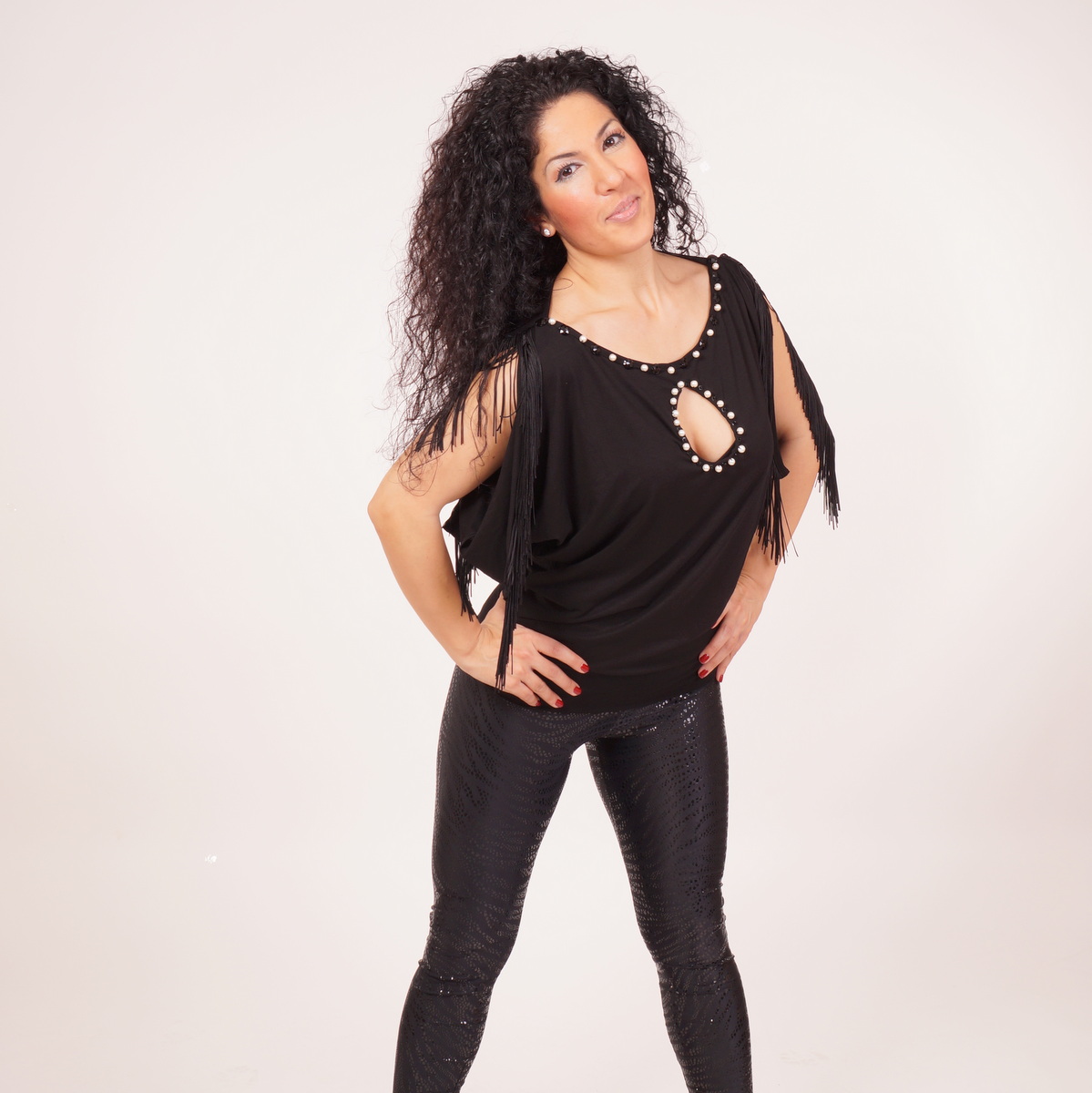 Boho Oberteil in schwarz mit Perlen und Fransen