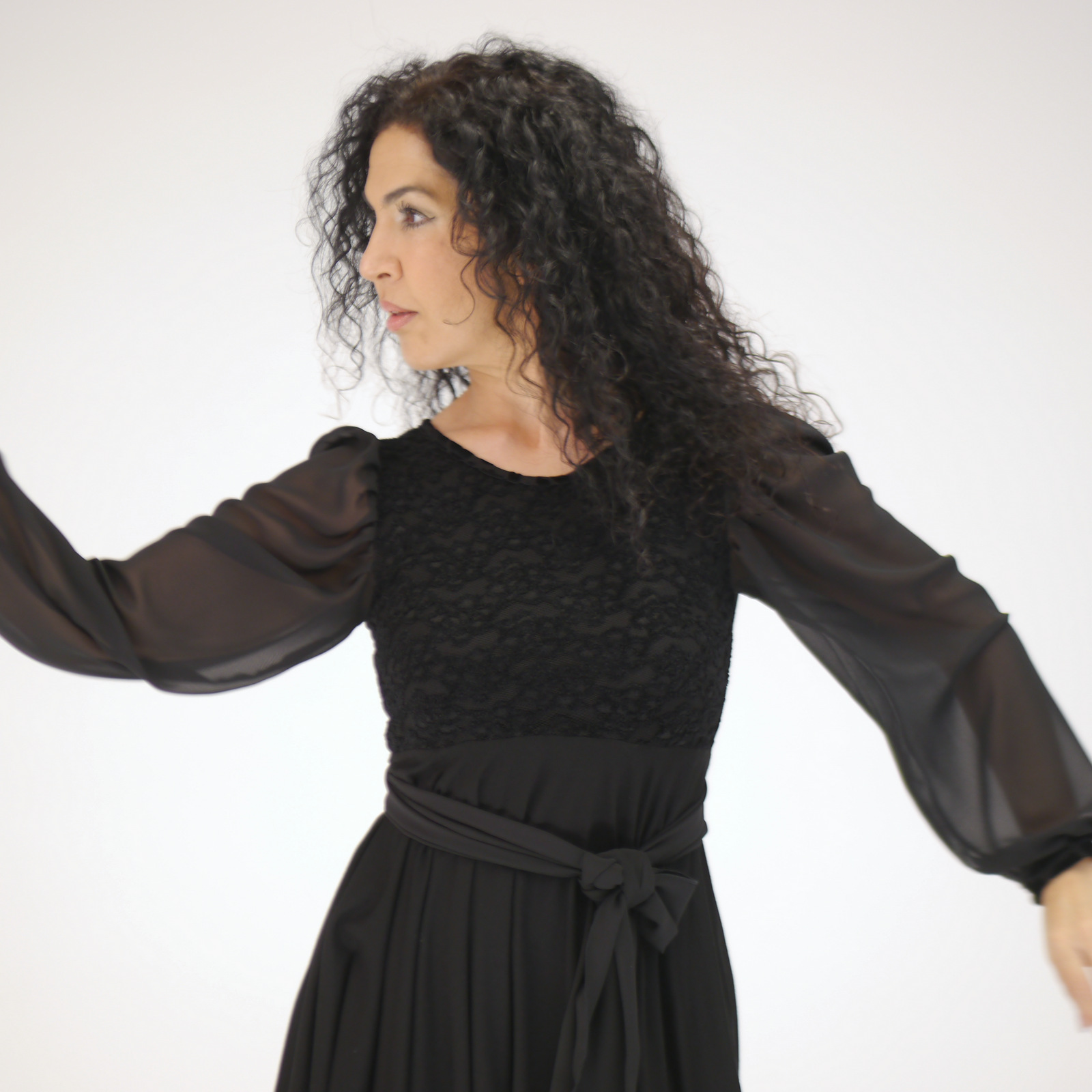 Einzigartiges Tanzoberteil-Kleid: Handgemacht aus Viskosejersey, Spitze und Chiffon Puffärmeln