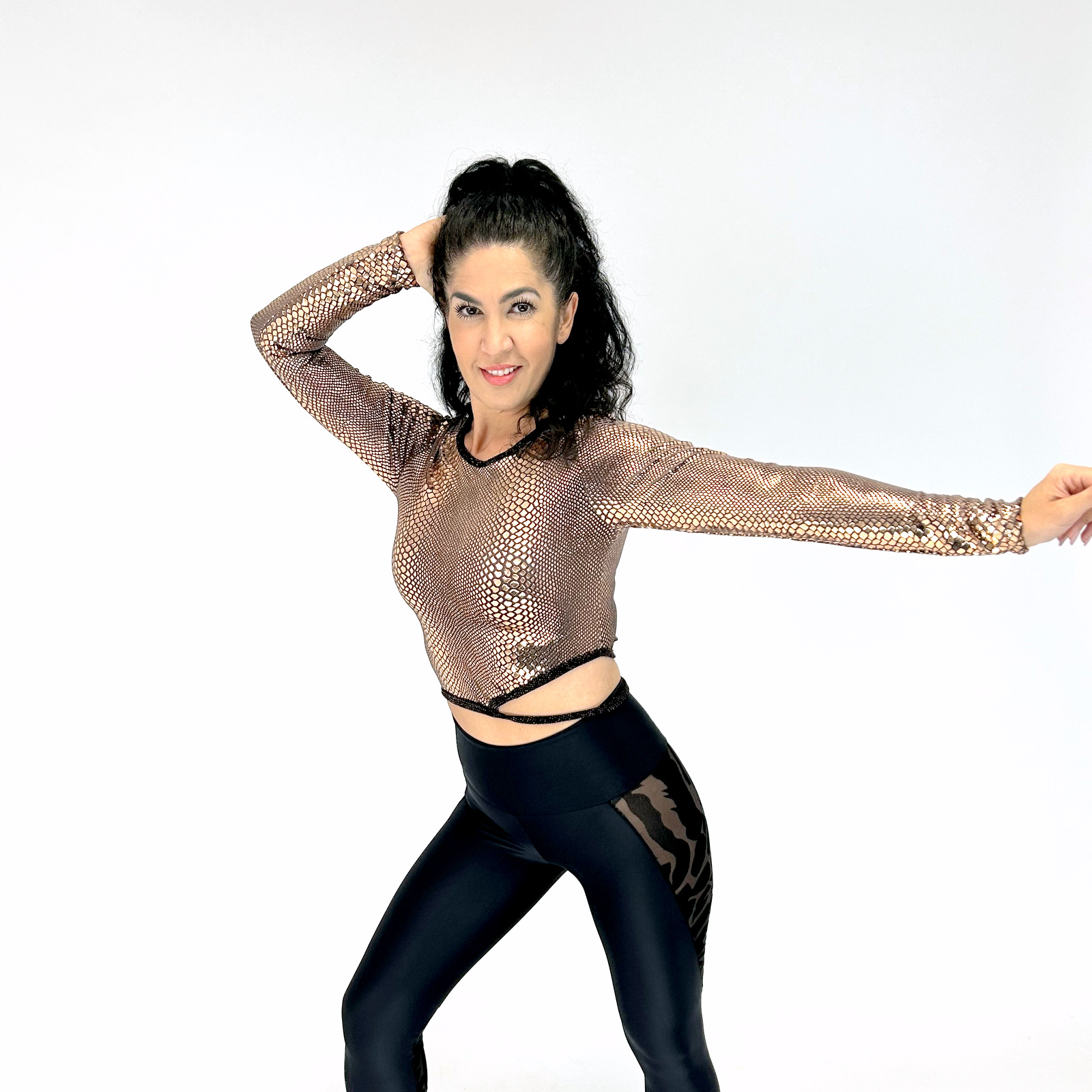 Tauchen Sie ein in die Welt der Trends mit unserem eng anliegenden Damen-Oberteil, das mit einem raffinierten Cut-Out in der Taille und einem faszinierenden Python-Muster in Kupfer-Braun begeistert. Dieses einzigartige Kleidungsstück vereint Eleganz und Exotik und wird sicherlich zum Blickfang in Ihrer Garderobe.