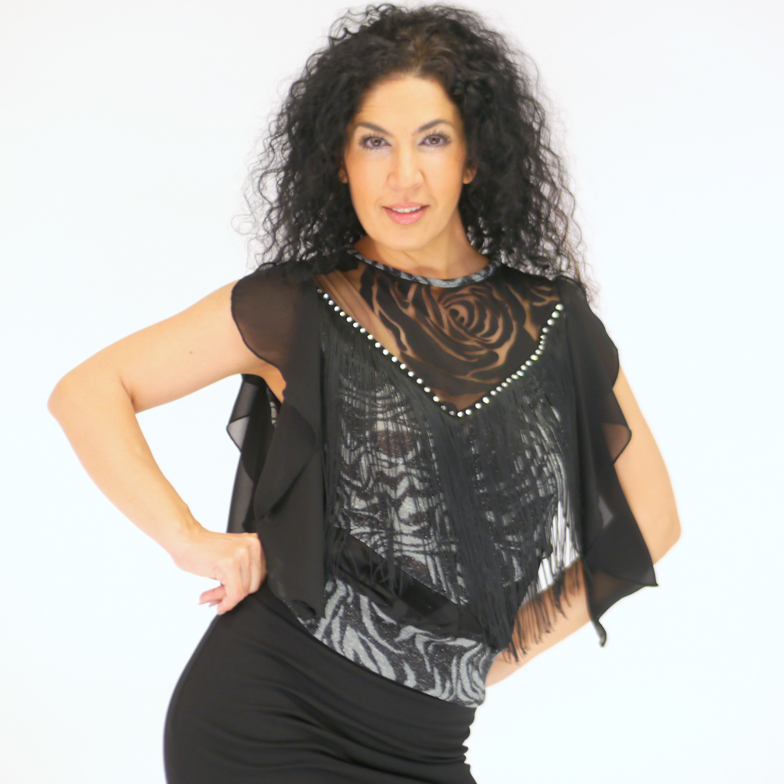 Das Highlight dieses einzigartigen Stücks ist der V-Ausschnitt auf der Brust, der mit zarter Spitze und schwarzen Fransen verziert ist. Diese liebevollen Details verleihen dem Oberteil eine romantische Eleganz und setzen einen stilvollen Akzent.