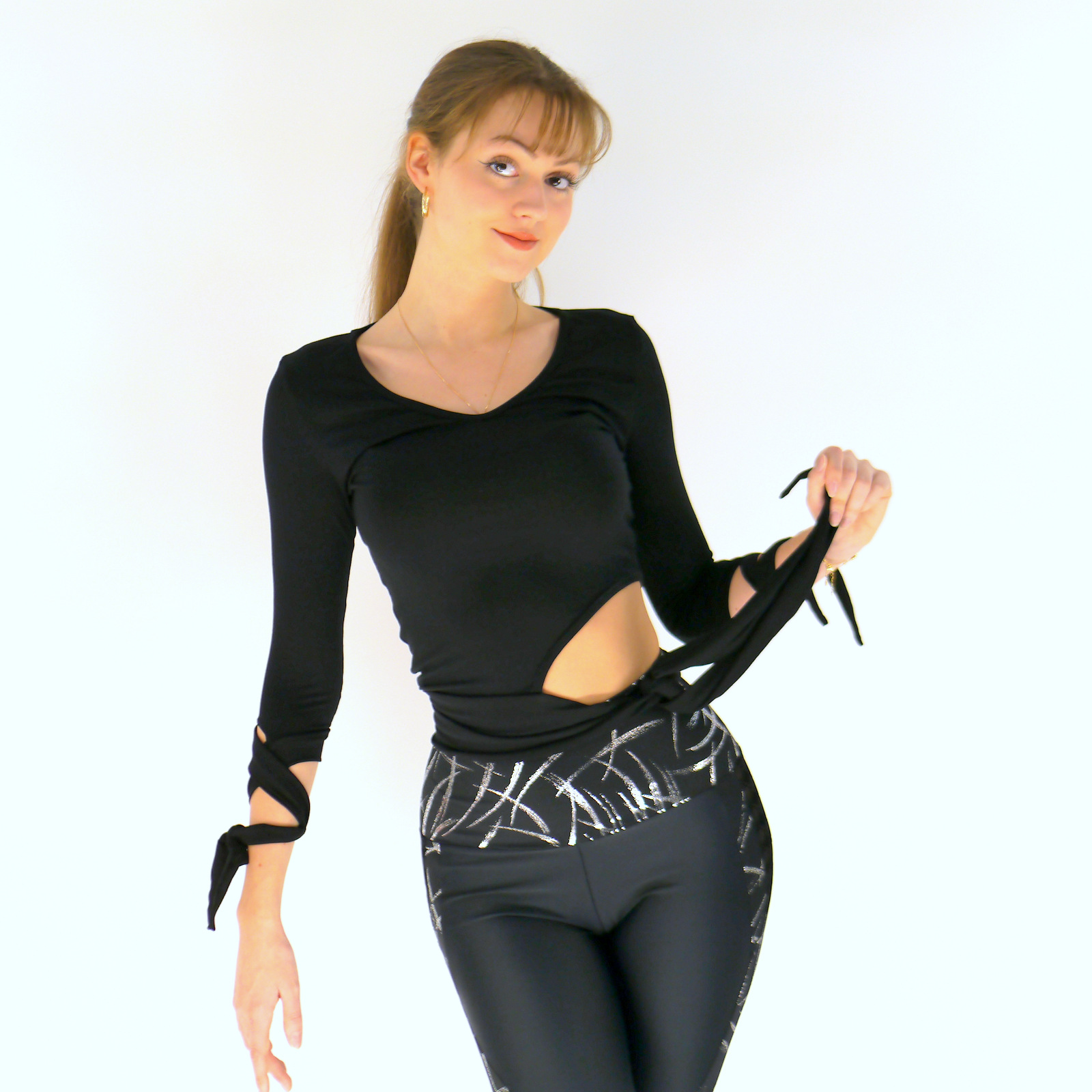 Produktinformationen "Handgemachtes Oberteil in schwarz aus Viskosejersey"