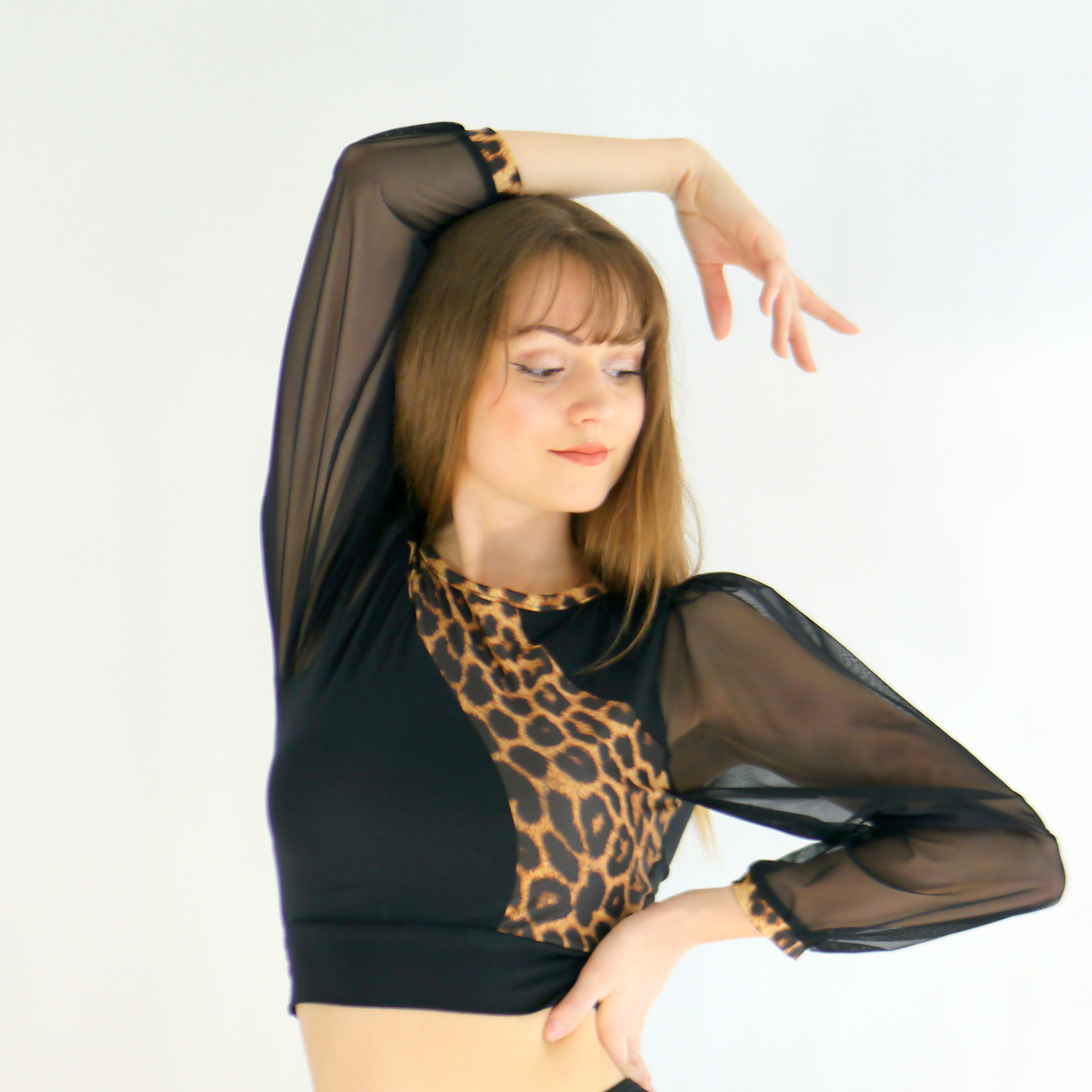 Handgemachtes Oberteil mit Animal Print und transparenter Netz