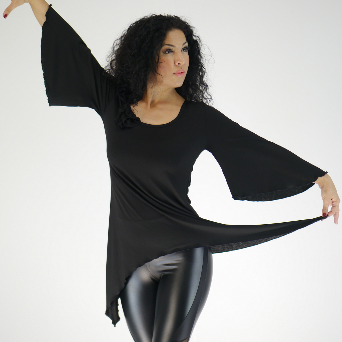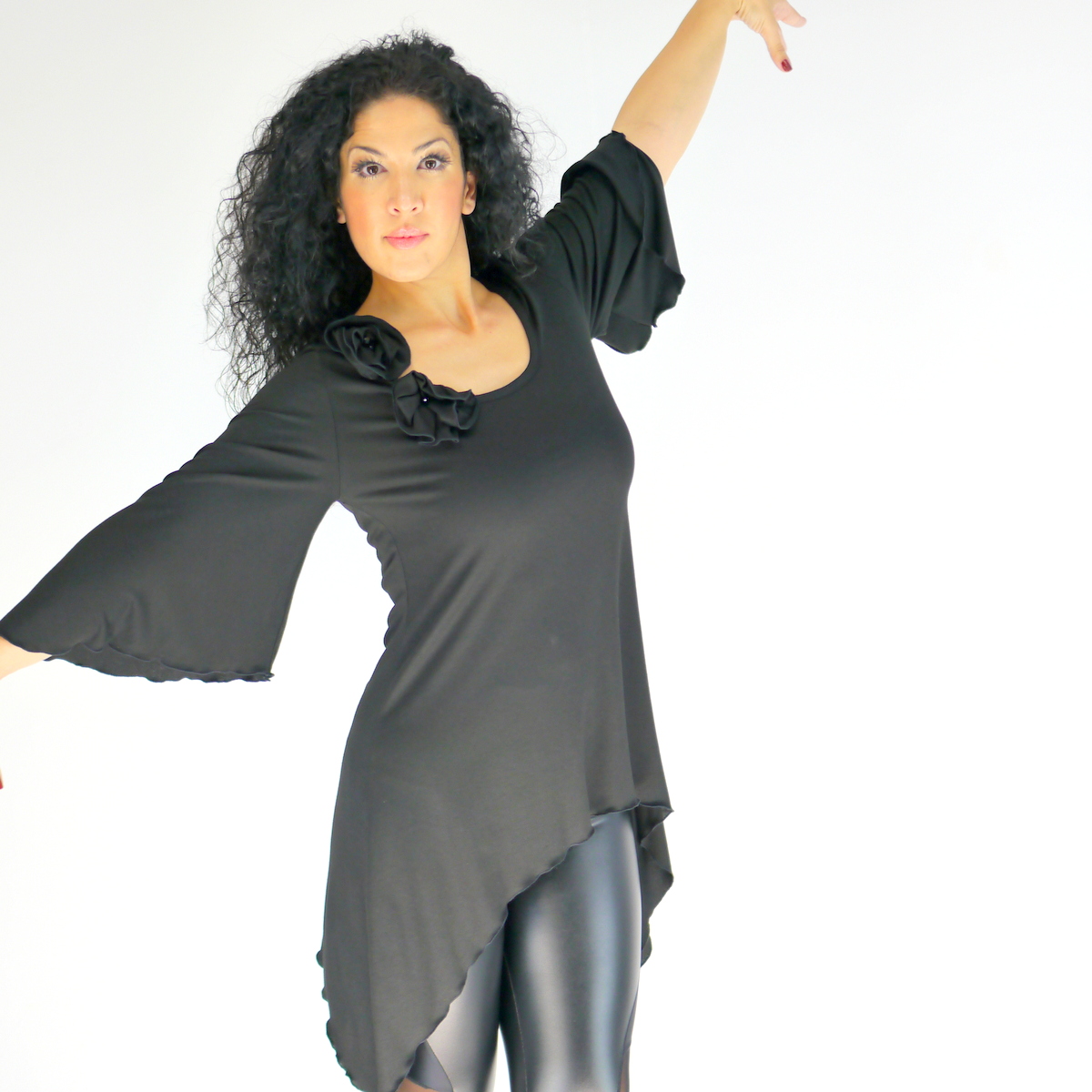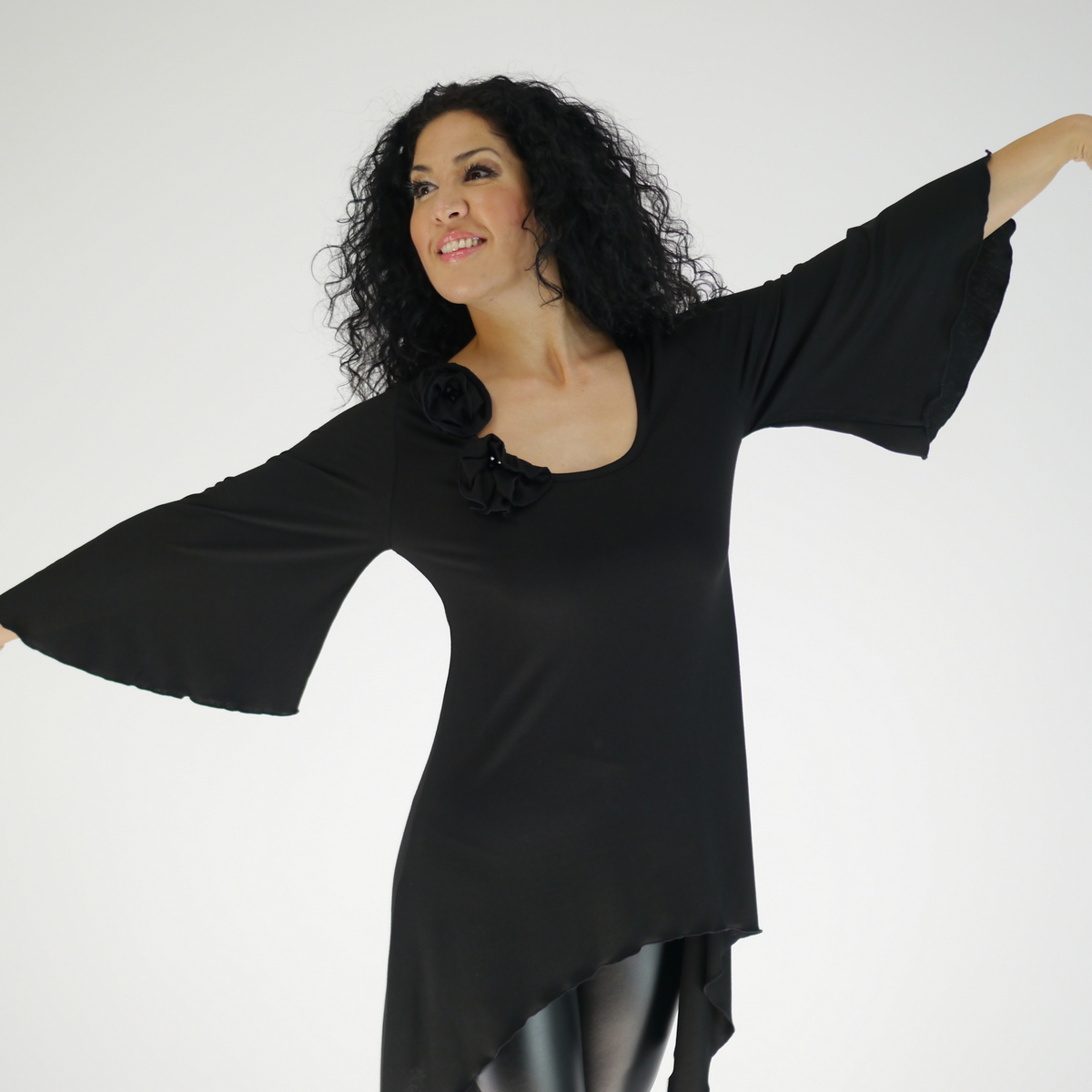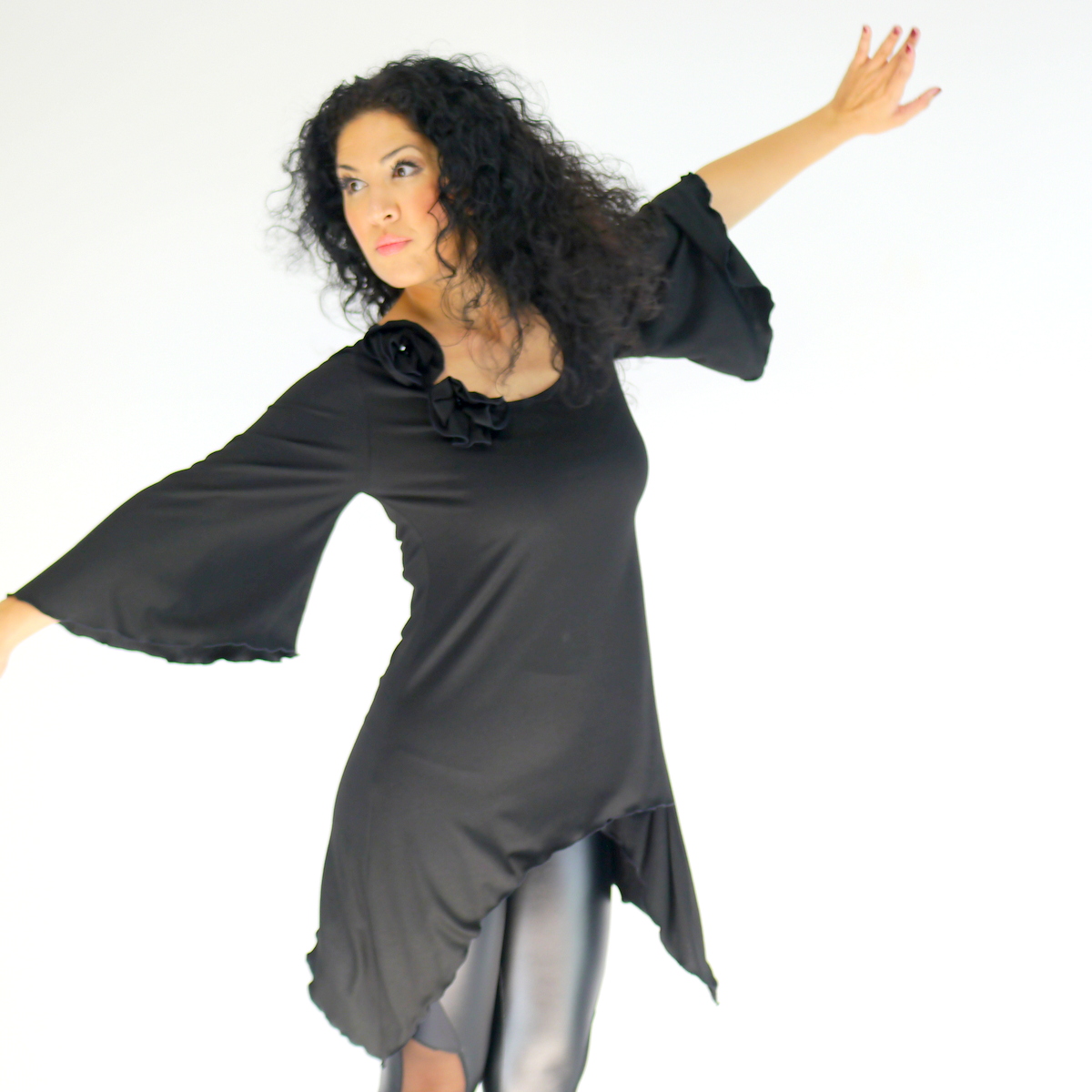 Mysteriös, boho oder künstlerisch, mit diesem Kleid mit Glockenärmeln können Sie ganz einfach verschiedene Looks kreieren. Das Kleid ist aus schmeichelhafter Viskosejersey gefertigt und hat einen rundförmigen Ausschnitt. Auf dem rechten Schulter-Brust hat das Kleid handgemachte Blumen mit Perlen. Falls Sie die zwei Blumen nicht haben möchten, einfach bei der Bestellung einen kleinen Kommentar für mich hinterlassen.
