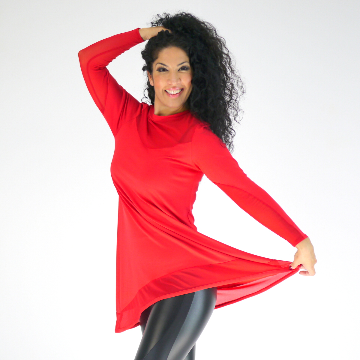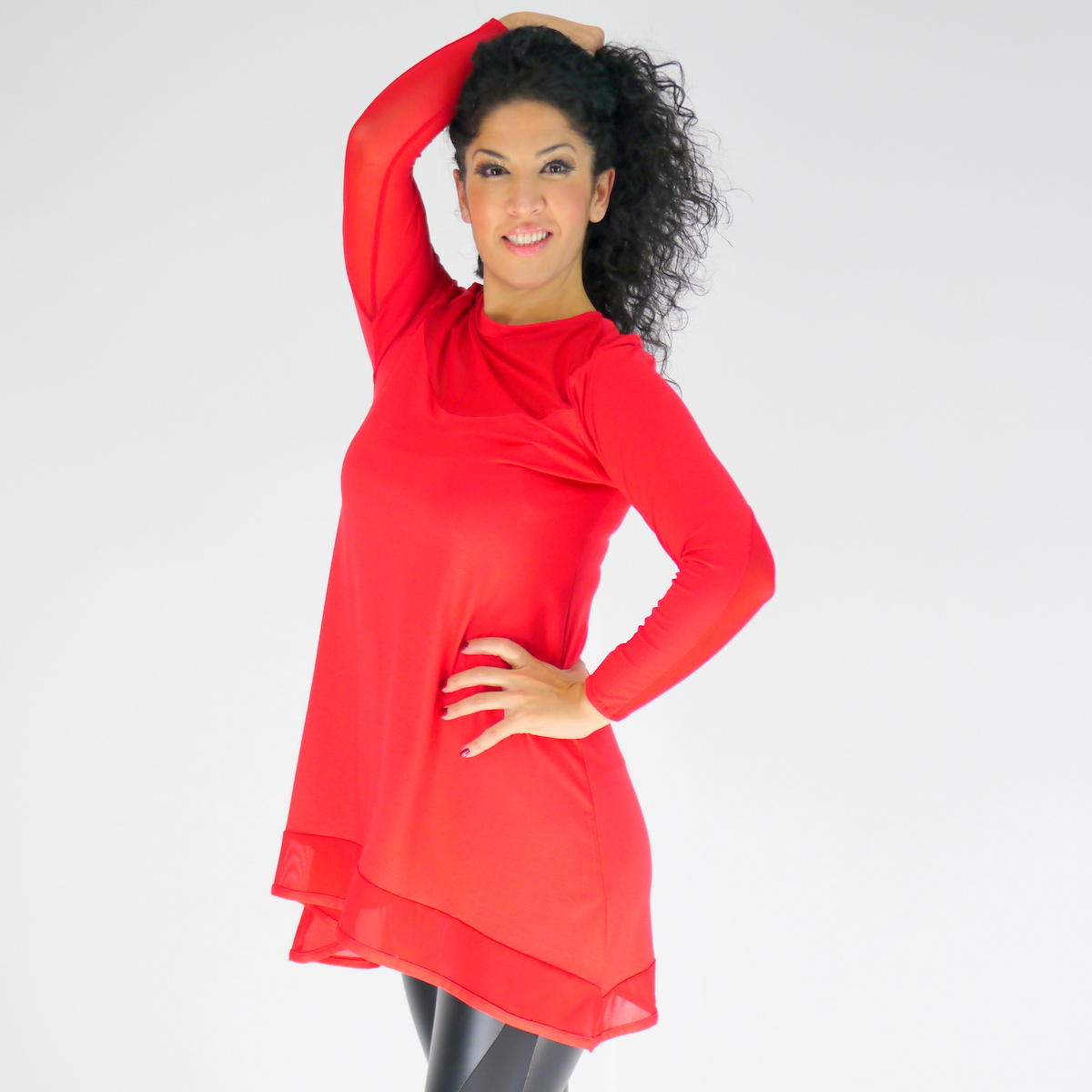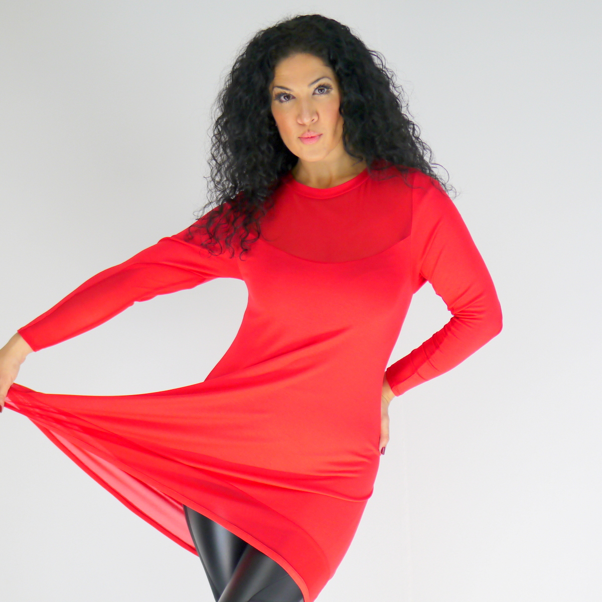 Langes Oberteil aus Baumwolle kombiniert mit Netz