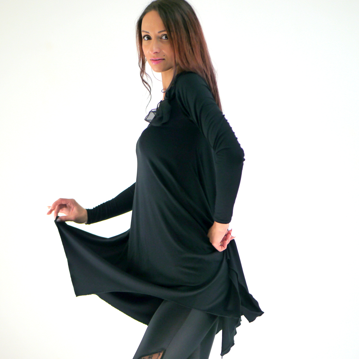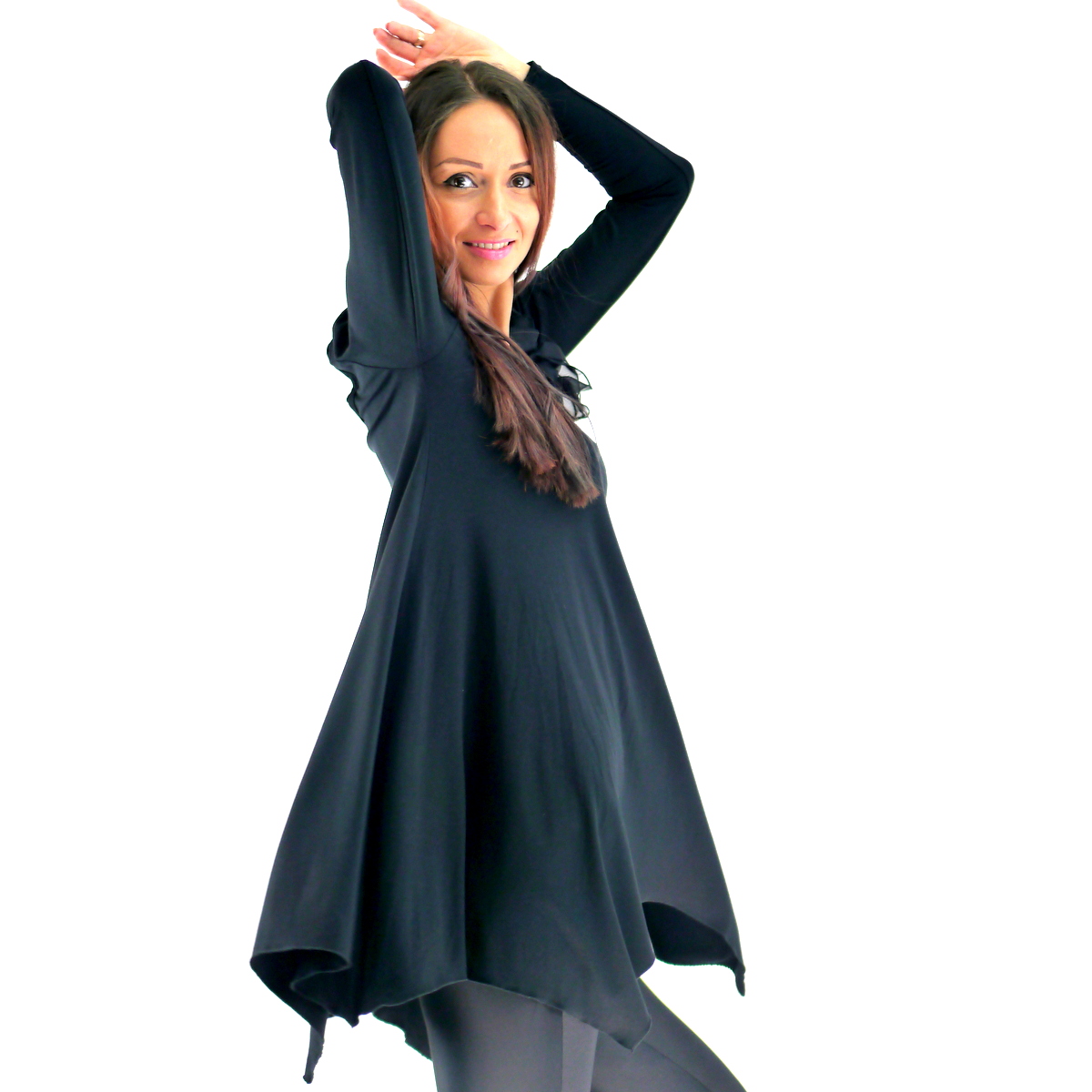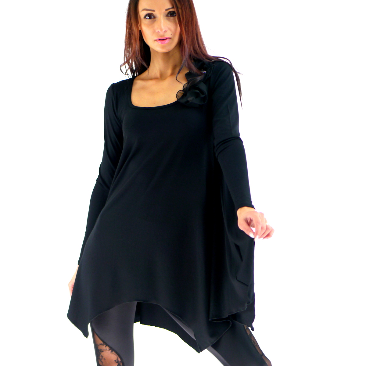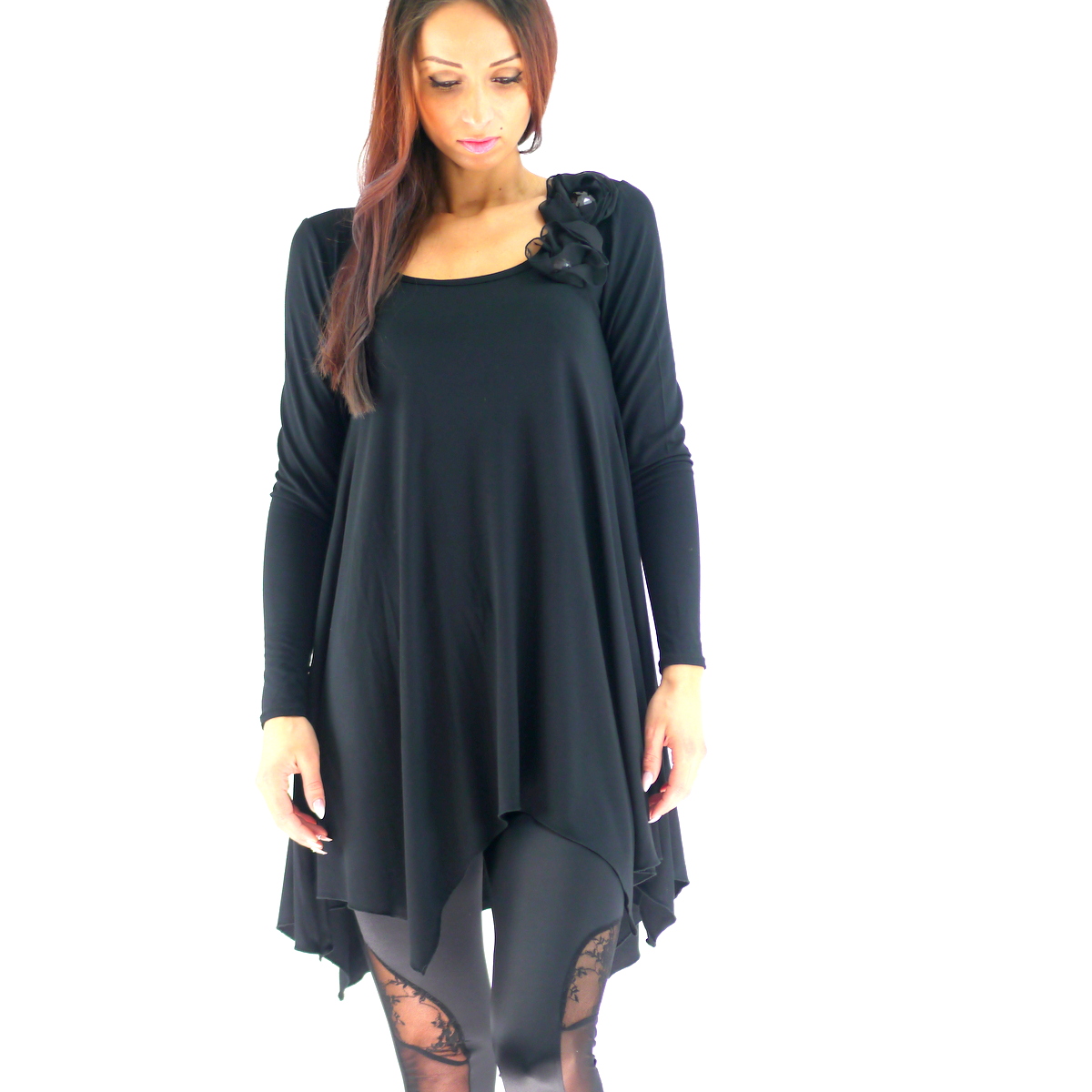Mysteriös, boho oder künstlerisch, mit diesem Kleid mit langen Armeln können Sie ganz einfach verschiedene Looks kreieren. Das Kleid ist aus schmeichelhafter Viskosejersey gefertigt und hat einen rundförmigen Ausschnitt. Auf dem linken Schulter-Brust hat das Kleid handgemachte Blumen mit Perlen. Falls Sie die zwei Blumen nicht haben möchten, einfach bei der Bestellung einen kleinen Kommentar für mich hinterlassen.