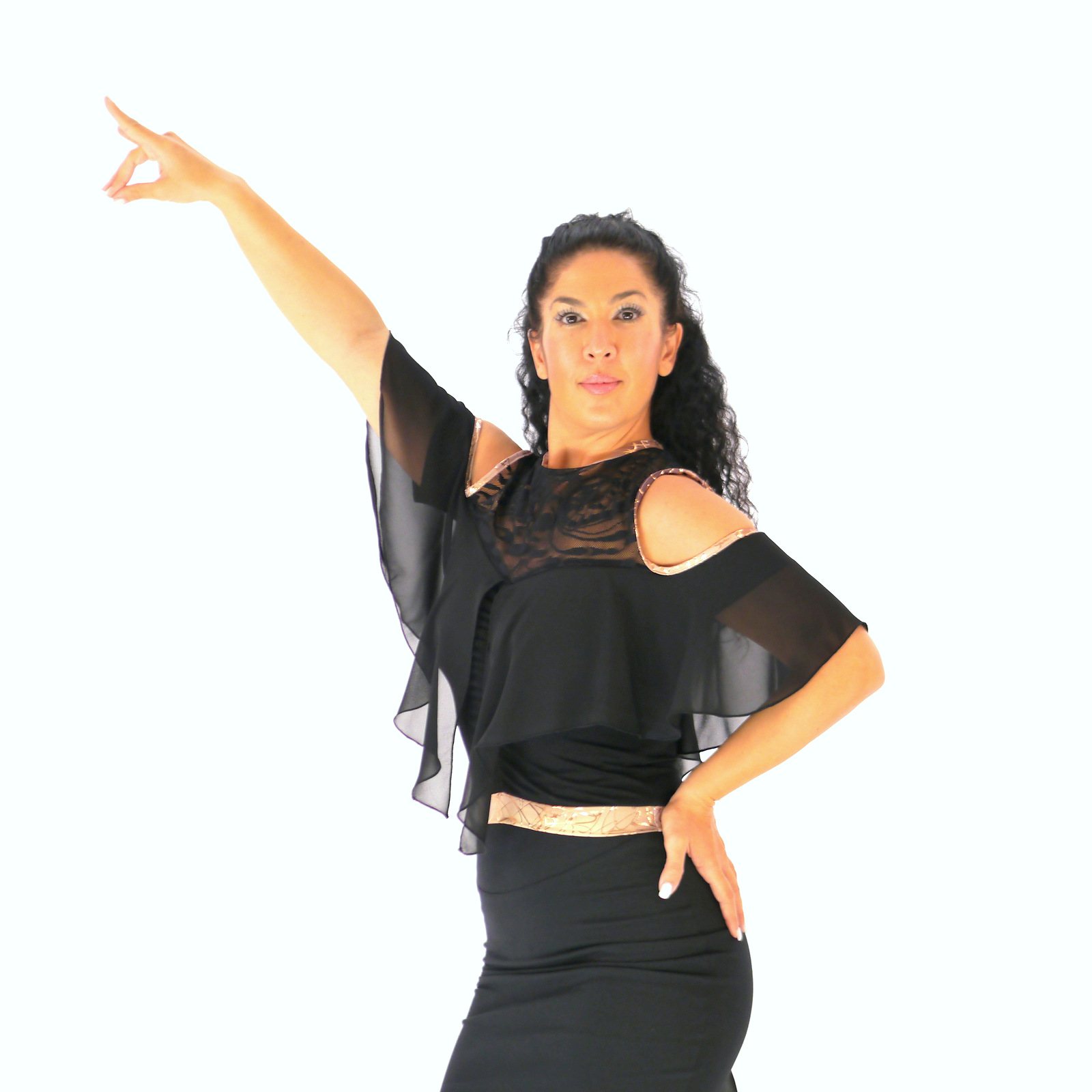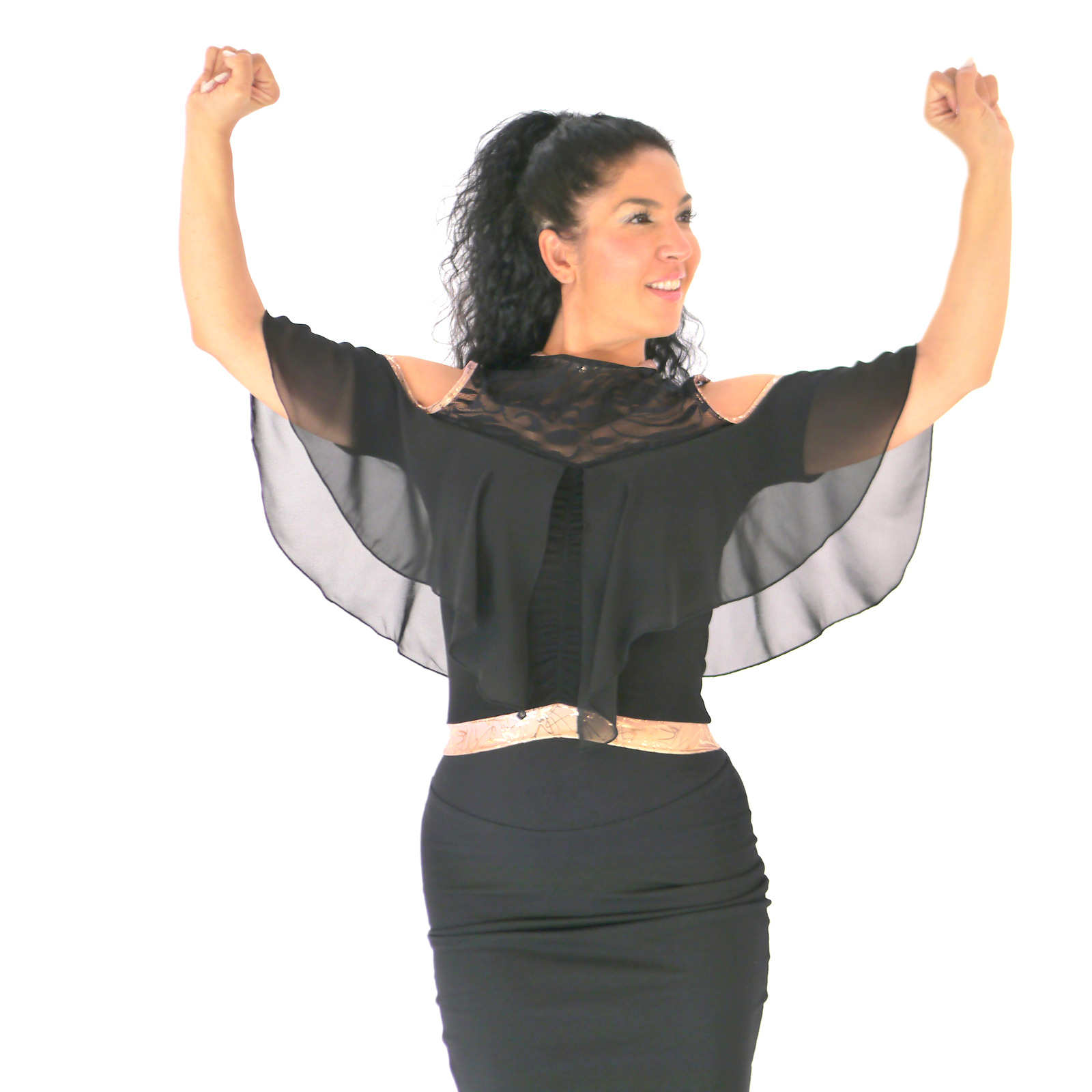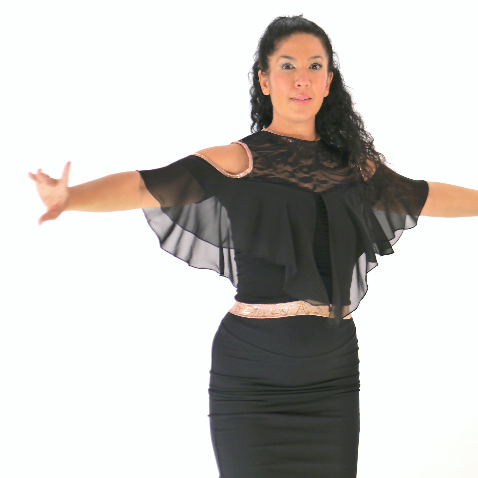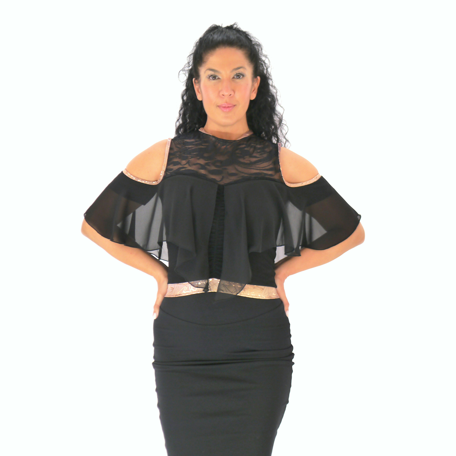 Produktinformationen "Salsa Oberteil in schwarz-gold mit Spitze und Rüschen, Carmenoberteil"