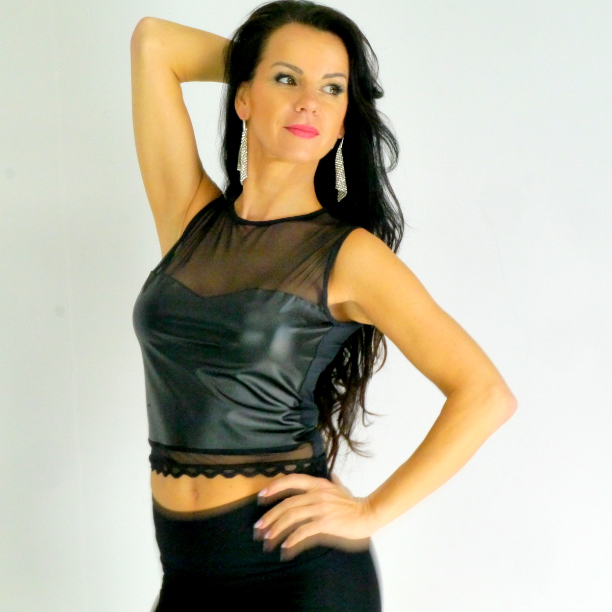 Schwarzes Top aus Lederimitat und Netz / Crop Top / Dance Wear / Salsa Wear
